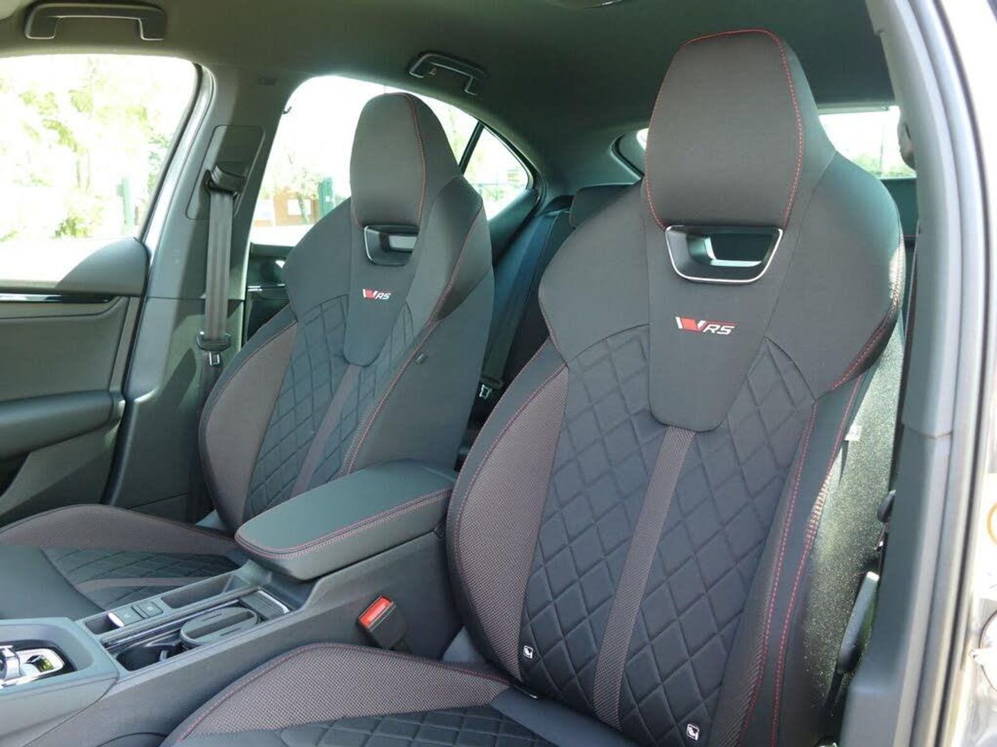 1x USB Typc C port in rear view mirror, 4x USB Type C ports - 2x in front centre console and 2x in rear (45W), Drive mode selection, Driver fatigue sensor, eCall emergency system, Electrically operated boot with virtual pedal, Front assist system, Progressive dynamic steering, Traffic sign recognition, Turn Assist, Virtual Cockpit - 10.25" digital display, Voice control system, Wireless charging (15W) with cooling function, Wireless SmartLink for Apple CarPlay and Android Auto, Electronically controlled limited slip differential, vRS suspension, 13" touchscreen display with navigation, DAB Digital radio, Aero front windscreen wipers with intermittent function, Auto dimming rear view mirror, Black sport exhaust pipes, Body colour bumpers, Body colour door handles, Electric front and rear windows, Exterior gloss black sports styling including front grille, window surrounds, door mirrors and badging, Gloss black diffuser, Gloss black spoiler, Heated rear windscreen, High beam control, High level third brake light, Ice scraper in fuel cap, LED daytime running lights, Logo projection in front doors, Rain and light sensors, Rear fog light on one side, Rear privacy glass, Rear side wing doors, Unique vRS bumpers and exterior styling, 12 volt socket in boot, 3 rear headrests, 3 seat bench in 2nd row, 4 foldable roof handles, Aluminium pedals, Front head restraints, Front sport seats, Heated front seats, Illuminated glovebox, Interior door handles in dark chrome, Jumbo Box storage, Luggage compartment lighting x2 lights, Mechanical rear seat release from boot, Parcel shelf - folding, Single front passenger seat, Steering wheel in black leather with black stitching, Storage compartments in left and right of boot, Sun visors with mirrors, Sunglasses storage, Ticket holder, Umbrella in door panel, Unsplit rear bench seat, split folding backrest with centre armrest with cupholder, Waste bin in door panel, Comfort package - Octavia, Family package - Octavia, Light and view package plus - Octavia, vRS Design Selection pack - Octavia, 3x3 point rear seat belts, Alarm with interior monitoring, tilt sensor and back up horn, Curtain airbags and front side airbags, Driver and front passenger airbags, Drivers knee airbag, Electronic parking brake, ESC including ABS, EBV, MSR, ASR, EDS, HBA, DSR, Front central airbag, Hill hold assist, ISOFIX on front passenger seat and outer rear seats, Passenger airbag deactivate switch, Red brake calipers, Three point seat belts in front and rear, Two tone horn, Tyre pressure monitor, Visual and acoustic seat belt reminder, Warning reflectors in front door, Anti-theft wheel bolts, Keyless start/stop, Remote central locking, Gloss black air vent surrounds, 19" Elias anthracite alloy wheels