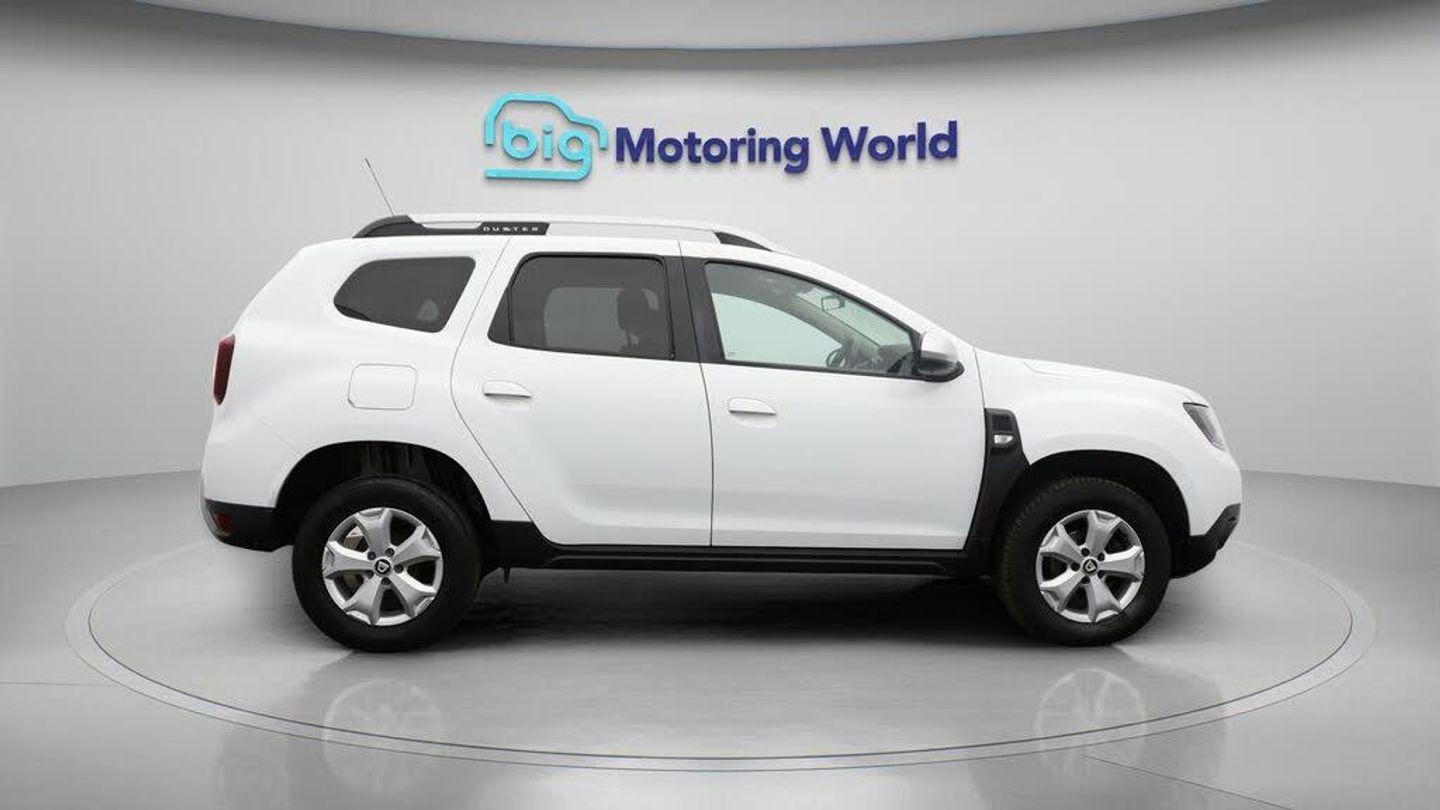 Apple CarPlay,Android Auto-Our Dacia Duster is finished in White. Specification includes a range of fantastic features including Apple CarPlay, Android Auto, Privacy Glass, Rear View Camera, Bluetooth, Parking Sensors, Cruise Control, Climate Control, Voice Control, Lumbar Support Specification information is supplied by CAPHPI and may vary to the actual car. This data does not form any part of a buying contact. Please check specification prior to purchase in-store. The MOT is valid until April 2026, visit bigmotoringworld.co.uk for more photos, a 360 tour, service history and a free HPI report.Were BIG on peace of mind and this White Dacia Duster has completed our comprehensive 200 point inspection and passed all checks. Its ready for you to drive away with immediate collection in-store. We include a 90-day warranty as standard plus an option to extend for up to 3 years.Reserve this car exclusively for you, safely and securely at bigmotoringworld.co.uk, with a fully refundable £99 deposit. Test drive before you buy, with no commitment, no hassle and a completely haggle free experience. Still searching and want to see thousands more cars? We are BIG on choice with over 8000 cars to choose from.Visit our award winning web site bigmotoringworld.co.uk.Were Big Motoring World and were BIG on what matters to you.