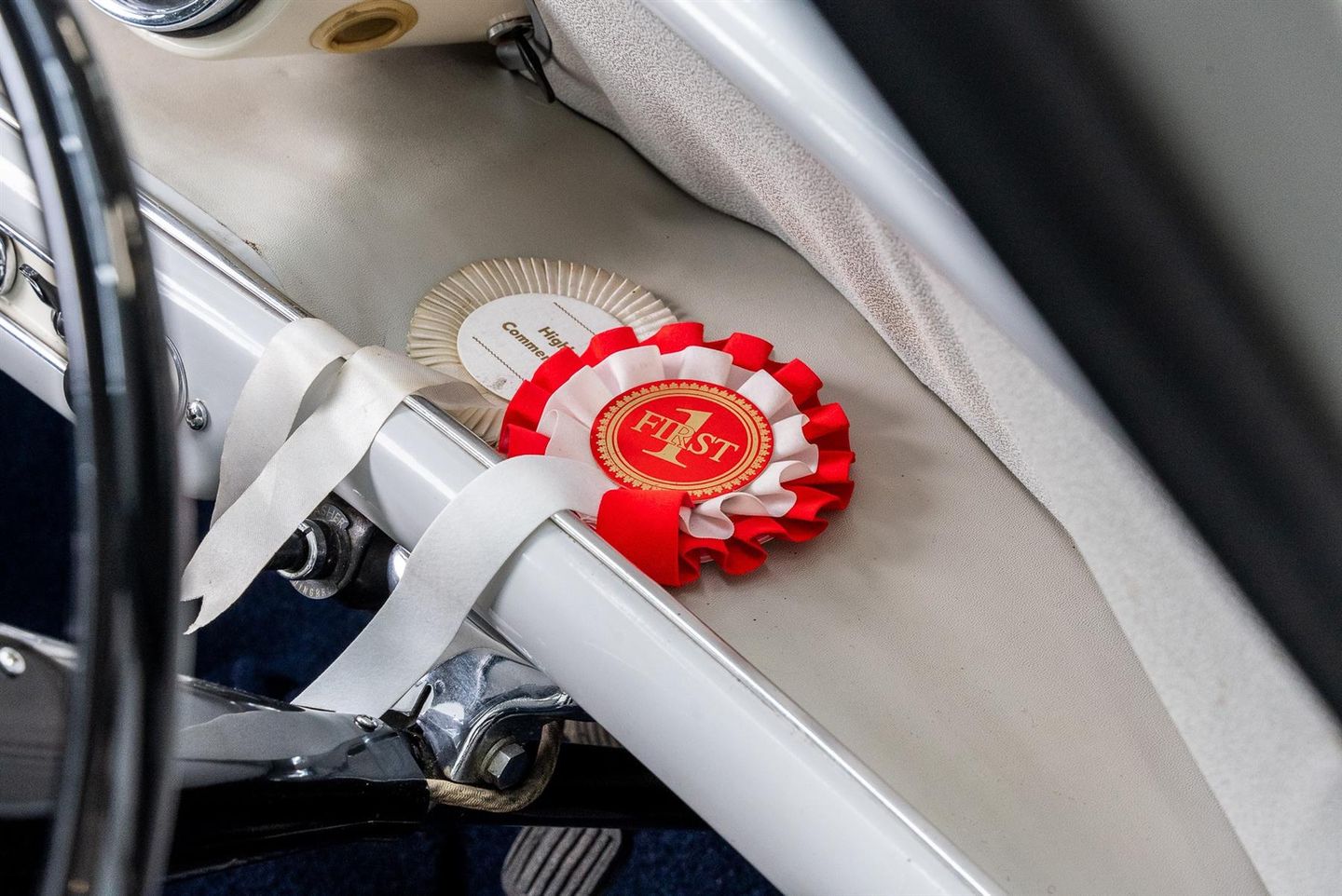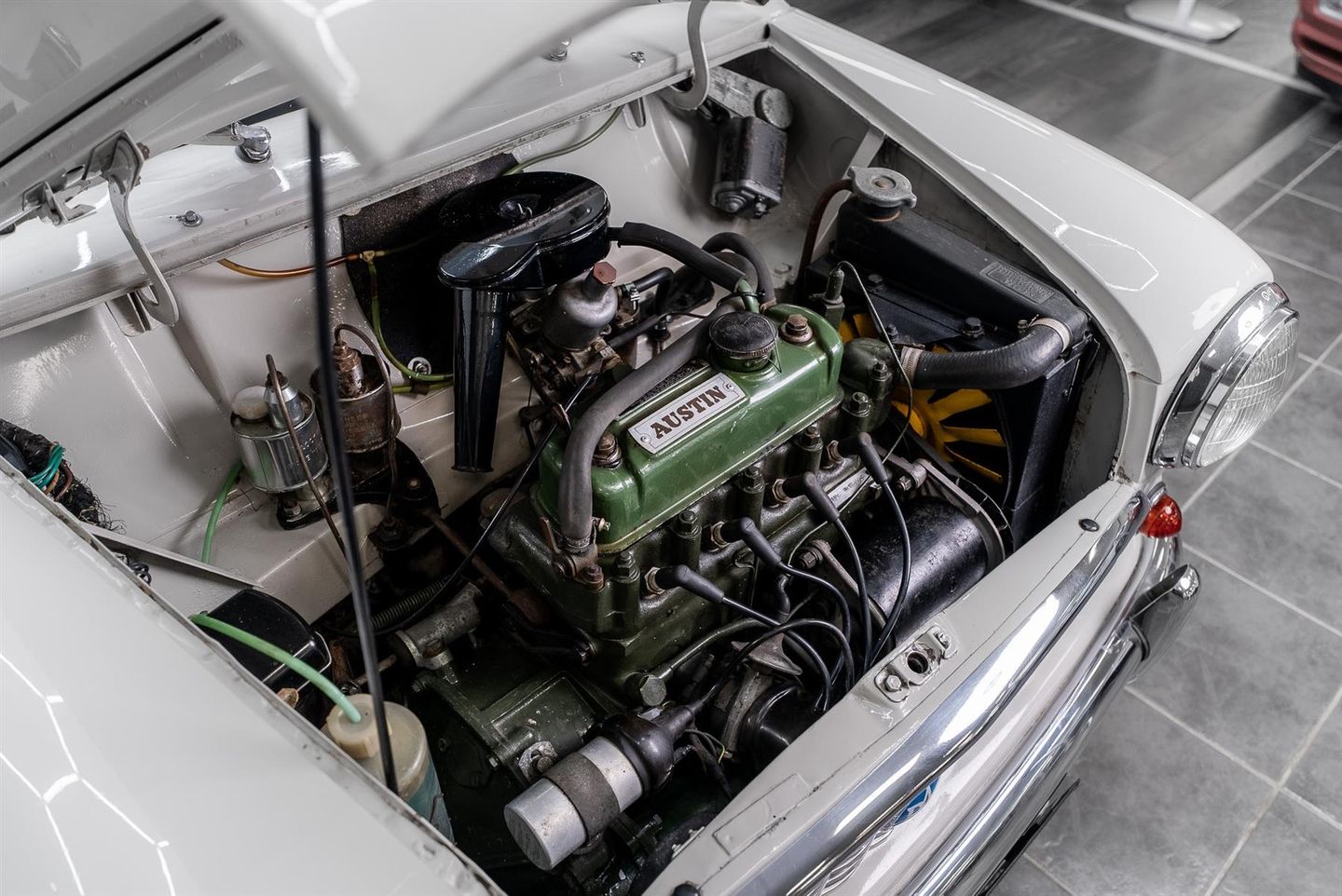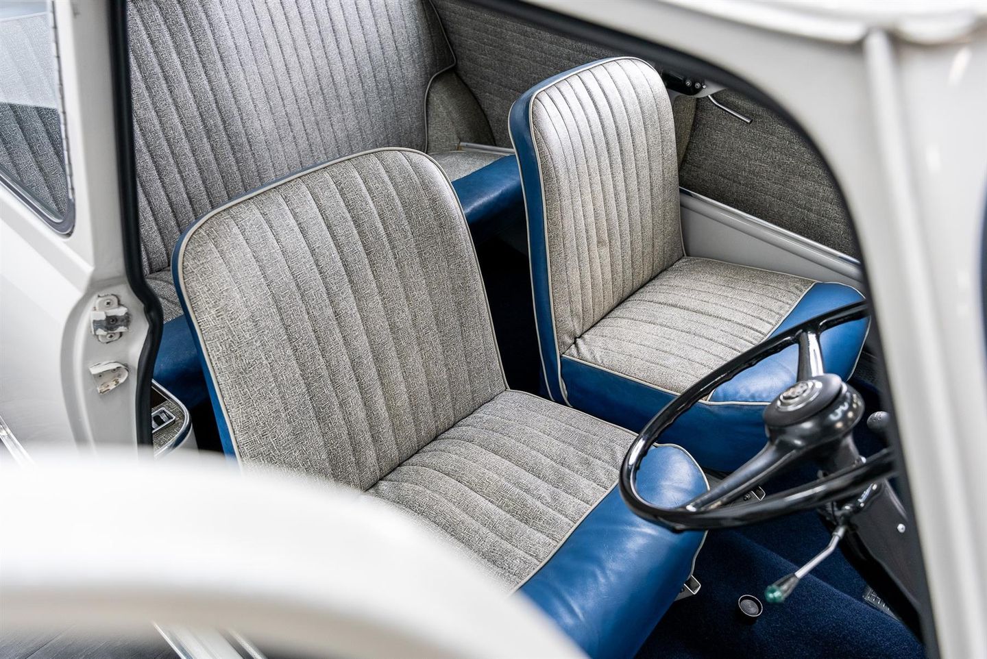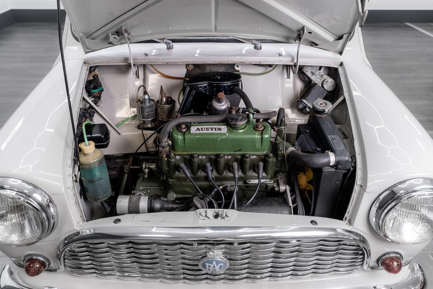 A true 1960's icon which has stood the test of time, All panels sitting true with a deep glossy shine throughout, Finished in traditional Austin Light Grey Paintwork Chrome work front to rear crisp and bright with the classic chrome bumpers fitted front and rear with over riders, Front slatted chrome grill sparkling with the Austin coach of arms badge Single chrome twist door handles sit on both drivers and passengers side doors. Front drivers and passengers doors also have the rally theme slide open guise windows which operate without fault along with Pull/Snap hinged rear windows which operate impeccably Chrome work and rubbers around all window areas presents fresh and fade free. With a single chrome petrol filler cap located to the passenger side rear Upon twisting the chrome handle fitted to the boot lid upon opening you instantly see the single fuel tank to the left and the originality preserved throughout All lights front and rear present in the very best of condition crack and fade free and of course genuine ensuring originality has been maintained throughout Badging sitting correct beaming with brashness and boldness. Originality very often can be used to easily however in this instance upon opening the drivers or passenger side doors you instantly become aware the seating front and rear remains original, Boasting a light speckled seat base with a blue leather finished frontal quarter panel along with cream piping to the edges, Both front and rear seats in original untouched condition you simply do not come across this often With matching inner door cards front and rear along with the cursery mini esk pocket bins, Original Cream ripple honeycomb affect headlining sits beautifully along with the drivers and passengers sun visors Basic can only be used to sum up the interior but adequate and clutter free donning a white faced speedometer with black dials with further houses the fuel gauge, ignition warning light and main beam indicators, To the sides on the speedo housing a toggle switch can be found which when pressed reveals your interior light..Very Retro! Under the bonnet lies the legendary and original 848cc transversely mounted 4 cylinder petrol engine producing 34-bhp mounted to a 4 speed manual gearbox, Fitted with the original 10'' steel wheels in cream along with sparkling centre chrome shine wheel hub caps, Shod with 145/10 tyres boasting ample tread all round, Take nothing away a car still on the road sixty years from when it was first manufactured simply is rare, This example has had only two former keepers since first being registered on the 1st August 1960, With the original 'Austin Seven Drivers Handbook' present and a ' 1st Birthday Greetings' card from the supplying Austin dealership, Also present an original folder bound Austin Seven workshop manual, Today the vehicle has covered 40574-miles quite simply a true piece of british history.