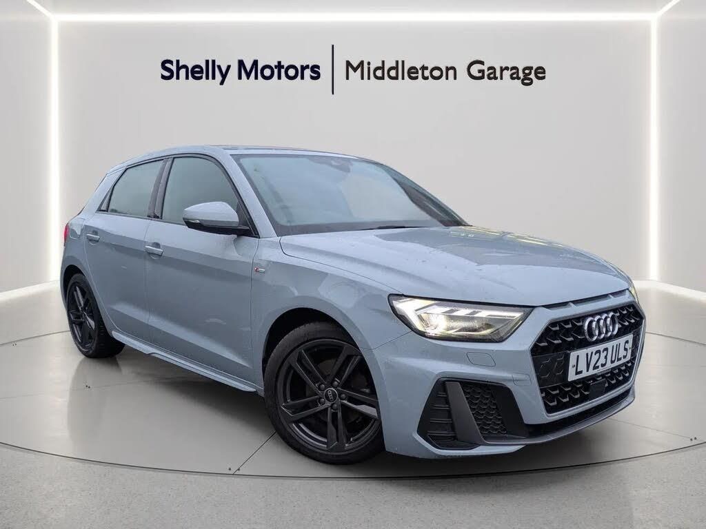 10.25" Digital instrument cluster display classis style instrument dials + speed,odometer,time,outside temperature,telephone menu + fuel level warning, Audi drive select - power steering assistance + engine, Audi smartphone interface with connect compatible smartphone via USB directly MMI display + Nav,music, third party apps controlled via MMI controller, Automatic start/stop system, Bluetooth interface, Cruise control, Driver's information system, Electromechanical power steering, Emergency e-call, Lane departure warning system, Rear parking sensor, Service interval indicator, Speed limiter, Voice control system, Washer fluid level indicator, Sports suspension, 2 x USB type C connection points, 6 passive loudspeakers, DAB Digital radio, MMI radio plus with 10.1" colour MMI display screen and MMI touch, Auto dimming rear view mirror, Body coloured door mirrors, Door sills with aluminium inlays and S Line logo, Electric front and rear windows, Electrically adjustable, heated, folding door mirrors with integrated LED side indicator, Front side air inlets in grained matt black and C frame in anthracite black, Heat insulating glass windscreen and side windows, Heated rear windscreen, High level LED brake light, LED headlights with LED rear lights + dynamic rear indicators + headlight adjustment and high beam, turning light + LED daytime running lights, Privacy glass, Radiator grille and rear diffuser in matt anthracite black, Radiator protective grille frame in matt aluminium silver, Rain and light sensors, Rear fog lights, Rear side wing doors, Rear wiper, S line badges on front wings, Side front spoiler lips in grained matt black, 12V socket in centre console with two cup holders, 3 rear seats with headrests, 3 seat bench in 2nd row, 3 spoke leather multi-function plus steering wheel features S badging and grips in perforated leather with contrast stitching, 40:60 Split folding rear seat or folded fully, Black cloth headlining, Driver and passenger seat with manual height adjust with forward and backwards adjustment, Front and rear black floor mats with contrast stitching in fine silver, Front head restraints, Front passenger seat, Height and reach adjustable steering wheel, ISOFIX child seat mounting for front passenger and outer rear seats including top tether attachment point of outer rear seats, Leather gear knob with aluminium trim, Leatherette handbrake grip, Luggage compartment light with front and rear reading lights, Manual air conditioning, Manually adjustable lumbar support in front seats, Stainless steel pedals, LED interior lighting pack - A1, Luggage compartment pack - A1, S line exterior styling pack - A1 Sportback, 3x3 point rear seatbelts, Audi pre-sense front with pedestrain and cyclist recognition, Brake assist function, Driver and front passenger airbag with front side and head airbags, Electronic Stability Control including ABS, EBD, ASR and EDL, Front passenger airbag deactivation switch, Hill hold assist, Manual rear child locks, Seatbelt height adjustment for front seats, Seatbelt monitoring, Tyre pressure warning light, Warning triangle and first aid kit, Anti theft alarm, Anti theft wheel bolts and loose wheel warning, Immobiliser, Remote central locking with 2 foldaway keys, Aluminium trim for control switches, air vents and digital instrument cluster, Black dashboard, Silver grey inlays polygon structure in diamond paint finish, Structured grey accent areas including air vents, door handle recesses and centre console in quartz paint finish