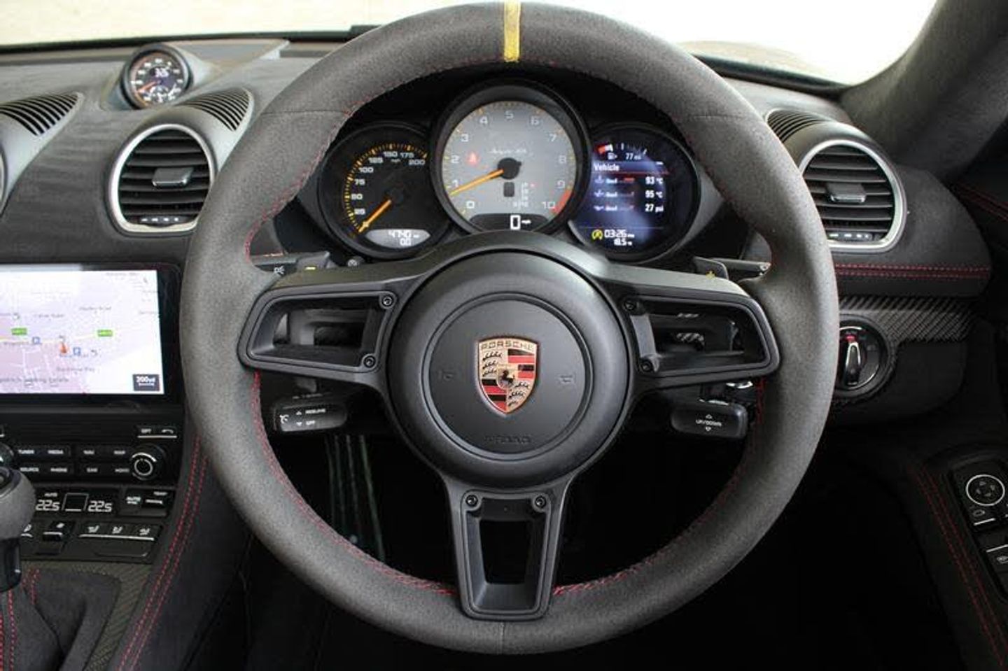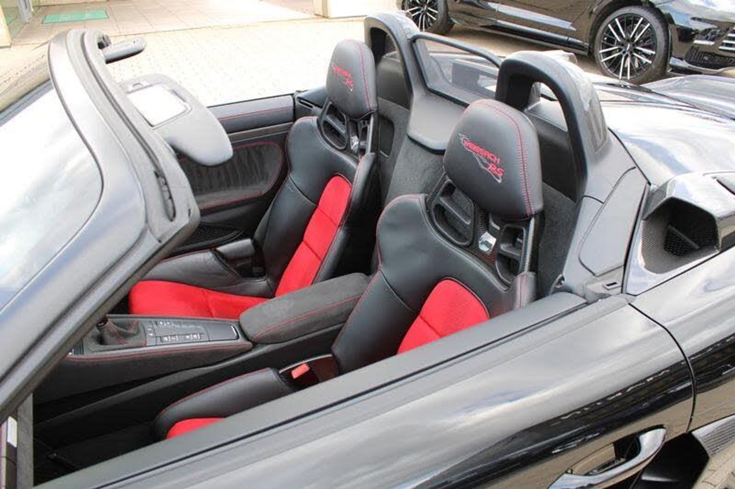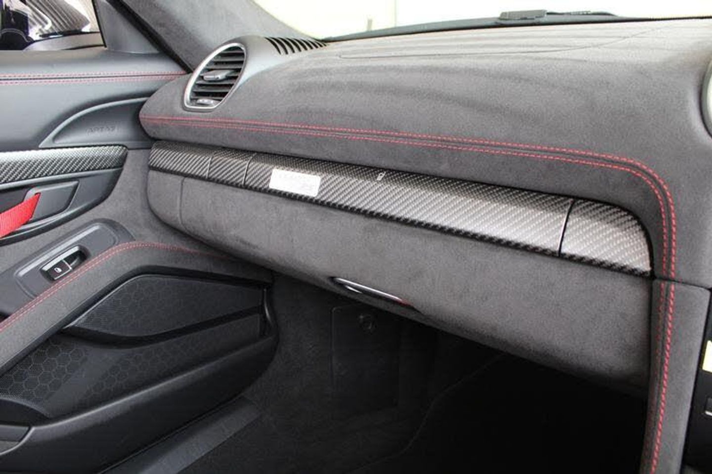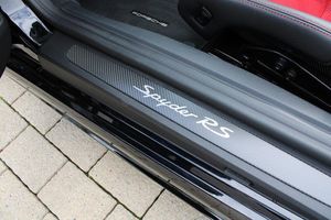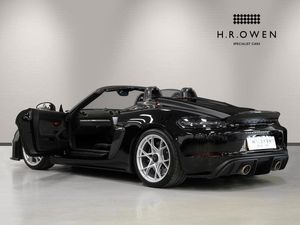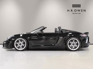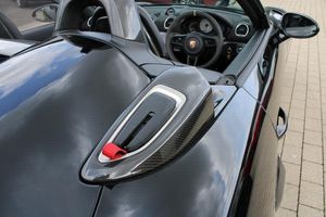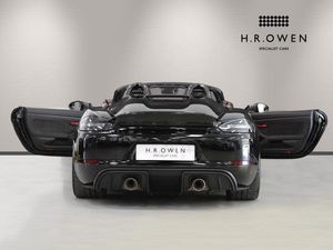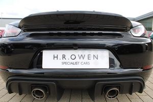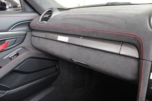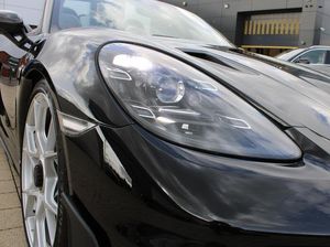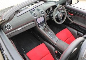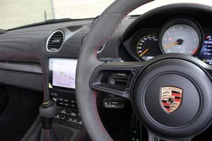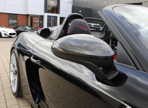 Exterior- Black Metallic, Black Soft Top with Red Accents, Interior- Black Leather Full Bucket Seats, Carmine-Red Race-Tex Inserts, Carmine Red Stitching, Carbon Trim, Weissach Pack, Porsche Ceramic Composite Brake, LED Main Headlights with Porsche Dynamic Light System -PDLS Plus, Rear Park Assist with Reversing Camera, Sound Package Plus, USB Interface in Central Storage Compartment, Cruise Control, Windscreen Frame in Black Foil, Porsche Communication Management with Navigation, Black High Gloss Brake Callipers, Porsche crest on storage compartment lid, 20-Inch 718 Cayman Satin Aluminium Painted Alloy Wheels