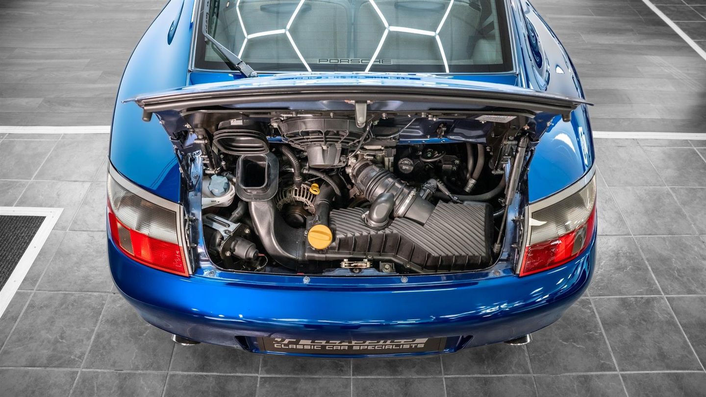 This stunning example simply carries the look of a car that has been very well maintained both internally and externally. Finish in Porsche 'Lapis Blue' (code L3A8) All panels sit with Porsche perfection as you would expect, Beaming glossy panels from front to rear including the colour coded front wrap around bumper which houses full frontal air vents enabling brake cooling and aerodynamics Both front headlights are fade free sitting crisp along with the smoked side indicators. The curved drivers side front wing mounted petrol flap sits precision square along with the drivers and passenger side colour coded Automatic Anti Dazzle rear view mounted door mirrors, Rear colour coded bumper has no markings or scuffs and scrapes its pristine along with the smoked rear factory light lenses. Rear vented engine cooling hood sits beautifully unmarked and fade free along with the body housed high vis mounted brake light All external glass remains factory specification Porsche, Tinted as applicable. With all external window rubbers sitting fresh crisp and vibrant. All external Porsche logo's and lettering looks stunningly sharp and correct, You would not think this cars a modern classic at 23yrs the younger. With it's stunning Body Lines this examples quite simply one of the THE very best out on sale today Finished in Porsche Graphite Grey Leather (code CE) The inside has simply been nurtured ensuring it remains in the very best of condition throughout, Upon opening the drivers and passenger side doors you see the 'Carrera 4' sill cover plates mark and blemish free This sets the president...The Graphite Grey leather seats front and rear show little wear, Bolsters sitting tall and hug you into the seat when sat in, With perforated centre sections on the base and backrest beautifully presented, The electrically operated seat back working as intended. Matching Graphite Grey leather clad door cards present very well incorporating Airbags and cubby pockets, To the lower quarter sits luxury deep pile cloth again in very the best of condition. 4 spoke colour coded Graphite Grey leather steering wheel displays very very minimal wear again this is a matter of course and to be expected, The Flat Boxer Six 3.4 naturally aspirated 6 cylinder petrol engine fitted producing just short of 300bhp coupled with permanent AWD and a 6-speed manual gearbox. This vehicle has been given the green light of no expense spared to it Sitting on Porsche five spoke 18-inch 993 Turbo Looks colour coded alloys along with matching colour coded Porsche crest centre caps, All Alloy wheels are in very good condition shod with Michelin Pilot Sport tyres all round First registered on the 30th February 2001 this exemplary example stands out from many on sale today, Covering a mere 94352-miles this vehicle has wanted for nothing and boasts a full service history by Porsche / dedicated Porsche Specialist,.