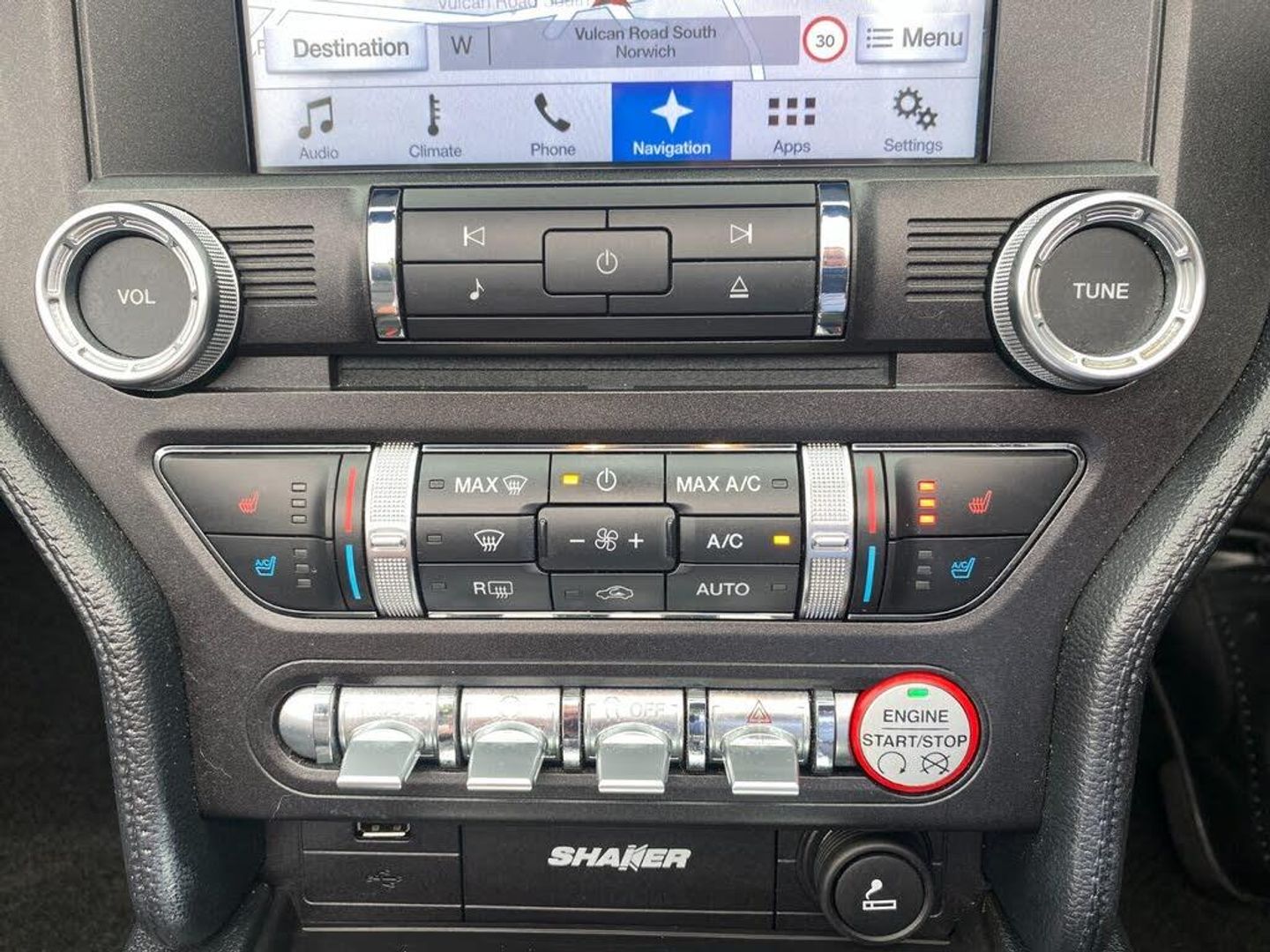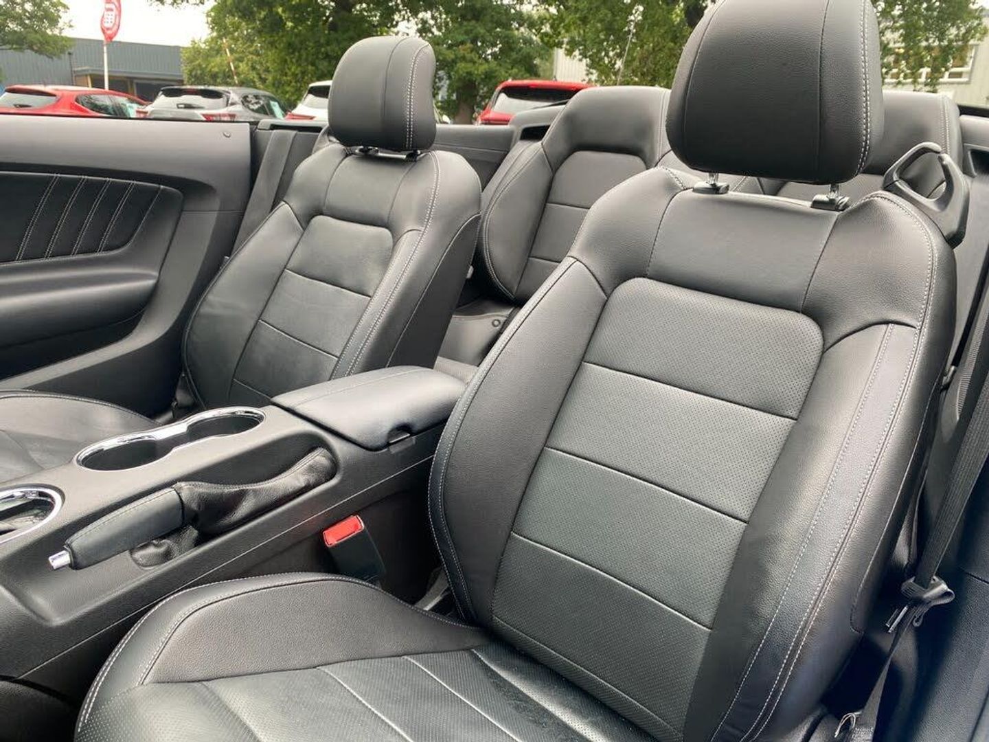 Apple car play/Android Auto, Cruise control, Drive mode selector, Electric power steering, Ford SYNC 3 with 8" colour touch screen, Ford SYNC Bluetooth connection with voice control and USB port, Rear view camera, Service interval indicator, SYNC Emergency Assistance, Trip computer, Independent front/rear suspension, Limited slip differential, DAB Digital radio, Auto dimming rear view mirror, Automatic headlights, Automatic rain sensing wipers, Bi-Xenon headlights, Body colour bumpers, Body colour door mirrors, Electric folding door mirrors with puddle lamps, Electric front windows, Electric rear quarter windows, Front fog lights, 6 way electric front seats, Ambient lighting, Cup holders, Driver's electric lumbar adjustment, Dual electronic automatic temperature control, Front headrests, Front sports seats, Gearshift paddles, Illuminated entry system, Isofix system on outer rear seats, Leather gearknob, Leather multifunction steering wheel, Leather upholstery, Rake/reach adjustable steering wheel, 4 seatbelts, ABS, Drivers knee airbag, Dual front airbags, ESP, Front side airbags, Tyre pressure monitor, Key free system with 'Ford Power' start button, Keyless entry, MyKey system, Perimeter alarm, 19" 5x2 spoke black alloy wheels, Tyre repair kit