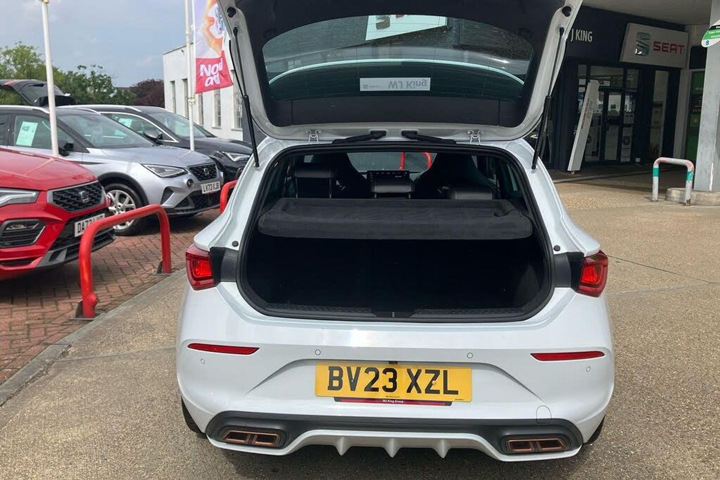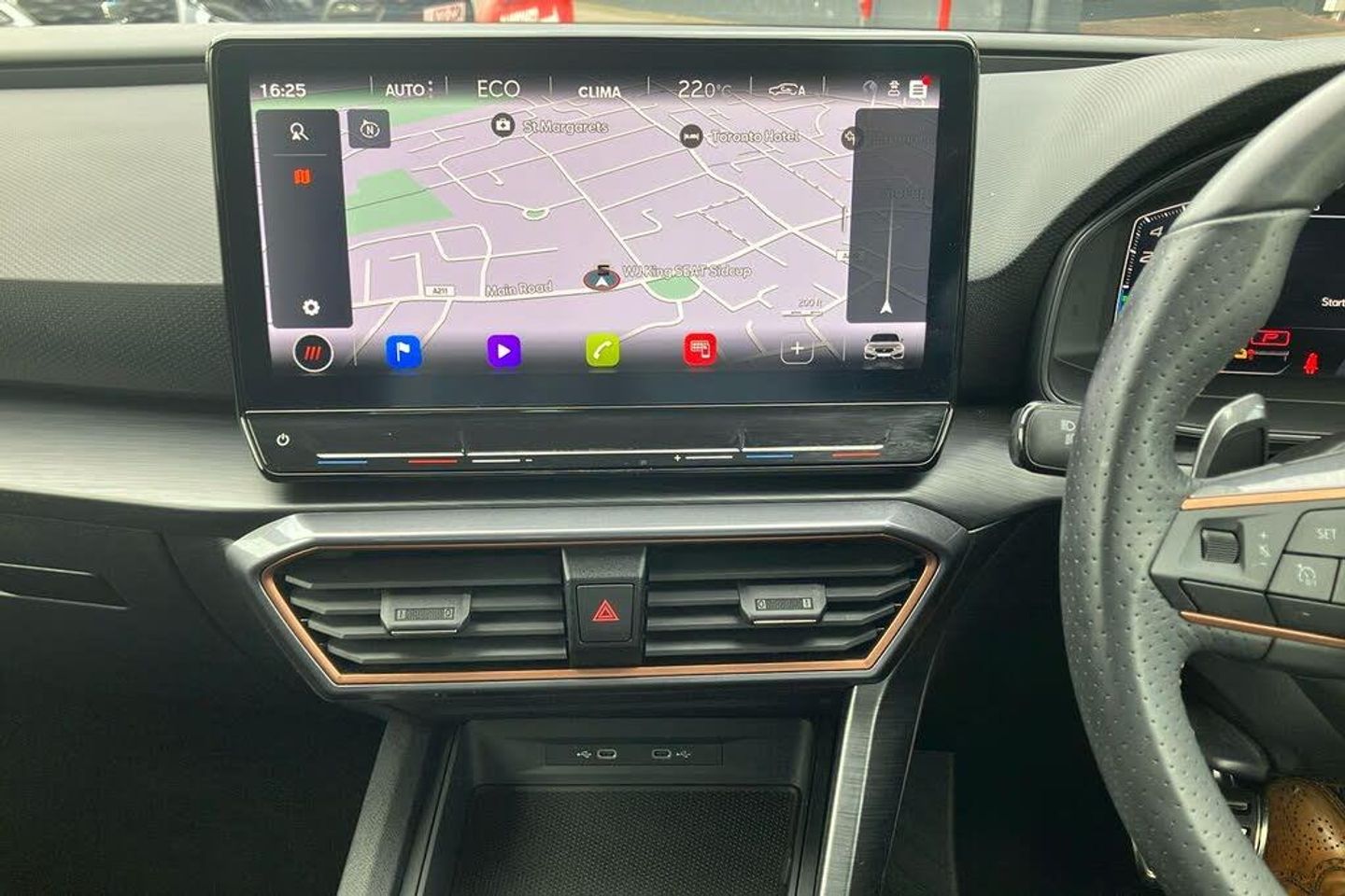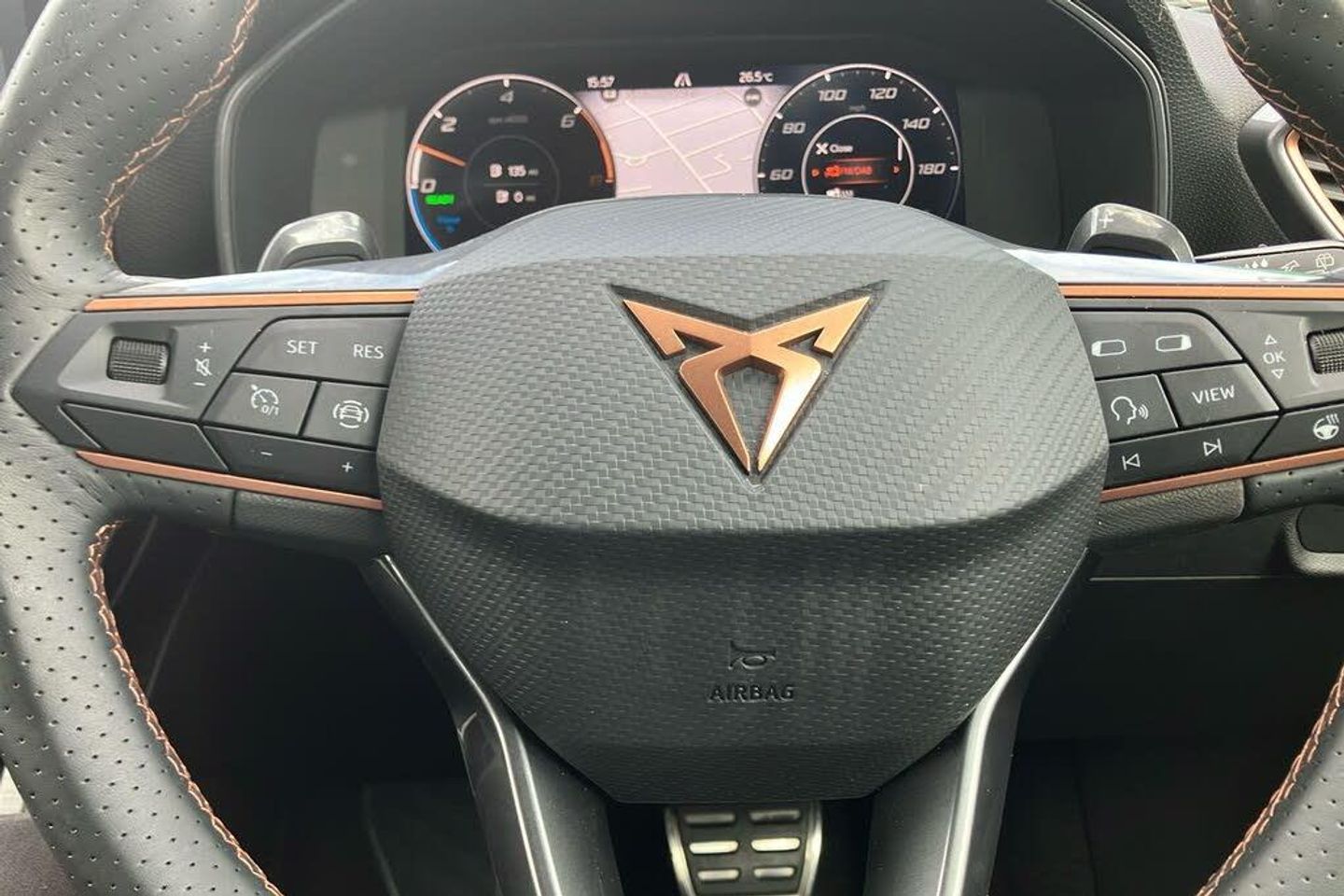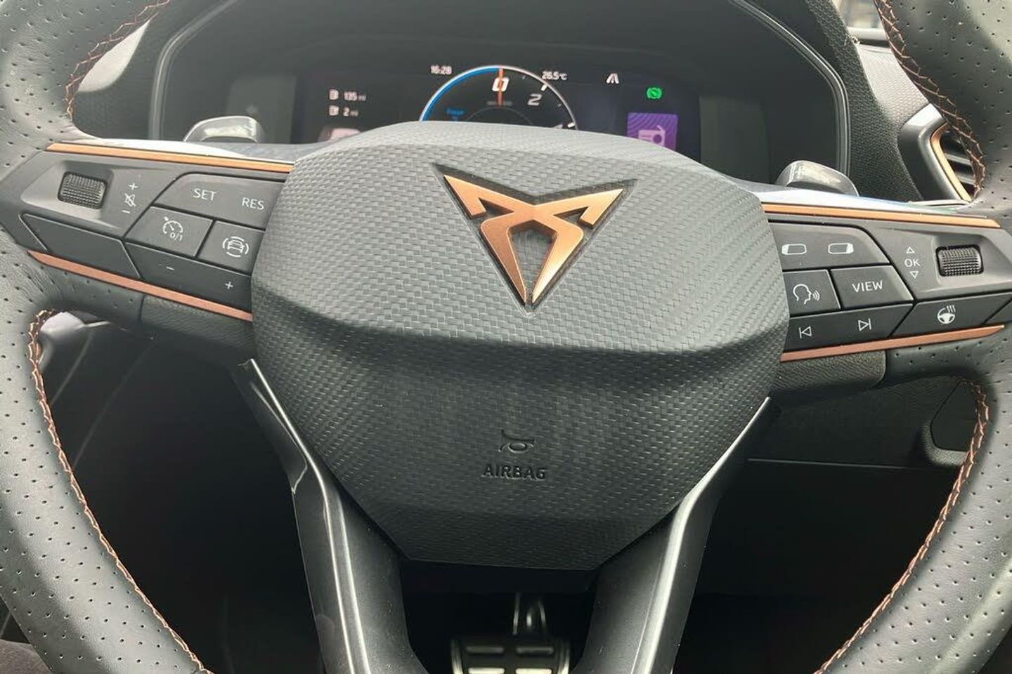 12V Power Supply in Centre Console 19in Alloy Wheels - Machined - Black and Silver ABS - Anti-Lock Braking System Adaptive Cruise Control with Follow-to-Stop and Speed Limiter Anti-Theft Alarm System - Interior Monitoring - Backup Horn and Towing Protection Auto Dimming Rear View Mirror Brake Control System - ESC and Brake Booster Breakdown Kit CUPRA Black Brake Calipers CUPRA Connect - Safety - Service - Remote and Online CUPRA Drive Profile CUPRA Dynamic and Comfort Pack CUPRA Leather Flat Bottomed - Heated - Perforated Steering Wheel with Gearshift Paddles CUPRA Sports Bumpers Charging Cable - Mode 2 - 10amp Charging Cable - Mode 3 - 16amp Chrome and Copper Detailing Cupra Sport Pedals Dark Tinted Rear Windows Digital Cockpit Door Mirrors Electrically Adjustable - Folding and Heated Driver and Front Passenger Airbags with Front Passenger Airbag Deactivation - Front Side and Curtain Airbag Drivers and Passenger Seats - Manual Height Adjustment Electric Front and Rear Windows Electronic Parking Brake Extended Safety System Five Headrests Folding Boot Cover Front Assist - Forward Collision Warning Braking Reaction to Vehicles - Pedestrians and Cyclists Front Centre Armrest Front Seats Manual Lumbar Adjustment Front and Rear Reading Lights - Four Front and Rear Seat Belt Reminders Full Link Smartphone Integration Headlining - Black ISOFIX Points in Outer Rear Seats with Top Tether Anchorage Points Illuminated Front Door Sill Illuminated Sunvisor with Mirror Interior Ambient Lighting Interior Wraparound Lighting KESSY Advanced - Keyless Start - Keyless Entry LED Front Fog Lamps with Cornering Function LED Headlight LED Rear Fog Lamps Lane Assist Lockable Tailgate Media System Plus with Navigation Park Assist - including Front and Rear Sensors Power Steering Rain Sensing Wipers Rear Bench Seats with 60-40 Split and Armrest Rear Diffuser with Twin Exhaust Pipe on each Side - Simulated Exhaust Rear View Camera Separate Daytime Running Lights with Automatic Headlight Control and Coming Home Feature Seven Speakers Sports Bucket Seats Storage Pockets on Rear of Front Seats Three Zone Climate Control Tiredness Recognition System Tool Kit - without Jack Tyre Pressure Monitoring System USB Type C x4 - x2 Front and x2 Rear