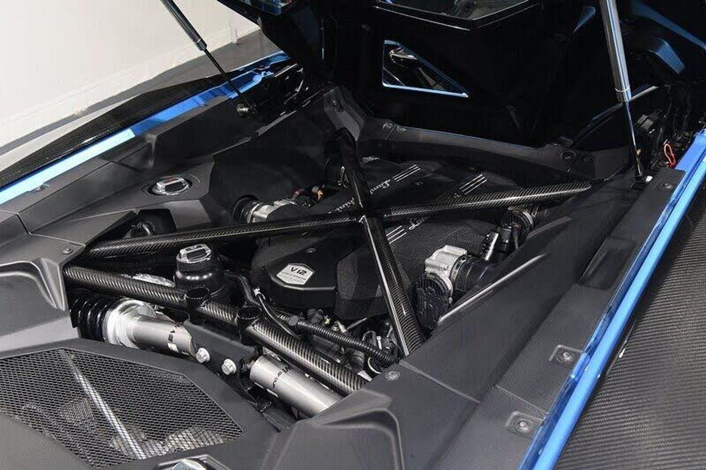 VVS are pleased to offer this 2018 Lamborghini Aventador LP740-4 S Roadster in Blu Aegir over Bianco Polar interior with Blue stitching. This highly specified example comes equppied with Fully electric and heated seats, Gloss black interior trim, Carbon fibre interior package, Carbon fibre front splitter, Carbon fibre bonnet vents, Carbon fibre side vents, Carbon fibre top vents, Carbon fibre side skirts, Carbon fibre kick plates, Carbon fibre rear spolier, Carbon fibre rear diffuser, Carbon fibre roof, Carbon fibre X-frame, Q-citura stitching, Navigation, Lifting system, Transparent engine cover, Full body PPF, Black brake callipers, 21" Dianthus alloys finished in Silver and a full Lamborghini main dealer service history from new.PDI - 26/04/2018 - 35 Miles - Lamborghini Leicester 09/04/2019 - 2372 Miles - Lamborghini Leicester 08/07/2020 - 7176 Miles - Lamborghini Leicester 23/08/2021 - 12224 Miles - Lamborghini Leicester 17/08/2022 - 14166 Miles - Lamborghini Leicester 21/08/2023 - 15110 Miles - Lamborghini Leicester 15/08/2024 - 15527 Miles - Lamborghini Leicester