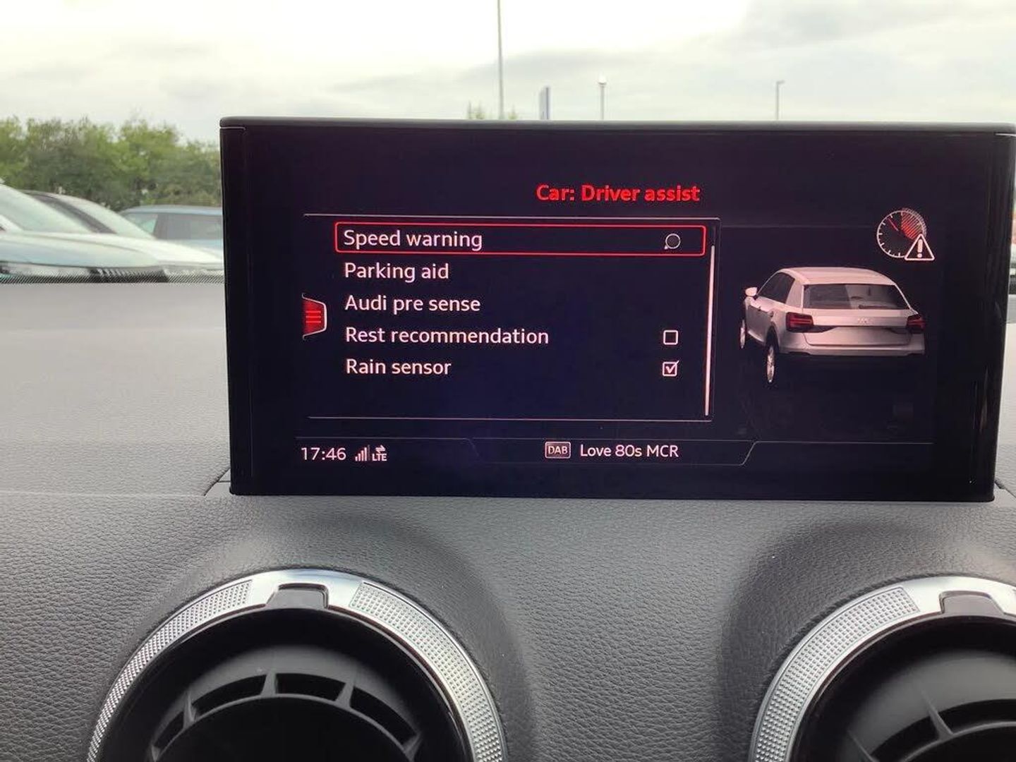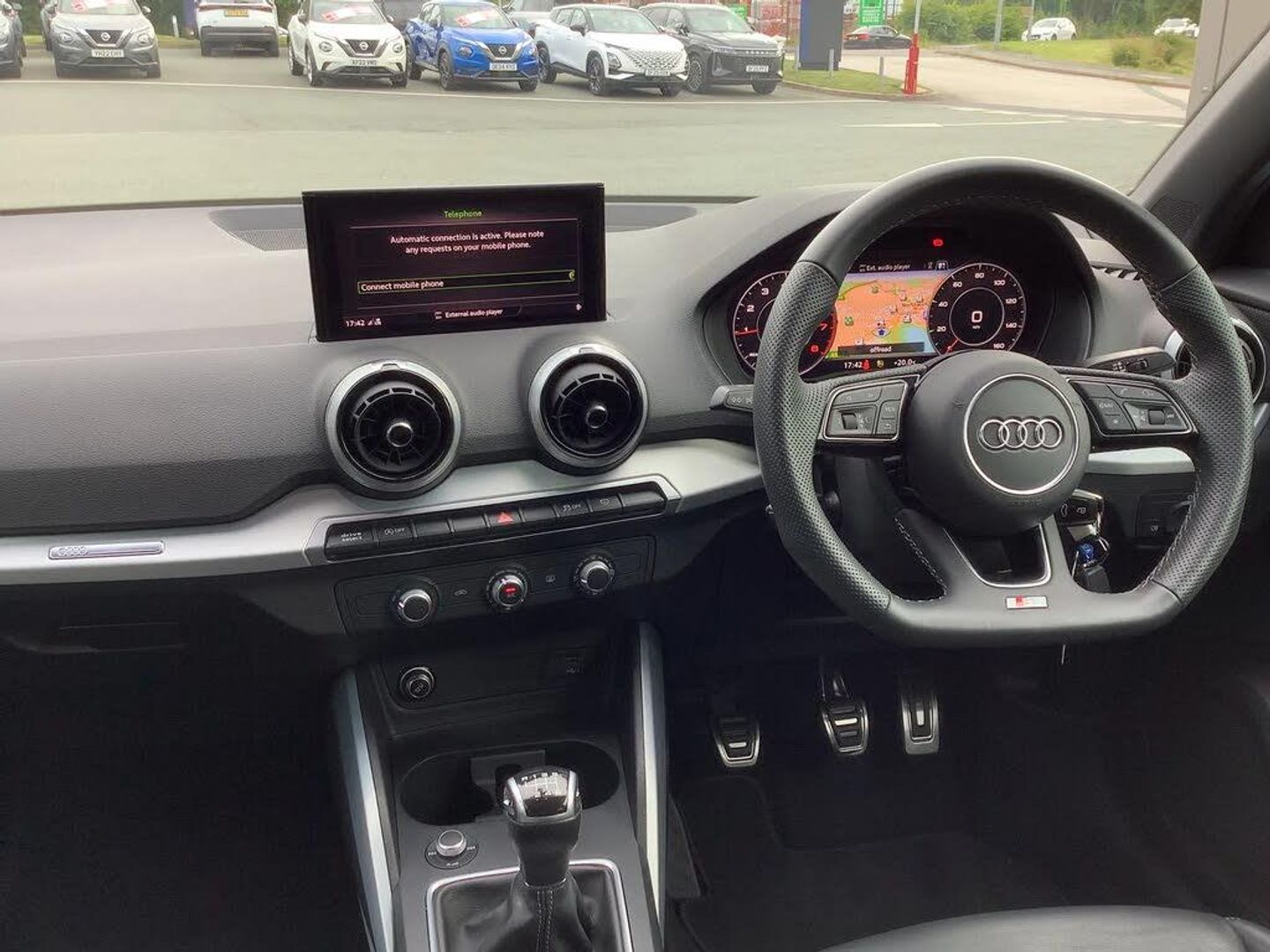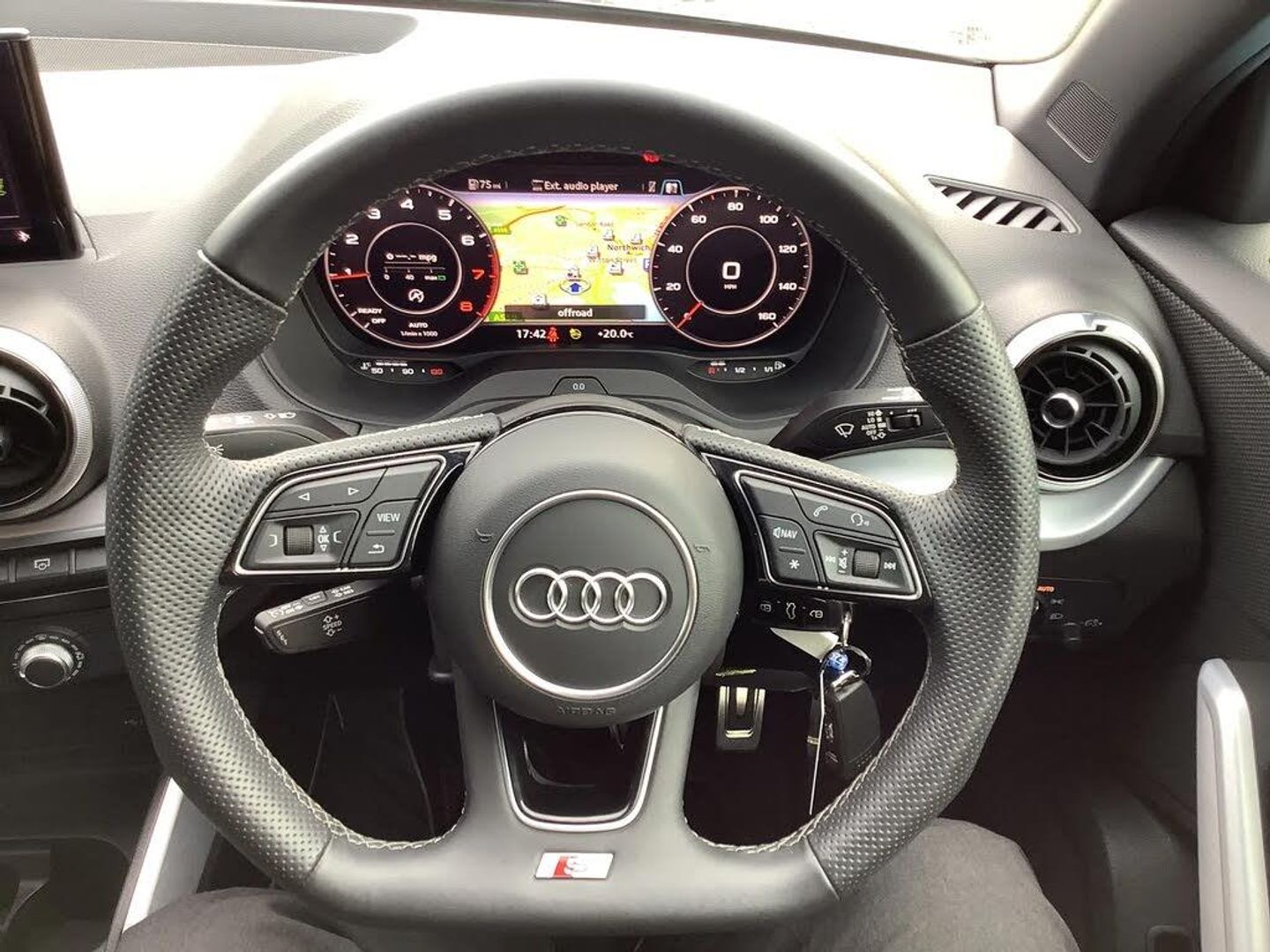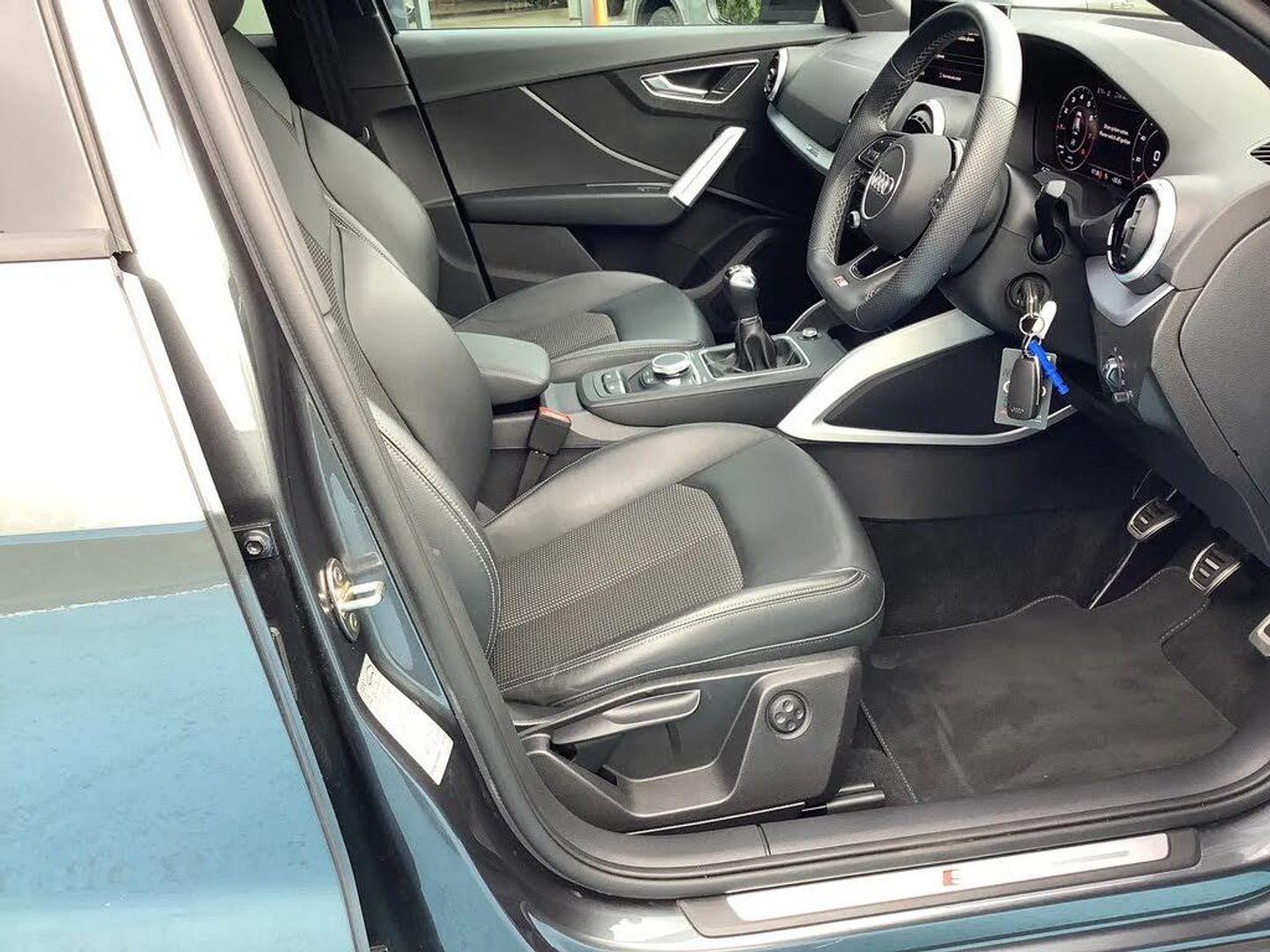 Audi connect navigation and infotainment includes innovative services,Audi connect remote and control connects your vehicle to your smartphone,Audi drive select: power steering assistance + engine (modes: comfort, auto, dynamic, efficiency, individual),Audi smartphone interface - Apple carplay/Android Auto, USB connect, 2xSDXC card readers, voice control for navi, telephone, music and 3rd party apps,Audi virtual cockpit,Automatic start/stop system with recuperation,Bluetooth interface includes bluetooth audio streaming,Cruise control,E-call,MMI navigation plus with MMI touch,Power operated tailgate,Progressive steering,Rear parking sensors,Sport suspension,6 passive loudspeakers,DAB Digital radio,Audi beam,Auto dimming rear view mirror,Black window trims,Bumper in full body colour paint finish,Electrically adjustable, folding, auto dimming and heated door mirrors with integrated LED side indicators,Front windscreen with grey tinted sunband,LED daytime running lights,LED headlights with dipped beam, high beam, position lights, indicators,LED rear lights,LED third brake light,Privacy glass - dark tinted rear and rear side windows from B-pillar backwards,Rear side wing doors,Rear wiper,Variable front intermittent wipers,Wheel arch trims in manhattan grey,12v socket in front,3 seat bench in 2nd row,3 spoke flat bottomed multi-function leather sport steering wheel,4-way electric lumbar support for front seats including manual seat height adjustment for both front seats,60/40 split folding rear seat bench,Black cloth headlining,Front and rear head restraints,Front centre armrest,Front sport seats,Front/rear floor mats,Height/reach adjust steering wheel,Illuminated door sill trims with S logo,ISOFIX child seat mounting in front passenger and rear outer seats,Manual air conditioning,Single front passenger seat,Stainless steel pedals,Black styling pack - Q2,3x3 point rear seatbelts,6 airbags - Front, curtain and front side airbags,Electromechanical parking brake,Electronic stabilisation control including ABS, ASR and EDL,Front passenger airbag deactivation,Hill hold assist,Pre-sense front with pedestrian recognition,Seatbelt monitoring,Tyre pressure warning light with visual and acoustic warning,Warning triangle and first aid kit,Anti theft alarm,Anti theft wheel bolts,Electronically operated child locks,Remote central door locking,Aluminium interior element,Matt brushed aluminium trim inlays,Tool kit