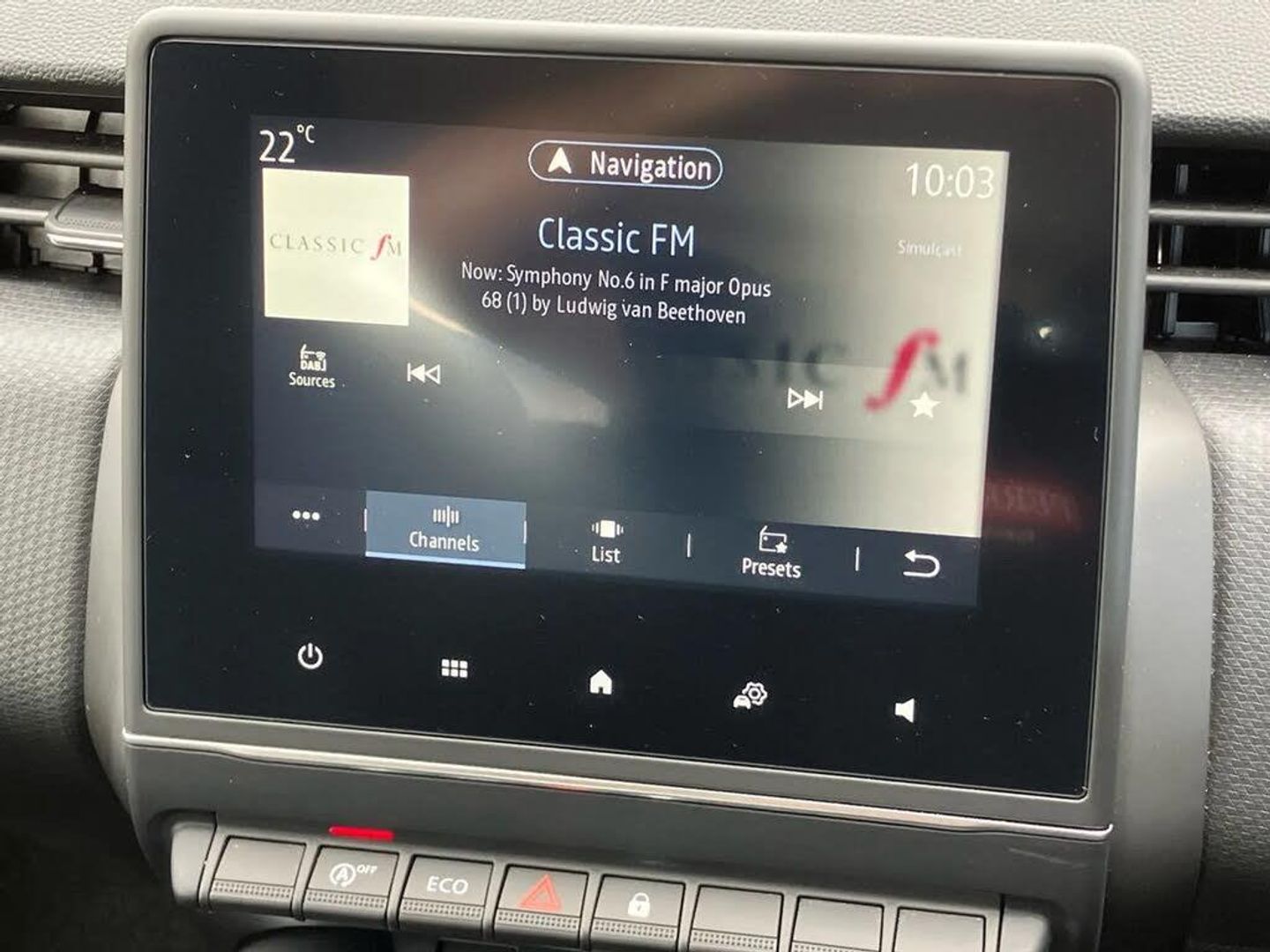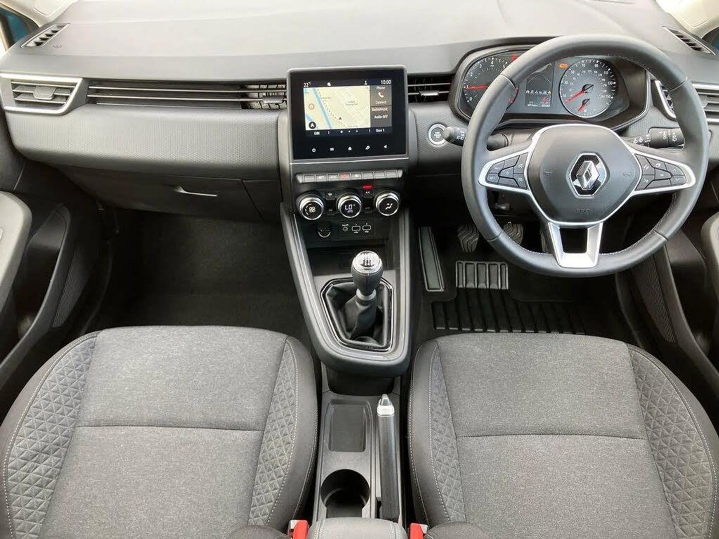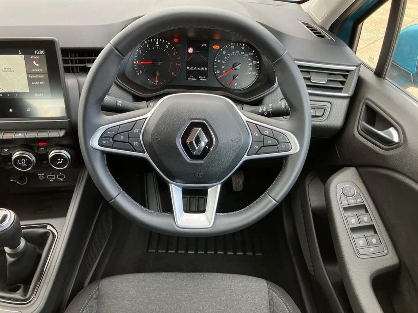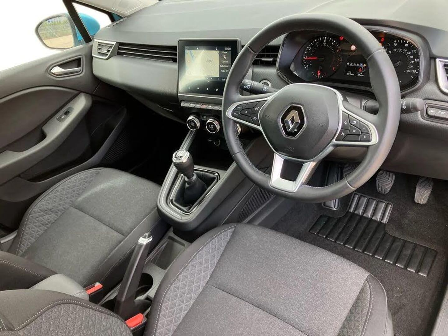 4.2" colour instrument display,Cruise control + speed limiter,E-call,Easy link navigation with 7" touchscreen+4x20W amplifier+FM DAB double tuner, sound auditorium, 2xUSB/1xjack/bluetooth, smartphone integration plus,Eco mode driving function,Gear change indicator,Lane departure warning system,Lane keep assist,Over speed prevention,Rear parking sensors,Traffic sign recognition,Trip computer,Variable assistance electric PAS,Wireless phone charger,Auto light control and rain sensing wiper,Body colour door handles,Body colour door mirrors,Body coloured bumpers,Body coloured rear spoiler,Chrome insert on lower side doors with Clio embossing,Drivers one touch window with anti-pinch feature,Electric adjustable/heated/folding door mirrors,Electric front windows,Exterior rear hidden door handles,Full LED front and rear headlamps integrating daytime running lights at the front and rear,Rear fog lights,Rear side wing doors,Rear wiper,Third brake light,Tinted rear windows,Variable speed on front windscreen wipers,12V Accessory socket,3 rear height adjustable headrests,3 seat bench in 2nd row,6.2L front glovebox,60/40 split rear seats,Air recirculation control,Centre console with armrest,Cloth upholstery,Driver's seat height adjustment,Front cupholders,Front door storage bin,Height adjustable front headrests,Height/reach adjust steering wheel,Isofix system on outer rear seats,Manual air conditioning,Multi function steering wheel,Pollen filter,Single front passenger seat,System for Restraint and Protection SRP-front seats,3 point seatbelts on all rear seats,ABS+EBD+Brake assist,Curtain airbags,Driver and passenger front and side airbag deactivation,Driver/Front Passenger airbags,ESC - Electronic Stability Control + traction control,Front side airbags(head+thorax),Height adjustable driver's seatbelt,Hill start assist,Manual rear child locks,Seatbelt warning,Tyre pressure warning,Central door locking,Deadlocking system,Hands free key card with push button, start and stop function,Locking fuel filler cap,RAID (Renault Anti-Intruder Device) with automatic door locking,Rear side wing door and window child locking function (front driver door control panel),Remote central locking with thatcham approved immobiliser,16" Philia diamond cut alloy wheels,Celadon Blue