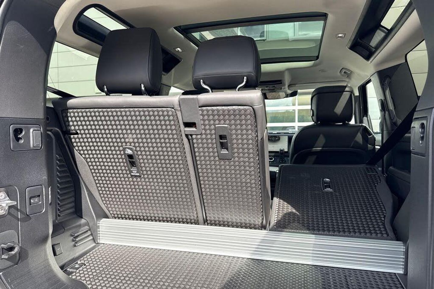 11.4in Touchscreen, 12V Socket in Loadspace, 14-Way Heated and Cooled Electric Memory Front Seats with 4-Way Manual Headrests, 2-Zone Automatic Climate Control, 20in Alloy Wheels - Style 5098 - 5 spoke - Gloss Sparkle Silver, 20in Full Size Spare Wheel, 360 Degree Parking Aid, 3D Surround Camera, 40-20-40 Fixed Rear Seats with Centre Armrest, ABS - Anti Lock Braking System, ACC - Adaptive Cruise Control, AHBA - Auto High Beam Assist, Airbags - Driver, Airbags - Front Passenger, All Season Tyres, Alpine Lights, Android Auto, Apple CarPlay, Assisted Tailgate with Soft Close, Auto-Dimming Interior Rear View Mirror, Automatic Headlight Levelling, Automatic Headlights and Rain Sensing Wipers, Blind Spot Assist, Body Coloured Roof, Brake Hold, Brake Pad Wear Indicator, CBC - Cornering Brake Control, Carpet Mats, Centre Console with Armrest, Centre High Mounted Stop Light, Coil Suspension, Core Exterior Pack, Cross Car Beam in Light Grey Powder Coat Brushed Finish, Customer Configurable Autolock, DSC - Dynamic Stability Control, Digital Audio Broadcast Radio - DAB, Driver Condition Monitor, Durable Rubber Cabin Flooring, Durable Rubber Loadspace Flooring, EBA - Emergency Brake Assist, EBD - Electronic Brake-Force Distribution, EPAS - Electric Power Assisted Steering, ETC - Electronic Traction Control, Electric Cabin Pre-conditioning, Electric Parking Brake, Electric Windows with One-Touch Open-Close and Anti-Trap, Electrically Adjustable Steering Column, Emergency Braking, Extended Leather Upgrade, Follow Me Home Lighting, Footwell Lights - Front, Front Airbags with Passenger Seat Occupant Detector, Front Fog Lights, Front Passenger Seat ISOFIX, Glovebox Storage, HDC - Hill Descent Control, Headlining - Light Oyster Morzine, Heated Electric Power Fold Door Mirrors with Approach Lights and Auto-dimming Driver Side, Heated Rear Window with Timer, Heated Steering Wheel, Heated Windscreen, Hill Launch Assist, Interactive Driver Display, Intrusion Sensor, Keyless Entry, LED Tail Lights, LESS Roof Rack or Rails, LESS Wireless Charger, Lane Keep Assist, Leather Gearshift, Loadspace Cover, Loadspace Hooks, Locking Wheel Nuts, Low Traction Launch, Meridian Sound System, Non Smokers Pack, Online Pack with Data Plan, Panoramic Rear Side Glass, Pivi Pro - Connected, Power Operated Child Locks, Premium Cabin Lighting, Premium LED Headlights with Signature DRL, Puddle Lights, Push Button Start, RSC - Roll Stability Control, Rear Collision Monitor, Rear Fog Lights, Rear ISOFIX, Rear Reading Lights, Rear Traffic Monitor, Rear Wash Wiper, Remote, Seat Belt Reminder, Seats - Rear Centre Head Restraint, Side-Hinged Tailgate, Sliding Panoramic Roof, Standard Leather Steering Wheel, Standard Seating Configuration - 5 Seats, Standard Treadplates, Sun Visors - Illuminated Vanity Mirrors, TPMS - Tyre Pressure Monitoring System, TSA - Trailer Stability Assist, Terrain Response, Traffic Sign Recognition and Adaptive Speed Limiter, Trip Computer, Twin Front Cupholders with Cover, Twin Speed Transfer Box - High-Low Range, Wade Sensing, 20in Alloy Wheels - Style 5094 - 5 Spoke - Gloss Sparkle Silver, Privacy Glass, Santorini Black