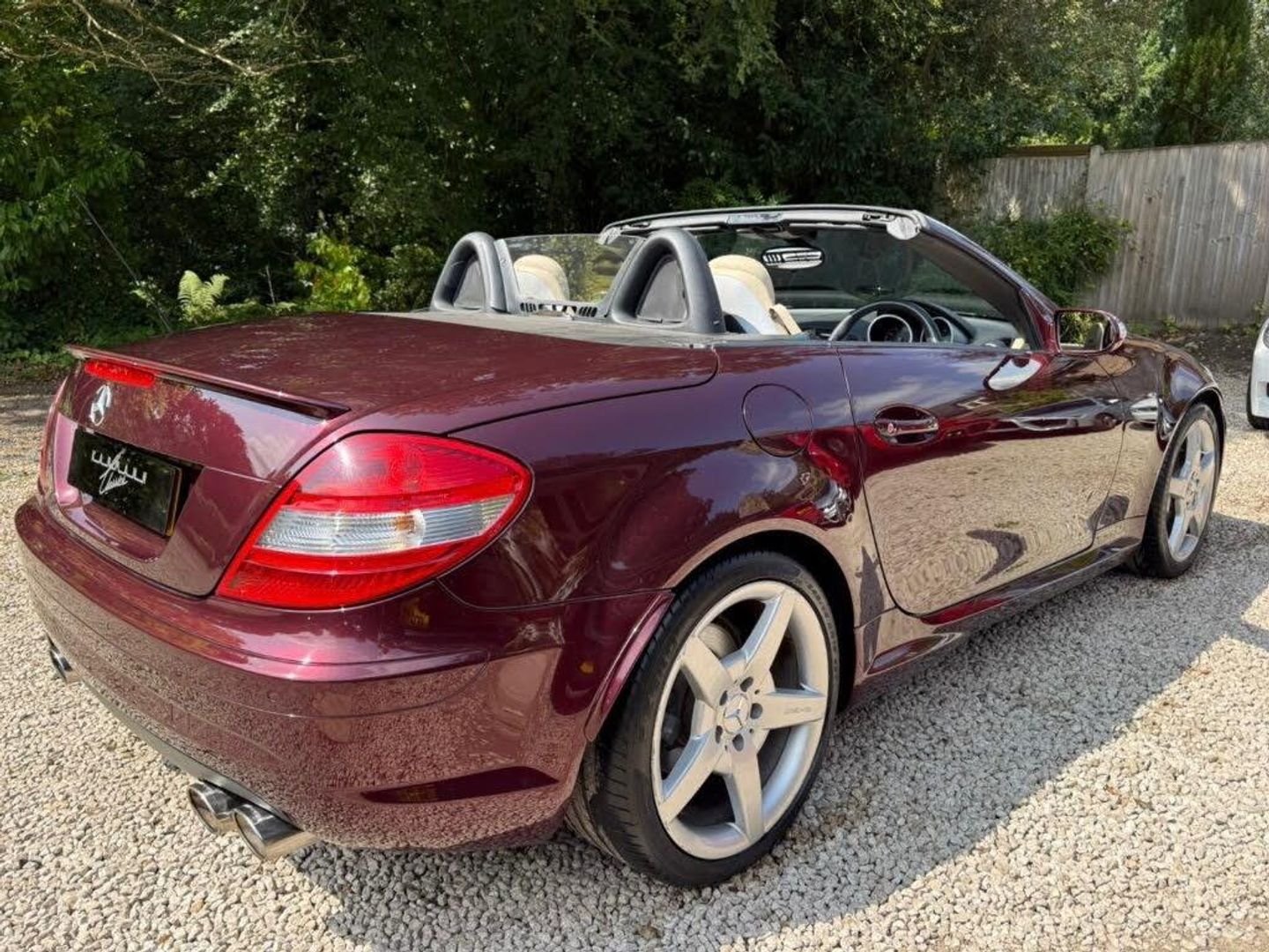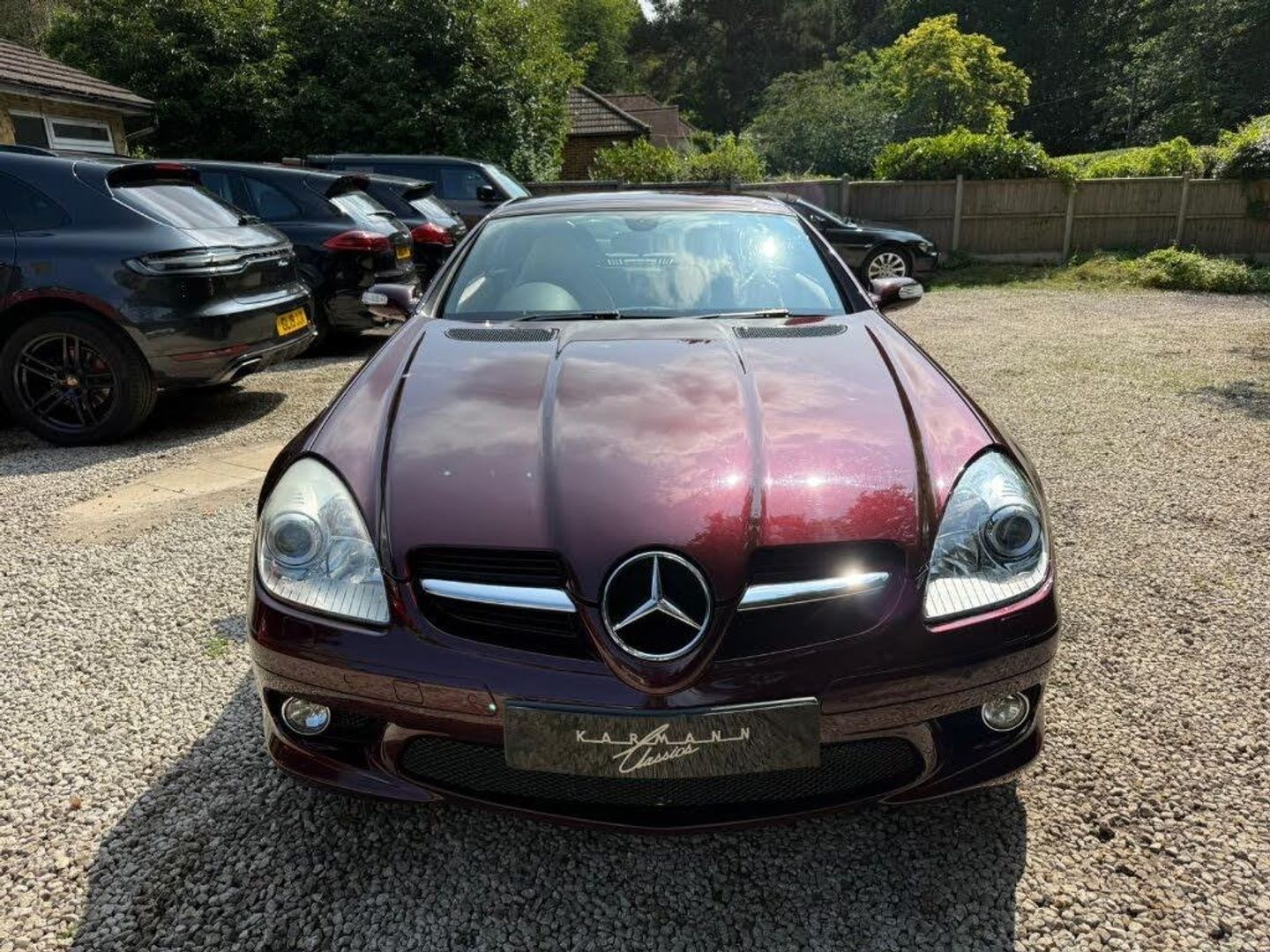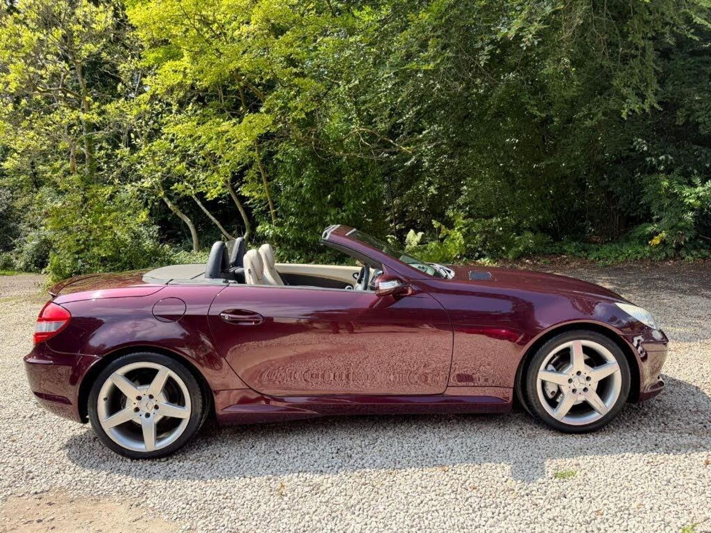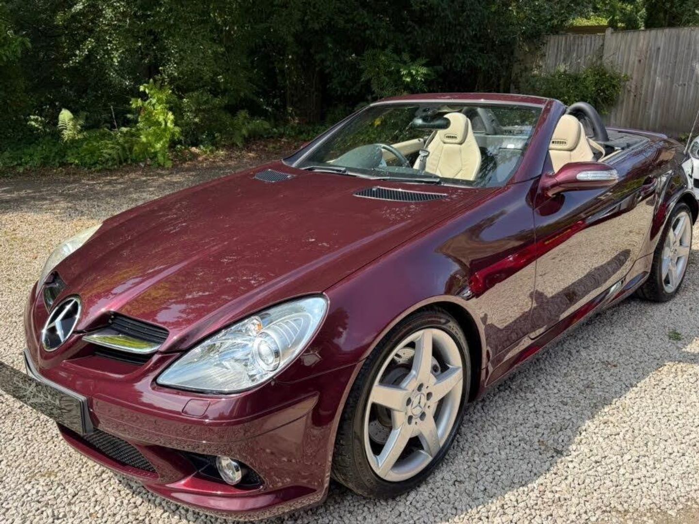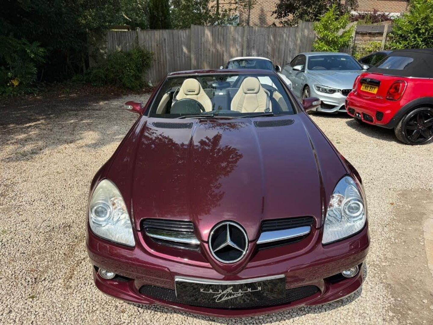 Red interior.FULL AMG SLK 55 PACKAGE,DESIGNO COLOURS,Just Arrived From Sytner Mercedes Main Dealer This ONE OF ONE In Special Order Colours & Spec,Been Told From Mercedes Records This is Totally Unique-Not Another In This Colour & Interior Colours Then To Complete The Build Had A Full FACTORY AMG BUILD PACKAGE,Presented In DESIGNO MYSTIC RED PEARL Complimented With IVORY WHITE LEATHER,FULL AMG PACKAGE,SLK 55 Build & Spec,AMG55 FULL BODY STYLING,AMG55 FRONT BUMPER,AMG55 SIDE SKIRTS,AMG55 REAR BUMPER,AMG55 REAR BOOT SPOILER,AMG55 REAR VALANCE,AMG55 QUAD EXUT EXHAUSTS,AMG55 SPORTS SUSPENSION,AMG55 FRONT GRILLES LOWER & UPPER,AMG55 SPORTS SEATS,AMG55 SPORTS STEERING WHEEL,AMG55 18" STAGGERED ALLOYS,Recently Refurbished Alloys & For Life Kept On Build Pirelli Tyres,Just Had 4 New Pirellis,AMG OVERMATS,AMG BRAKES,Silver Callipers,Interior Trim In IVORY WHITE LEATHER,Extended Leather Package Throughout Cabin,Sports Seats,Fully Electric Memory Seats & Mirrors,AIRSCARF,HEATED SEATS,3 Spoke Multi-Function Sports Steering Wheel In Black Leather,Electric Steering Wheel Rake Adjust,Paddle Shift Gears,COMAND,SATELLITE NAVIGATION,DAB HI-FI,SINGLE CD & DVD,AUX Input,Upgrade Sound Package,Universal Telephone Package,SOUND 2 LIGHT,DVD Player With Region 2 Code,Rain Sensor Wipers,Electric Windows,Electric Power Folding Mirrors,Electric Power Roof,Wind Deflector & Roll Over Hoops In Alloy & Leather,Automatic Dual Climate Control,Cruise Control With Speed Limiter,Interior Lighting Package,Increased Anti Theft Protection,Auto Bi-Xenon Lights With Dynamic Control & Cornering Function,Front Driving Lights,Headlight Wash System,Spare Wheel/Folding Wheel,Battery With Increased Capacity,Increased Fuel Capacity,7 Speed With Manual Mode,SILK NAPPA LEATHER IN IVORY WHITE LEATHER,INDIVIDUAL DESIGNO MYSTIC RED PEARL,WARRANTED MILES OF 43k,FULL OFFICIAL MERCEDES BENZ SERVICE HISTORY,HPI CLEAR,2 Keys,All Handbooks & Build Sheet,Will Be Supplied With 1 Year Warranty,1 Year MOT,Just Been Serviced,Full Tank Of Fuel,Car Cover Included,UK Delivery Included,Will Be Going For A £1k Valet & Teflon Valet Detail,THIS MOTOR CAR IS LIKE NEW,2 Drivers From New,THE ONLY EXAMPLE IN THE UK,A TRUE COLLECTORS EXAMPLE,DESIGNO & AMG,JUST STUNNING,Values Beginning To Climb Rapidly,Classic Finance Arranged,May Consider A PX,Videos Available,KARMANN CLASSIC CARS,MODERN DAY KLASSICS,RIPLEY,SURREY,CLASSIC CARS & PORSCHE ALSO PURCHASED