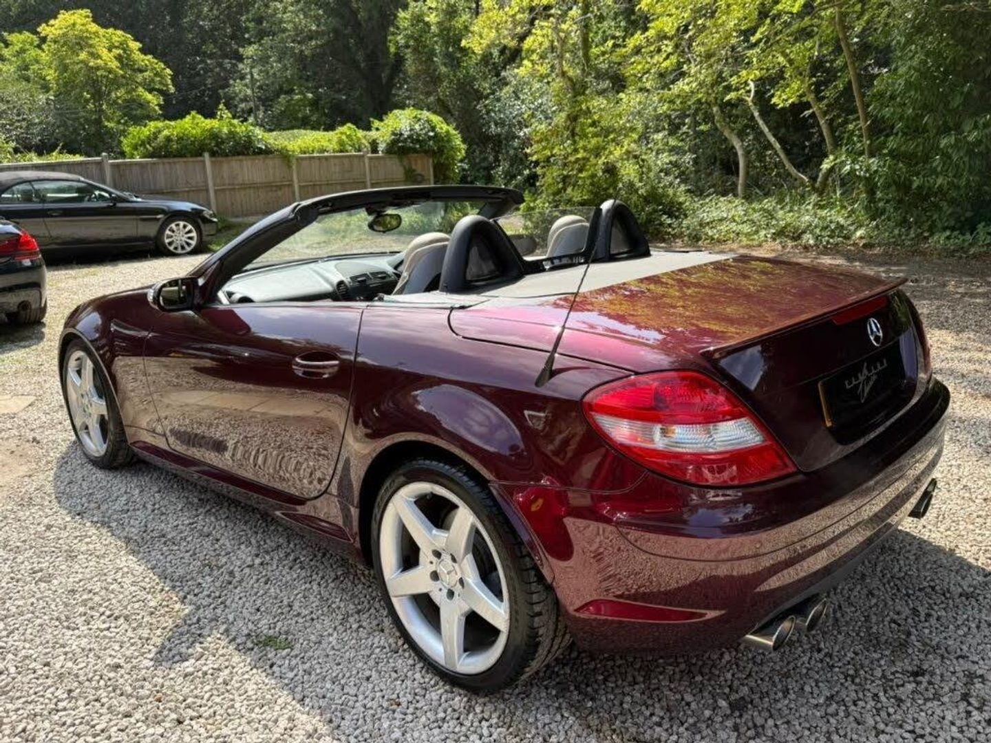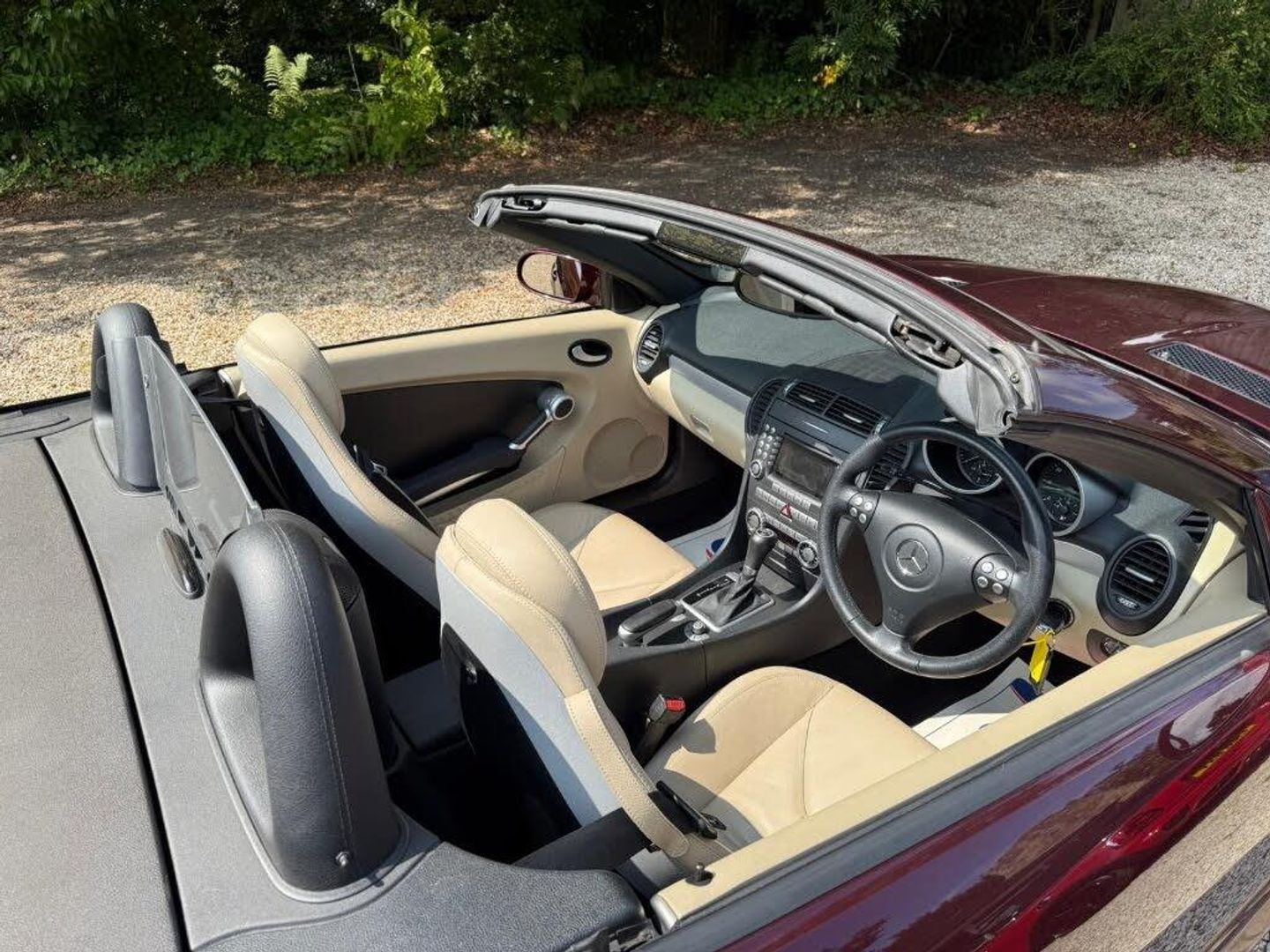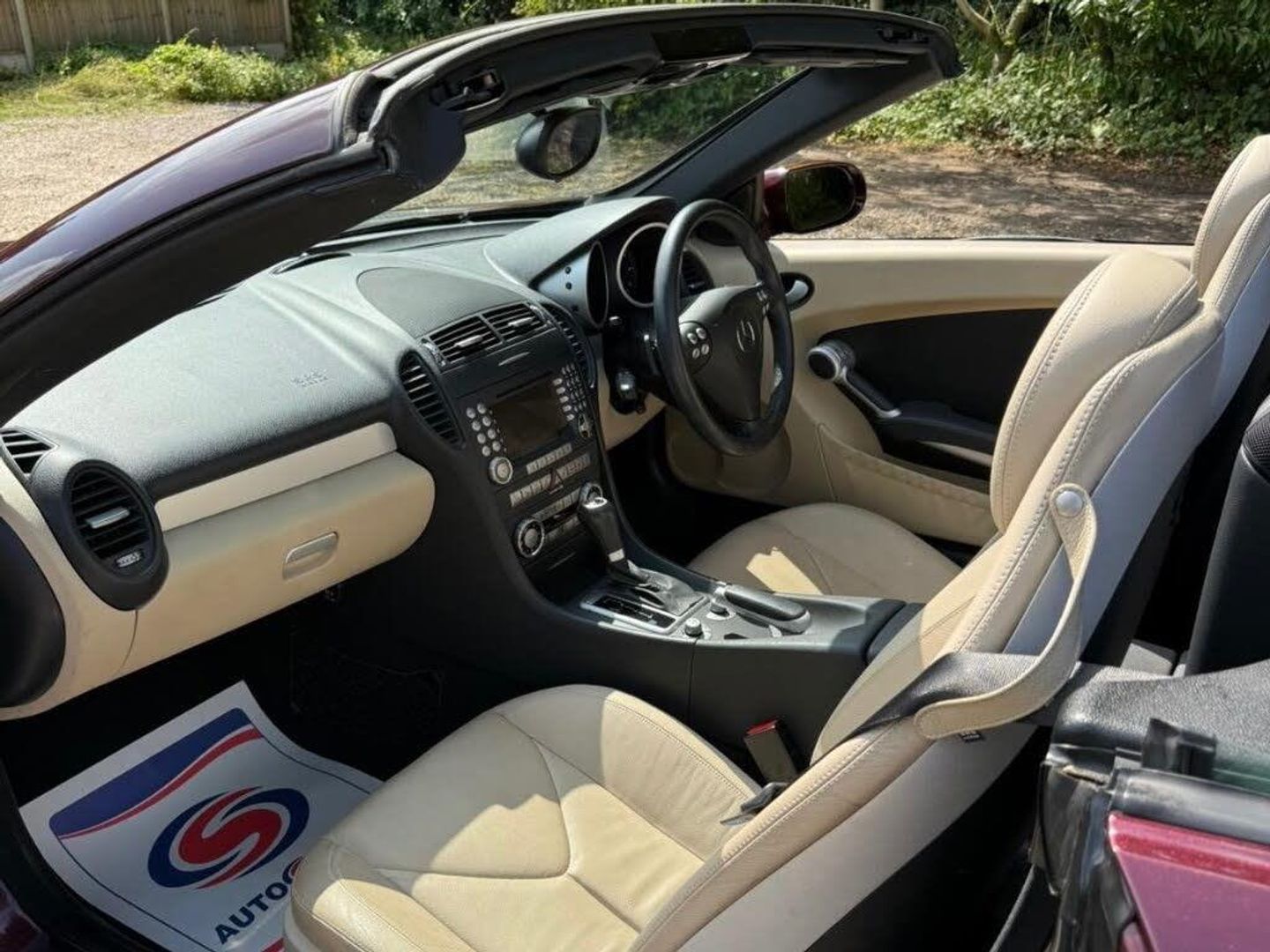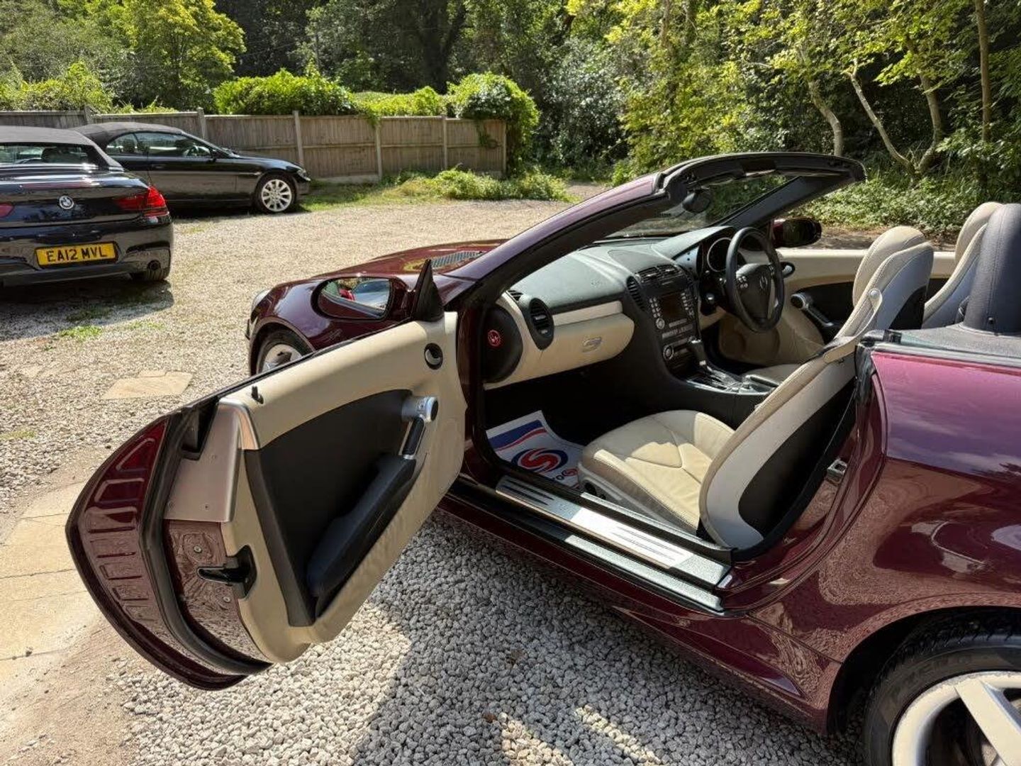 Red interior.FULL AMG SLK 55 PACKAGE,DESIGNO COLOURS,Just Arrived From Sytner Mercedes Main Dealer This ONE OF ONE In Special Order Colours & Spec,Been Told From Mercedes Records This is Totally Unique-Not Another In This Colour & Interior Colours Then To Complete The Build Had A Full FACTORY AMG BUILD PACKAGE,Presented In DESIGNO MYSTIC RED PEARL Complimented With IVORY WHITE LEATHER,FULL AMG PACKAGE,SLK 55 Build & Spec,AMG55 FULL BODY STYLING,AMG55 FRONT BUMPER,AMG55 SIDE SKIRTS,AMG55 REAR BUMPER,AMG55 REAR BOOT SPOILER,AMG55 REAR VALANCE,AMG55 QUAD EXUT EXHAUSTS,AMG55 SPORTS SUSPENSION,AMG55 FRONT GRILLES LOWER & UPPER,AMG55 SPORTS SEATS,AMG55 SPORTS STEERING WHEEL,AMG55 18" STAGGERED ALLOYS,Recently Refurbished Alloys & For Life Kept On Build Pirelli Tyres,Just Had 4 New Pirellis,AMG OVERMATS,AMG BRAKES,Silver Callipers,Interior Trim In IVORY WHITE LEATHER,Extended Leather Package Throughout Cabin,Sports Seats,Fully Electric Memory Seats & Mirrors,AIRSCARF,HEATED SEATS,3 Spoke Multi-Function Sports Steering Wheel In Black Leather,Electric Steering Wheel Rake Adjust,Paddle Shift Gears,COMAND,SATELLITE NAVIGATION,DAB HI-FI,SINGLE CD & DVD,AUX Input,Upgrade Sound Package,Universal Telephone Package,SOUND 2 LIGHT,DVD Player With Region 2 Code,Rain Sensor Wipers,Electric Windows,Electric Power Folding Mirrors,Electric Power Roof,Wind Deflector & Roll Over Hoops In Alloy & Leather,Automatic Dual Climate Control,Cruise Control With Speed Limiter,Interior Lighting Package,Increased Anti Theft Protection,Auto Bi-Xenon Lights With Dynamic Control & Cornering Function,Front Driving Lights,Headlight Wash System,Spare Wheel/Folding Wheel,Battery With Increased Capacity,Increased Fuel Capacity,7 Speed With Manual Mode,SILK NAPPA LEATHER IN IVORY WHITE LEATHER,INDIVIDUAL DESIGNO MYSTIC RED PEARL,WARRANTED MILES OF 43k,FULL OFFICIAL MERCEDES BENZ SERVICE HISTORY,HPI CLEAR,2 Keys,All Handbooks & Build Sheet,Will Be Supplied With 1 Year Warranty,1 Year MOT,Just Been Serviced,Full Tank Of Fuel,Car Cover Included,UK Delivery Included,Will Be Going For A £1k Valet & Teflon Valet Detail,THIS MOTOR CAR IS LIKE NEW,2 Drivers From New,THE ONLY EXAMPLE IN THE UK,A TRUE COLLECTORS EXAMPLE,DESIGNO & AMG,JUST STUNNING,Values Beginning To Climb Rapidly,Classic Finance Arranged,May Consider A PX,Videos Available,KARMANN CLASSIC CARS,MODERN DAY KLASSICS,RIPLEY,SURREY,CLASSIC CARS & PORSCHE ALSO PURCHASED