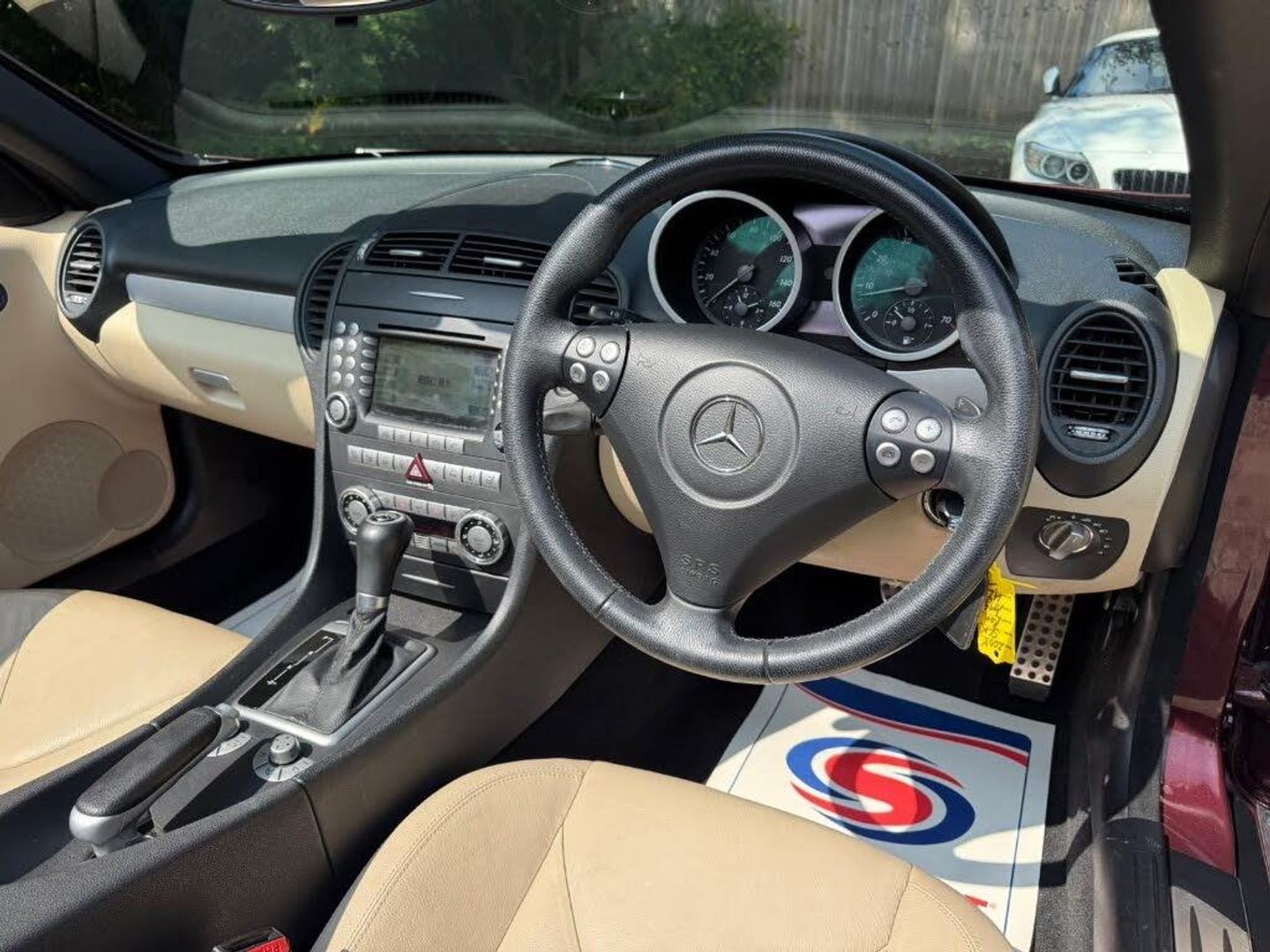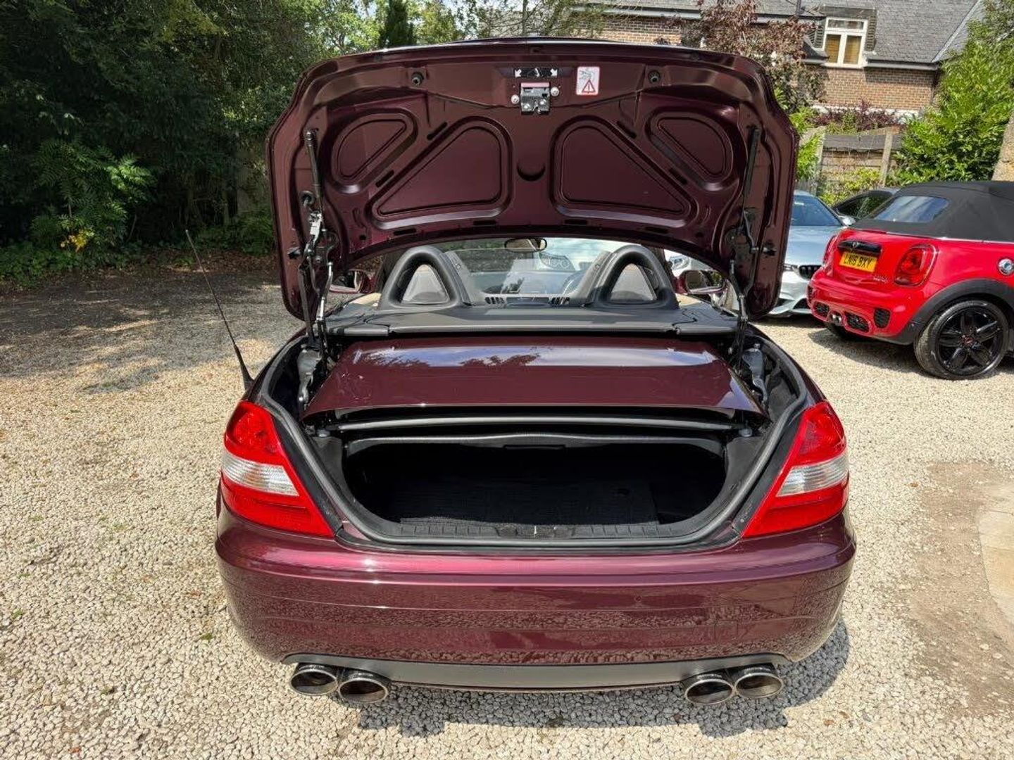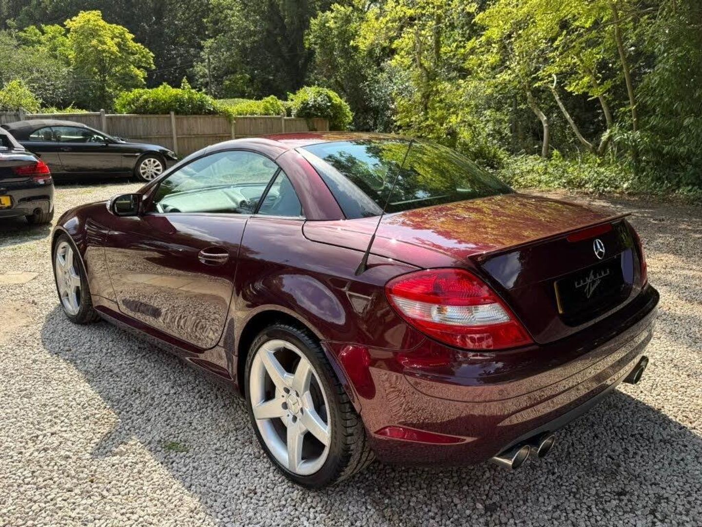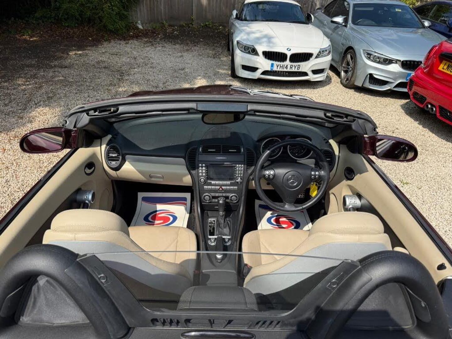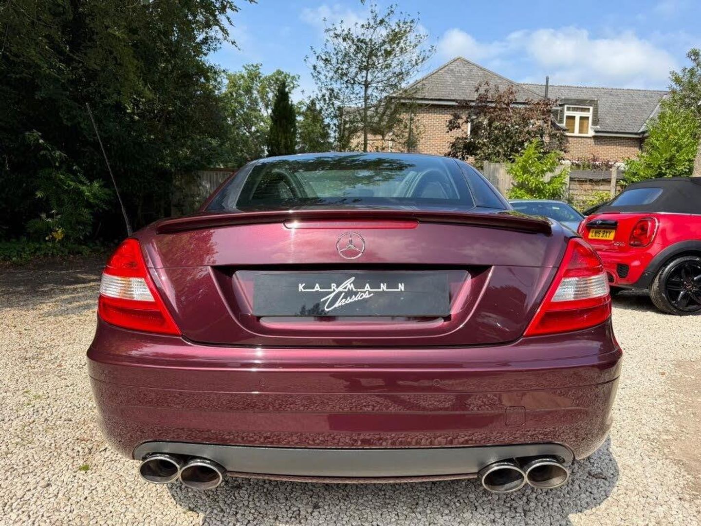 Red interior.FULL AMG SLK 55 PACKAGE,DESIGNO COLOURS,Just Arrived From Sytner Mercedes Main Dealer This ONE OF ONE In Special Order Colours & Spec,Been Told From Mercedes Records This is Totally Unique-Not Another In This Colour & Interior Colours Then To Complete The Build Had A Full FACTORY AMG BUILD PACKAGE,Presented In DESIGNO MYSTIC RED PEARL Complimented With IVORY WHITE LEATHER,FULL AMG PACKAGE,SLK 55 Build & Spec,AMG55 FULL BODY STYLING,AMG55 FRONT BUMPER,AMG55 SIDE SKIRTS,AMG55 REAR BUMPER,AMG55 REAR BOOT SPOILER,AMG55 REAR VALANCE,AMG55 QUAD EXUT EXHAUSTS,AMG55 SPORTS SUSPENSION,AMG55 FRONT GRILLES LOWER & UPPER,AMG55 SPORTS SEATS,AMG55 SPORTS STEERING WHEEL,AMG55 18" STAGGERED ALLOYS,Recently Refurbished Alloys & For Life Kept On Build Pirelli Tyres,Just Had 4 New Pirellis,AMG OVERMATS,AMG BRAKES,Silver Callipers,Interior Trim In IVORY WHITE LEATHER,Extended Leather Package Throughout Cabin,Sports Seats,Fully Electric Memory Seats & Mirrors,AIRSCARF,HEATED SEATS,3 Spoke Multi-Function Sports Steering Wheel In Black Leather,Electric Steering Wheel Rake Adjust,Paddle Shift Gears,COMAND,SATELLITE NAVIGATION,DAB HI-FI,SINGLE CD & DVD,AUX Input,Upgrade Sound Package,Universal Telephone Package,SOUND 2 LIGHT,DVD Player With Region 2 Code,Rain Sensor Wipers,Electric Windows,Electric Power Folding Mirrors,Electric Power Roof,Wind Deflector & Roll Over Hoops In Alloy & Leather,Automatic Dual Climate Control,Cruise Control With Speed Limiter,Interior Lighting Package,Increased Anti Theft Protection,Auto Bi-Xenon Lights With Dynamic Control & Cornering Function,Front Driving Lights,Headlight Wash System,Spare Wheel/Folding Wheel,Battery With Increased Capacity,Increased Fuel Capacity,7 Speed With Manual Mode,SILK NAPPA LEATHER IN IVORY WHITE LEATHER,INDIVIDUAL DESIGNO MYSTIC RED PEARL,WARRANTED MILES OF 43k,FULL OFFICIAL MERCEDES BENZ SERVICE HISTORY,HPI CLEAR,2 Keys,All Handbooks & Build Sheet,Will Be Supplied With 1 Year Warranty,1 Year MOT,Just Been Serviced,Full Tank Of Fuel,Car Cover Included,UK Delivery Included,Will Be Going For A £1k Valet & Teflon Valet Detail,THIS MOTOR CAR IS LIKE NEW,2 Drivers From New,THE ONLY EXAMPLE IN THE UK,A TRUE COLLECTORS EXAMPLE,DESIGNO & AMG,JUST STUNNING,Values Beginning To Climb Rapidly,Classic Finance Arranged,May Consider A PX,Videos Available,KARMANN CLASSIC CARS,MODERN DAY KLASSICS,RIPLEY,SURREY,CLASSIC CARS & PORSCHE ALSO PURCHASED
