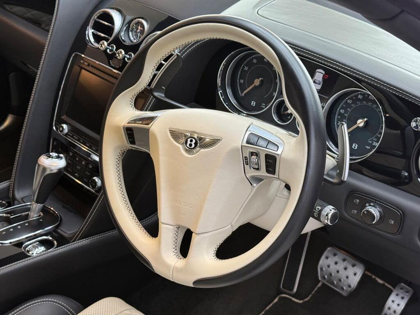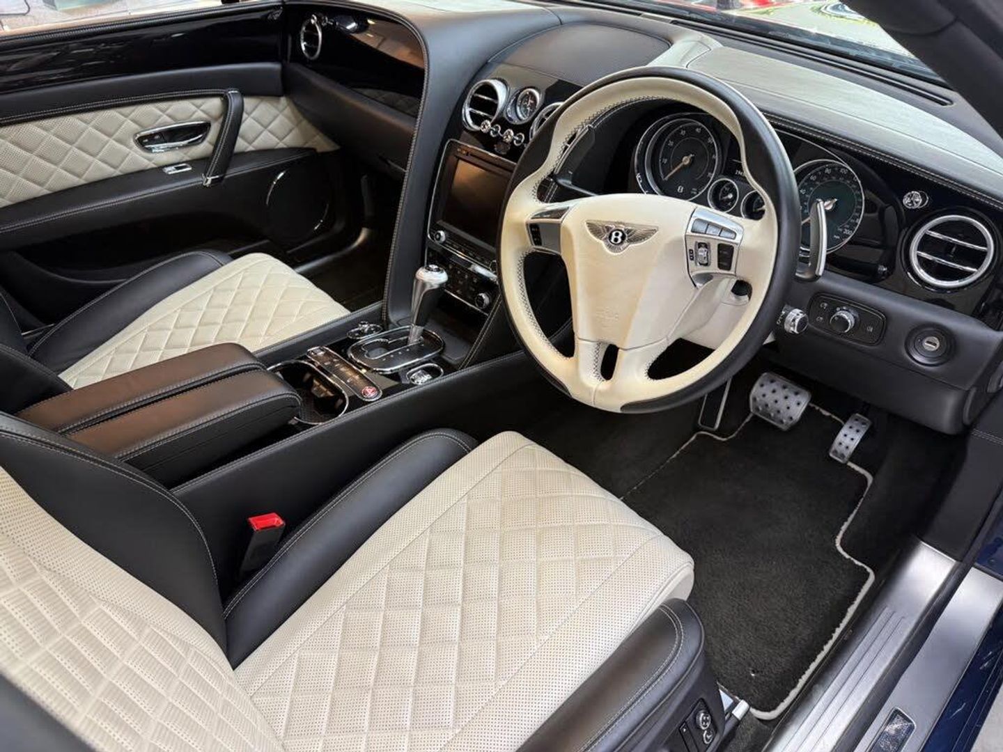 12v x 2 Power Points, 20in Alloy Wheels - Open Spoke - Painted, 4 Plus 1 Seat Configuration, 8 Channel and 8 Speaker Audio System, 8in High-Resolution Colour Screen to Display Infotainment and Vehicle Systems Information, ABS - Anti Lock Braking System, Acoustic Layer to Glass, Air Conditioning - Rear, Air Springs With Continuous Damping Control, Airbag - Driver, Airbag - Front Passenger Deactivation, Airbag - Front and Rear Thorax, Airbag - Passenger, B Chrome Wing Vent Detail on Black Grille, BMR - Balanced Mode Radiator Speakers, Bentley GPS Tracking System Provision, Bi-Xenon Projector Headlights, Black Winged B Badge to Radiator Shell Boot Lid and Wheel Centres, Boot Carpet in Beluga, Brake Pad Wear Indicator, Breitling Clock, Bright Chrome Radiator Matrix Grille, Bulls-Eyes Air Vents with Chrome Organ Stop Controls, CD/Radio, Carpets and Safety Belts to Match All Hides, Colour Specification, DAB Radio, Daytime Running Lights - LED, Diamond Quilted Hide Door Panels, Door Area Lighting in Lower Edge of Exterior Mirrors and Entrance Lighting in Lower Edge of Door, Door Mirrors - Colour Coded, Door Mirrors - Electronically Adjustable with Heating - Power Folding and Memory Functions, Driver Knee Airbag, EBD - Electronic Brake Force Distribution, ESP - Electronic Stability Programme, Electric Front and Rear Windows, Electric Tilt and Reach Adjustment Steering Column with Memory and Easy Entry and Exit Functions, Electronic Cruise Control, Electronic Parking Brake with Drive Away Assist, Engine Oil Filler - Bright B Cap, Engine Start/Stop Button, Footwell and Front and Rear Console Stowage Illumination, Front and Rear Curtain Airbags, HBA - Hydraulic Brake Assistance, Headlight Washer Jets, High Level Rear Brake Light, ISOFIX Rear Seat Fixings, Infotainment System Incorporating DVD Satellite Navigation and Hi-fi System with Rear Remote Control, Integrated HVAC Controls, Keyless Entry and Ignition, Knurled Sports Gear Lever, Leather Headlining, Lower Front Bumper Grille in Black with Chrome Wing Insert, Lowered Sports Suspension, MSR - Motor Slip Regulation, Main Beam Supplementation - LED, Multi-Function Steering Wheel, Multi-zone Automatic Climate Control System, NavTrak Provision, Non-Smokers Pack, Oval Chrome Exhaust Finisher, Park Distance Control - Graphic on Infotaintment Screen Works in Conjuntion with Audible Warning, Power Boot Opening and Closing, Power Latching to All Doors for Easy Entry/Exit, Rain Sensing Windscreen Wipers, Rear Centre Armrest with Leather-Lined Stowage Compartment, Rear Diffuser, Rear LED Fog and Reverse Lights Integrated into the Lower Bumper, Rear Lights with Elipse within an Elipse Effect Inner Light Treatment - LED, Seats - Driver and Passenger Front 14 Way Adjustment and Memory, Seats - Front and Rear Massage Function, Seats - Heated Front, Seats - Heated Rear, Seats - Lumbar Support for Front, Seats - Lumbar Support for Rear, Single SD Card Slot, Speed Sensitive Power Steering, Standard Brakes with Red Calipers, Steel Monocoque Body Structure with Front and Rear Energy-Absorbing Crumple Zones, Steering Column Mounted Gear Selectors, Steering Wheel - Sports Single Tone - 3 Spoke Hide Trimmed, TPMS - Electronic Tyre Pressure Monitoring System, Telephone System with Bluetooth Wireless Connectivity, Telephone Voice Dialling, Tread-Plates with Build Plaque Insert, Twilight Sensor Control and Tunnel Detection for Lighting, Twin Cup Holders, Twin Rifled Oval Stainless Steel Tailpipes, Veneer - Piano Black, Volumetric Ultrasonic Alarm, Wheel Bolts with Thatcham Security Bolt, 21in Alloy Wheels - Directional Sports - Black, Rear View Camera, Jewel Fuel and Oil Filler Caps, LED Approach Lamps, Privacy Glass to Rear Screen and Rear Side Windows, Deep Pile Carpet Overmats - Front and Rear, Diamond Quilted Hide to Seats - Linen, Drilled Alloy Sports Foot Pedals, Electrically Operated Blinds for Rear Side Windows, Storage Case to Centre Console, Twin Front Armrests, Dark Tint Front and Rear Lights, Paint