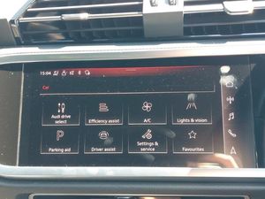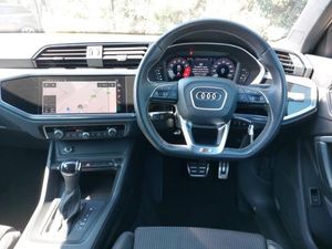 MMI Navigation Plus with high resolution 10.1 inch touchscreen colour display, Audi Virtual Cockpit - 10.25" display, Power operated tailgate, Audi drive select, Audi lane departure warning, Audi smartphone interface includes wireless Apple carplay/Android Auto, Camera based traffic sign recognition, Start stop system with recuperation, Amazon alexa Integration, 48V Mild hybrid technology, DAB digital radio module, 2 USB-C ports with charge and data functions, Electrically folding, adjustable and heated door mirrors with integrated LED side indicators and kerb view function for passenger side, LED headlights with LED daytime running lights and dynamic rear indicator, LED rear lights, Privacy glass dark tinted rear and rear-side windows (from B-pillar backwards), Rain and light sensors, S line bumpers in contrasting Manhattan grey, Dual zone electronic climate control, ISOFIX child seat mounting for front passenger with airbag deactivation and outer rear seat including top tether attachment point for outer rear seats, Black styling pack - Q3, Hill hold assist, Tyre pressure warning, Front and rear electric windows, Anti theft alarm, Remote central locking