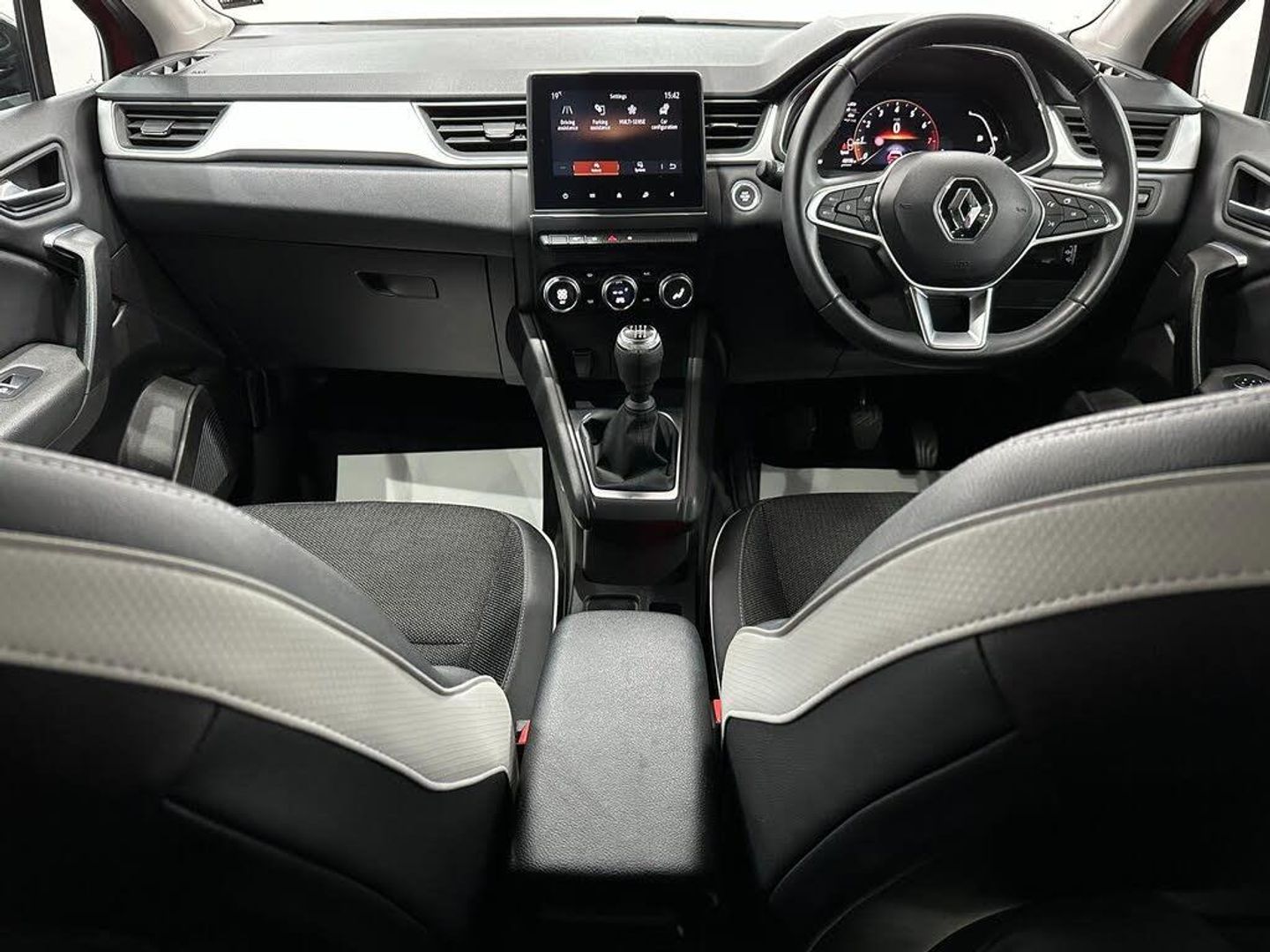 18in Alloy Wheels - Pasadena - Diamond Cut with Grey Insert, 2 Front Reading Lights LED and Central Rear Roof Light with 3 Reading Lights LED, 2 Reverse Gear LED Lamps and 1 Rear LED Fog Lamp in Bumper, 7in TFT Driver Information Display, ABS with EBA - Emergency Brake Assist, AEBS - Active Emergency Braking System, Airbags - Deactivation - Front and Side - Driver and Passenger, Airbags - Driver and Front Passenger - Side - Head and Curtain, Anti Drill Door Locks and Locking Fuel Cap, Auto Dimming Rear View Mirror, Automatic Air Conditioning with One Touch Quick Demist Function and Air Quality Regulator, Automatic Headlights, Automatic Windscreen Wipers with Rain Sensors, Black Side Door Protection with Chrome Insert, Black Soft Touch Dashboard, Bluetooth - DAB Radio and USB Ports, C-Shaped LED Front and Rear Lighting Signature with 3D Effect on the Rear Lights, Central Console with Storage, Central Door Locking, Chrome Around Front Air Deflectors - Front Wing Deco Element and Window Lining, Cruise Control with Speed Limiter, Daytime Running Lights, Deadlocking, Distance Warning Alert, Driver Seat Belt Height Adjustable, ECO Mode Function, ESC - Electronic Stability Control, Easy Link Navigation with 7in Touchcreen, Electric Windows - Front With Driver One Touch Facility and Anti-Pinch Function, Electric Windows - Rear, Electronic Parking Brake with Auto-Hold Function, Extra Tinted Windows - Rear and Tailgate, Front Grille with Chrome on Upper Part, Front Passenger Height Adjustment Seat, Front and Rear No Seatbelt Warning Sound, Full LED Headlights, Gear Change Indicator, HSA - Hill Start Assist, Hands Free Keycard - Keyless Access and Start, Headlights - Automatic High-Low Beam, Heating System with Pollen Filter, ISOFIX Child Seat Fixing Points on Rear Outermost Seats, LDW - Lane Departure Warning, LED Turn Indicators in Side Wing Mirrors, LKA - Lane Keep Assist, Longitudinal Roof Bars, MULTI-SENSE - 3 Driving Modes and 8 Ambient Lighting, Modular Boot Floor, Parking Sensors - Front and Rear, Rear Air Vents, Rear Door and Window Child Locking Function - Front Driver Door Control Panel for Rear Door, Rear LED Fog Lights, Rear Seats - 1-3 2-3 Foldable Sliding Bench, Rear-View Camera, Renault Automatic Emergency Assist - E-Call, Seats - Drivers Height Adjustment, Shark Fin Antenna, Skid Plates - Front and Rear - Grey, Smartphone Integration with Apple CarPlay and Android Auto, Steering Wheel - Height and Reach Adjustable, Steering Wheel - Synthetic Leather, Traffic Sign Recognition with Overspeed Prevention, Trip Computer, Tyre Inflation Kit, Tyre Pressure Warning Light, Variable Power Assisted Steering - Electrical, Windscreen Wipers - Rear, Wireless Phone Charger, Synthetic Leather-Cloth - Black and Grey with Grey Stitching