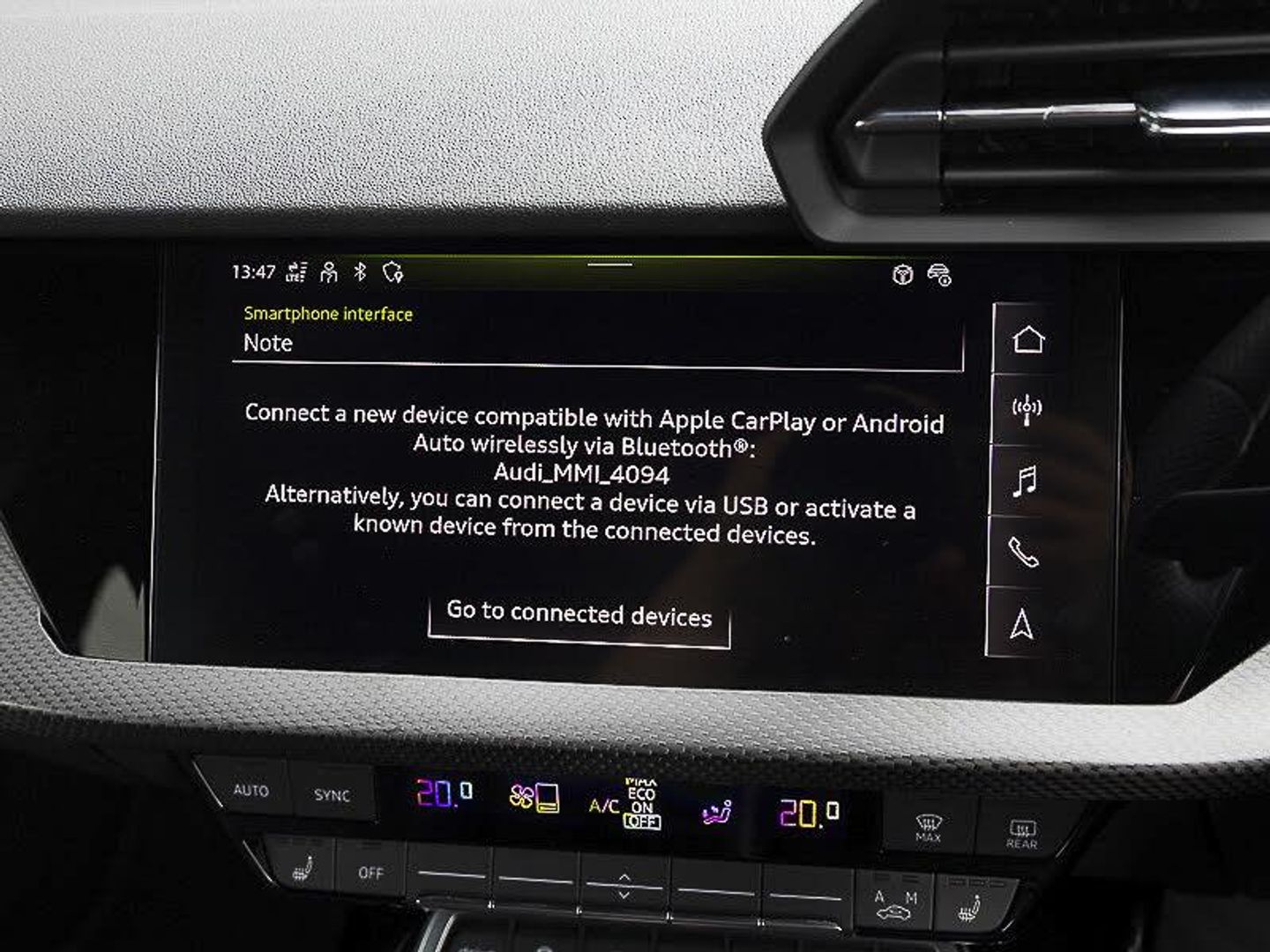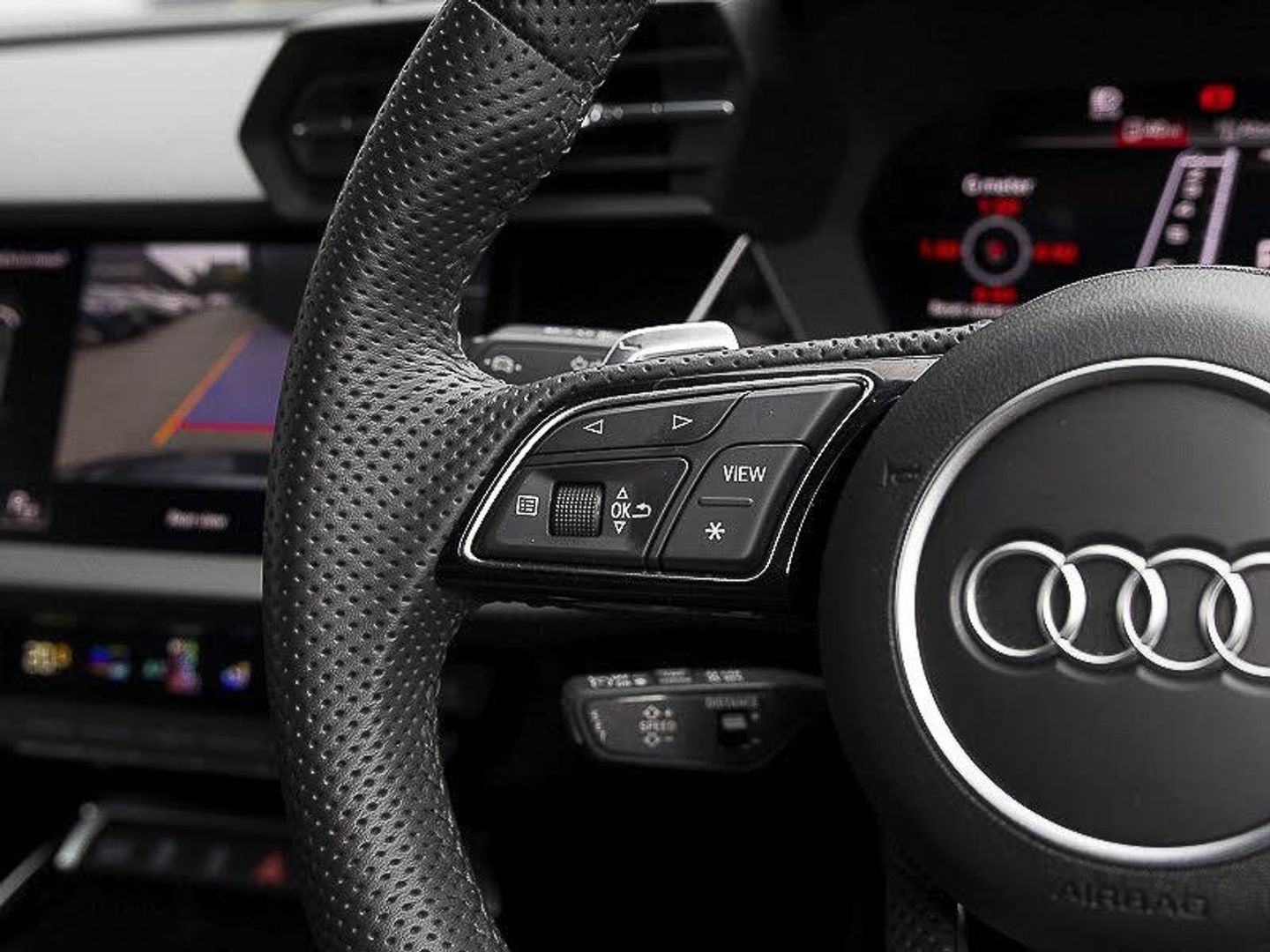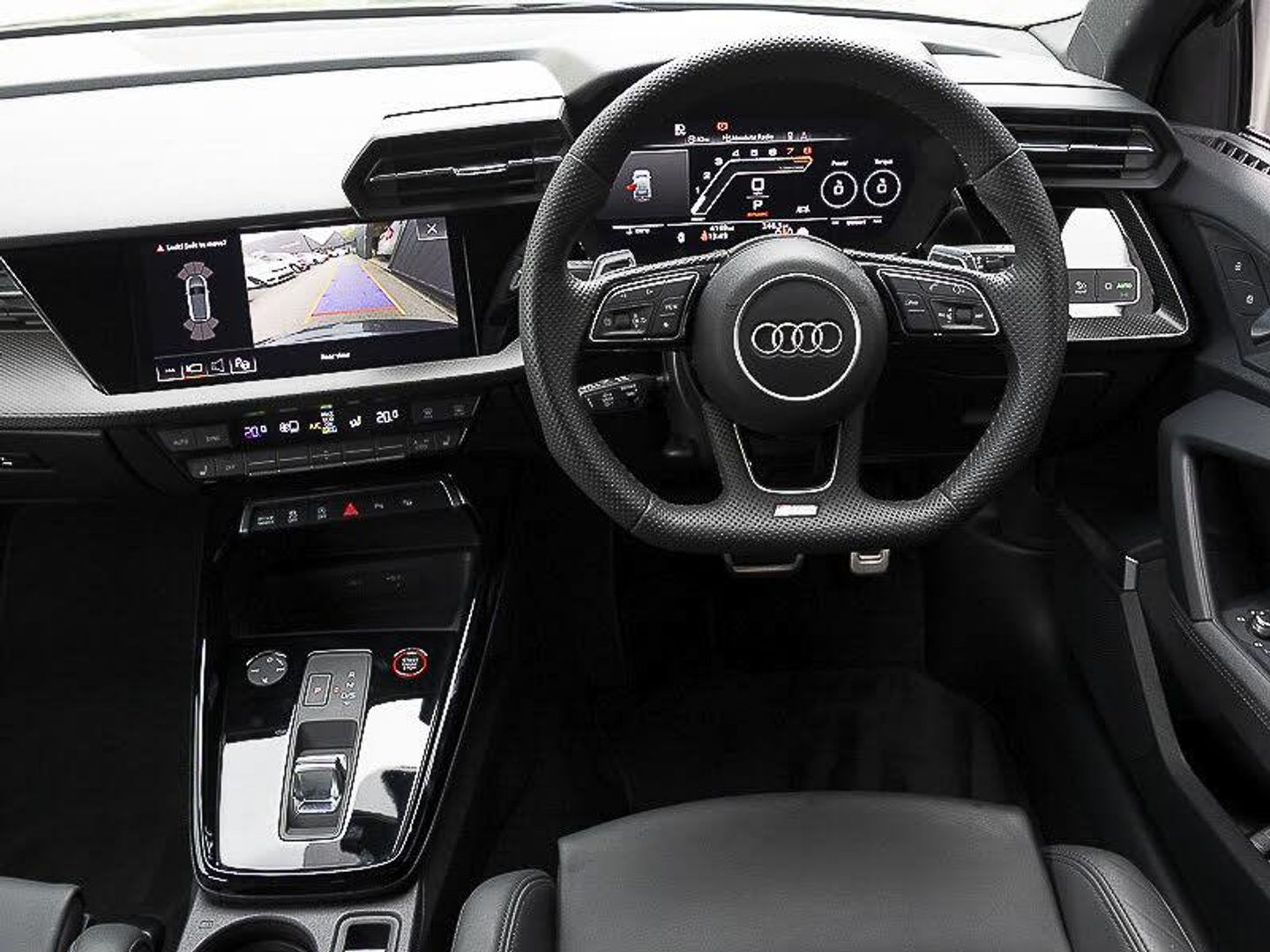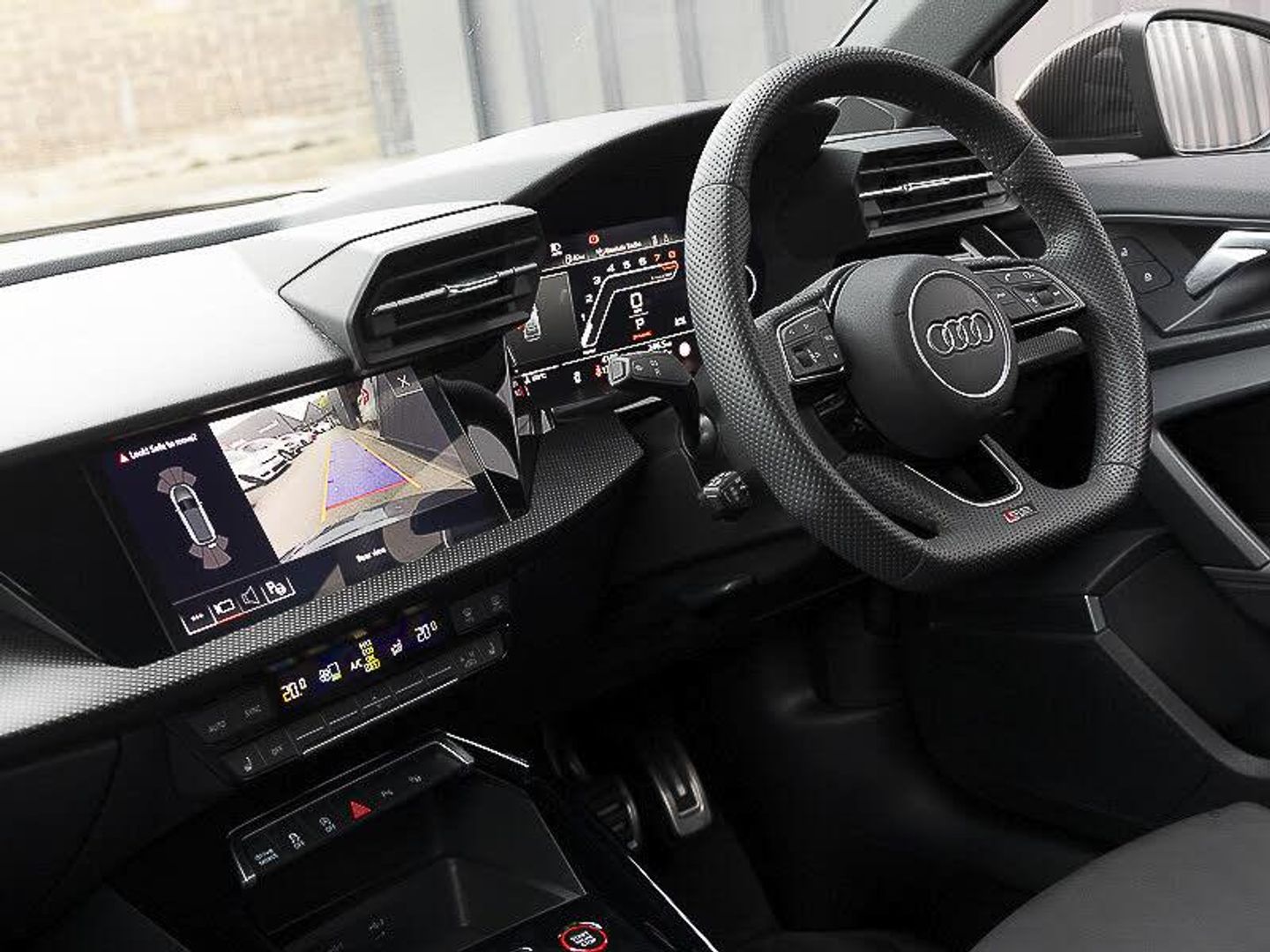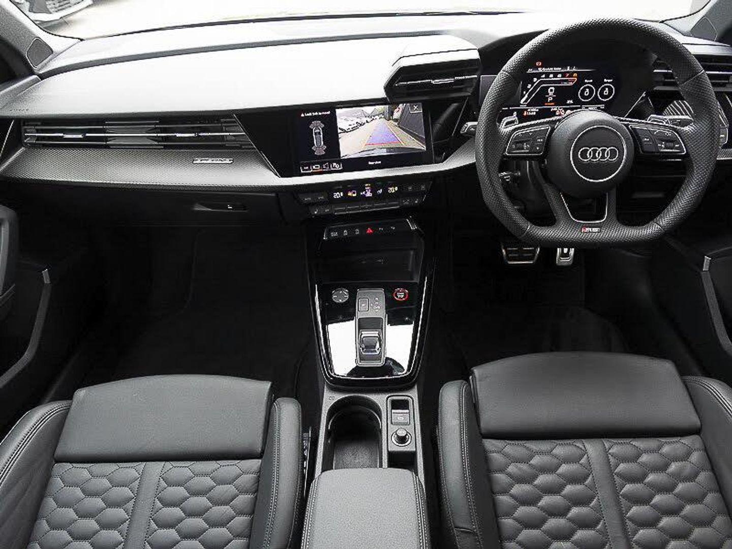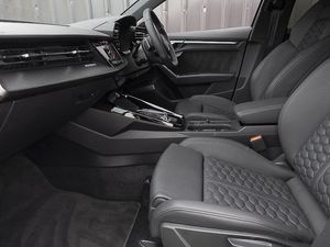 Audi virtual cockpit with RS specific display 12.3" full colour digital instrument cluster, LUXE Collection, Parking assist with parking system plus, Lane departure warning system, Heated front seats, Audi smartphone interface, RS sports exhaust system, RS exterior features in gloss black, Bluetooth interface, Quattro permanent four wheel drive, Carbon roof spoiler, Carbon fibre engine cover, Carbon exterior door mirror, Honeycomb stitching and RS embossing, Dual zone electronic climate control, Ambient lighting pack - RS3, Aluminium interior elements pack - RS3, MMI navigation plus with MMI touch - RS3, RS bodystyling - RS3, Storage Pack - RS3, Carbon inlays, accent surfaces in the dashboard and centre console in platinum grey silk effect paint finish, Audi beam uses LEDs to project the Audi sport logo onto the ground as you exit your RS 3, 19" 5 Y spoke matt black alloy wheels