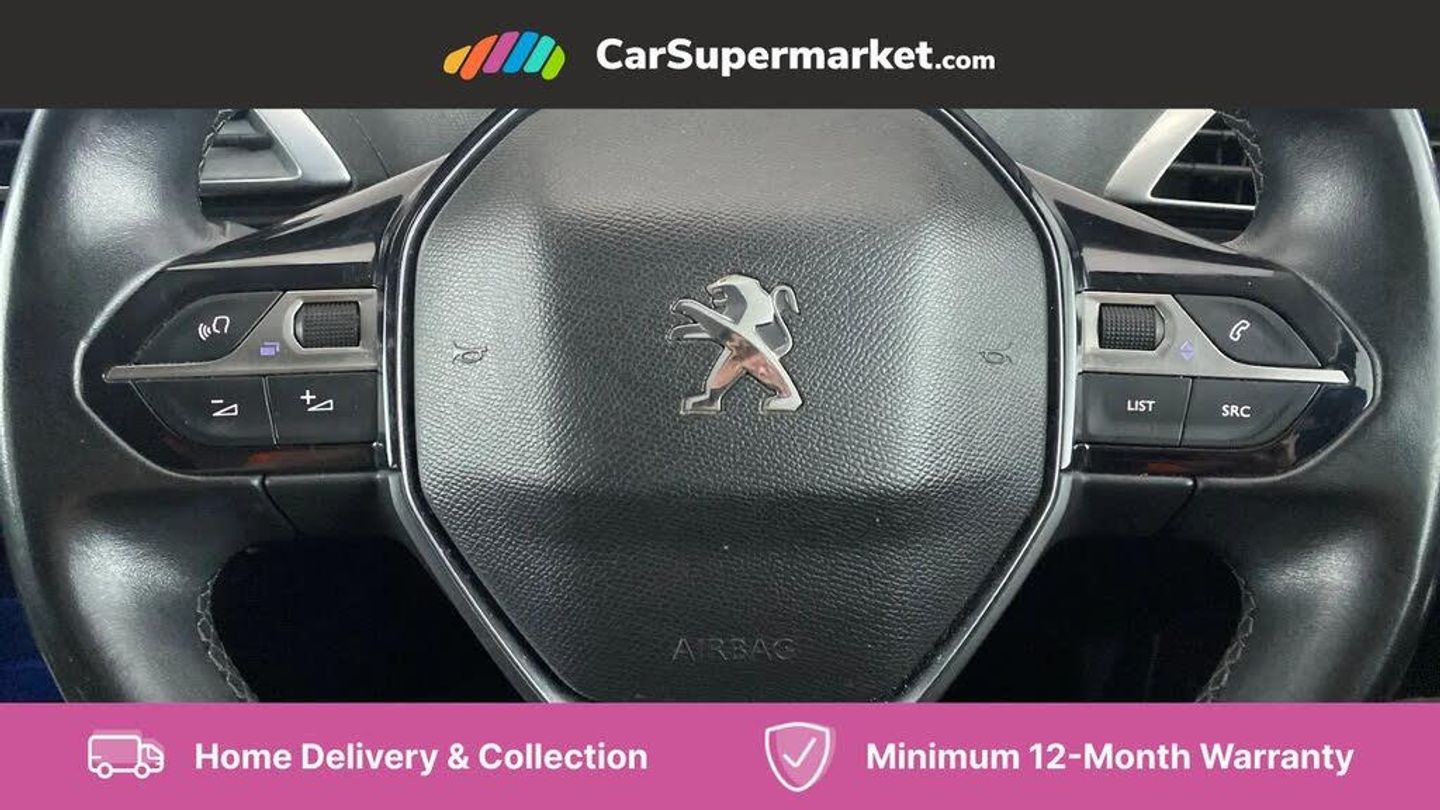 3D connected navigation with 10" HD touchscreen + voice recognition system,Bluetooth telephone facility,Driver attention alert system,Extended traffic sign recognition,Exterior temperature indicator with ice warning,Front parking sensors,Lane departure warning system,Mirror screen with mirror link, apple carplay and android auto,Multi function trip computer,PEUGEOT i-Cockpit with 8.0" capacitive touchscreen in centre console,Peugeot i-cockpit with compact multi-function sports steering wheel,PEUGEOT i-Cockpit with configurable 12.3" Head-up digital instrument panel,PEUGEOT SOS and assistance,Programmable cruise control and speed limiter,Rear parking aid,Speed limit recognition and recommendation,Dynamic stability control and electronic anti-skid system,Stop/start function,6 speakers radio with mp3 compatible,DAB Digital radio,USB socket,Aluminium longitudinal roof bars,Automatic hazard light activation upon heavy brake application,Automatic triggered rear windscreen wiper in reverse gear,Black rubber side window trim,Body colour door handles,Body colour door mirror shells,Body colour rear roof spoiler with stainless steel edging trim,Body protectors (bottom of front and rear bumpers + wheel arches + protection at bottom of doors) in black,Chrome front wing trim,Chrome rear bumper facia,Dark tinted rear side windows + tailgate window,Eco LED headlights,Electric operated/heated door mirrors,Front and rear door and sill protectors with polished stainless steel insert,Front windscreen wiper with magic wash cleaning system,Gloss black B and C pillar and aerodynamic deflector trim,Gloss black front bumper air scoops,Gloss black rear cluster connecting strip,Headlights left on audible warning,Heated rear windscreen with integrated antenna,LED daytime running lights,LED rear number plate lighting,LED side indicator lights integrated into door mirrors,LED third brake light,One touch electric front/rear windows with pinch protection,Power folding door mirrors with blind spot detection indicator and auto dipping function in reverse gear,Radiator grille in chrome edge trim and facets,Rear LED Peugeot signature 'Claw Effect' lights,Rear side wing doors,Stainless steel roof arches,1/3 to 2/3 split folding rear seats,12V Sockets in dashboard, rear cabin and load area,2 cupholders in front centre console,2x Rear coat hooks,3x Isofix child seat fittings in the front passenger and outer rear seats,4 Grab handles retractable and damped,Blue ambient lighting for connecting zone,Blue ambient lighting to front door panels, central storage and cupholders,Brumeo fabric trimmed door armrests,Centre front armrest with butterfly wing opening and illuminated storage compartment,Dual zone automatic climate control,Electric power steering with reach and rake adjustable steering column,Flocked glovebox interior,Foldable front passenger seat,Footwell illumination,Front interior light with 2 reading spotlights and rear interior light with timer,Front seat back map pockets,Gear shift indicator,Height adjustable front seats,Illuminated glovebox,Individual left and right controls in boot for seat folding,Leather steering wheel with detail stitch,LED interior lighting in storage spaces and load area,Rear bench seat with central armrest and ski hatch,Rear centre console ventilation system,Roof lining - Salin light grey,Satin chrome dashboard trim,Satin chrome digital instrument panel and touchscreen trim,Satin chrome front door panel recess trim,Satin chrome interior door handles,Satin chrome scorpion's tail and toggle switch trim,Seatbelt not fastened audible and visual alert for front seats,Seatbelt unfastened on the move audible and visual alert for front and rear seats,Sunvisors with illuminated vanity mirrors,Two position boot floor,Safety pack with emergency braking system - 3008,Safety plus pack with high beam assist - 3008,Visibility pack - 3008,3x Rear three-point retractable seatbelts with force limiters in the outer rear seats,ABS (Anti-lock Braking System) with EBD (Electronic Brakeforce Distribution) and EBA (Emergency Braking Assistance),Adaptive driver and front passenger airbags with passenger airbag deactivation function,Driver and front passenger side airbags,Electric child locking functionality on rear windows and doors,Electric parking brake,Front and rear curtain airbags,Front optimised safety headrests and 3 x rear retractable headrests with height adjustable,Front three point retractable seatbelts with pre tensioners and force limiters,Front ventilated disc brakes and rear disc brakes,Hill start assist,Two tone horn,Automatic door locking when moving off,Electronic immobiliser,Perimetric and volumetric alarm with lift and tilt sensor,Peugeot Open and Go System,Brumeo fabric Dashboard, front and rear door panel finish,Puncture repair kit including compressor, sealant cartridge and towing eye