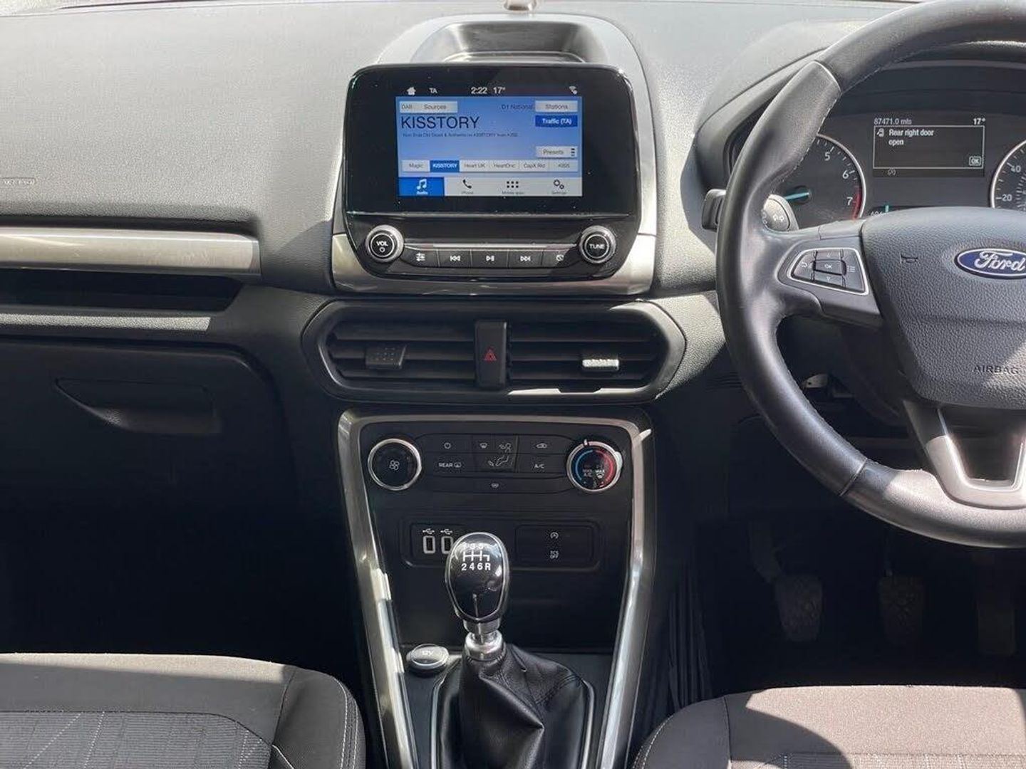 16in Alloy Wheels - 5 Spoke Magnetic Low Gloss Paint, Adjustable Boot Load Floor, Airbags - Curtain, Airbags - Driver and Front Passenger, Airbags - Drivers Knee, Airbags - Front Passenger De-Activation Switch, Alarm - Thatcham Category 1 with Volume Sensing and Perimeter, Analogue Instrument Cluster, Anti-Lock Braking System - ABS with Electronic Stability Control - ESC, Centre Console with Cup Holder, Child Locks, Chrome Headlight Bezel, Courtesy Light - Front with Two Map Lights, Courtesy Light - Rear, Door Frame Beltline - Black, Door Handles - Body Colour, Door Mirrors - Electrically Operated and Heated, Driver Seat Manual Height- Fore/Aft and Seatback Angle Adjustment and Recliner, Driver Seat Manual Rotary Knob Lumbar Support Adjustment, Driver and Passengers Sun Visor with Covered Vanity Mirror and Ticket Strip on Drivers Side, Drivers Stowage Glovebox, EPAS - Electric Power Assisted Steering, Electric Windows - Front and Rear with One Touch Drivers, Emergency Assistance, Engine Immobiliser, Ford DAB Radio with Ford SYNC3 - Apple Car Play and Android Auto, Ford Easy Fuel - Capless Refuelling System, Front 2-Way Head Restraints, Front Fog Lights, Front Grille - Chrome, Front Seat - Passenger Manual - Fore-Aft and Recline Adjustment, Front Seats - 3 Point Seat Belts with Load Limiter and Seatbelt Height Adjust, Front Seats - Seat-Back Map Pockets, Front Suspension - Independent with MacPherson Struts and Anti-Roll Bar, Front and Rear Bumper - Body Colour with Dark Insert, Front and Rear Floor Mats, Front and Rear Folding Grab Handles, Front and Rear Power Points - 12V, Full Length Overhead Console with Sunglasses Holder, Gear Shift Indicator, Gearshift Knob - Black Insert and Chrome-Finish Ring, Glovebox with Cool Bin - Lid and Illumination, Halogen Headlamps with LED Day Running Lights, Halogen Rear Lights, Handbrake Grip - Leather-Trimmed, Headlights - Courtesy Delay, Headlights - Levelling Control, High Mounted Brake Light, IPS - Intelligent Protection System, Load Compartment - Lights, Load Compartment Carpet, Load Compartment Side Trim Incorporating Shopping Hooks, Low Level Centre Console, Lower Body Side - Door Claddings - Black, Manual Air Conditioning, Manual Dimming Rear-View Mirror, Manual Parking Brake, MyKey, Quickclear Heated Front Windscreen with Heated Washer Jets, Rear Seat - Fold and Tumble 60-40 Split - Split Back, Rear Seats - Centre Head Restraint - Up-Down, Rear Seats - Retractable Rear Seat Belt - 3-Point All Positions, Rear Suspension - Semi-Independent Twist Beam with Twin Gas and Oil-Filled Shock Absorbers, Remote Central Locking, Rocker Panel and Side Cladding - Black, Seat Belt Reminder System - Drivers and Front Passengers, Seats - ISOFIX Mounting Provision for Child Seats - Outer Seats Only, Side Impact Door Beams, Soft Instrument Panel Cover, Steering Column - Rake and Reach Adjustment, Steering Wheel - Leather-Trimmed with Chrome Inserts, Storage - Front Passenger Underseat Area, Suspension - Front Stabiliser Bar, Tie-Down Hooks, Trip Computer, Tyre Pressure Monitoring System, Tyre Repair Kit, Wiper - Intermittent Rear Wash-Wipe, Wipers - Front Variable Intermittent