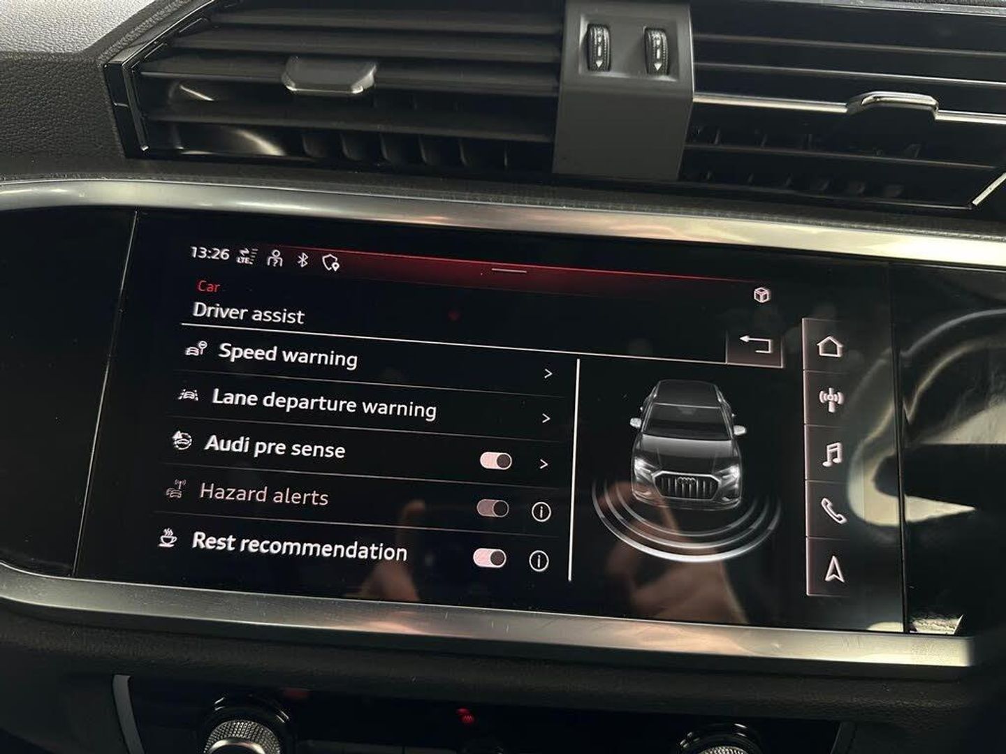 1 x USB-C and 1 x USB-A Port with Charge and Data Functions, 19in Alloy Wheels - 7.0J 5-Twin-Spoke - Dynamic Design, 3-Spoke Leather Multi-Function Steering Wheel - S Badging and Grips in Perforated Leather with Contrast Stitching, 6 Passive Loud Speakers, 6-Airbag System, Adjustable Rear Seat Bench-Backrest with Centre Armrest and Cupholder, Aluminium Look Interior Elements, Aluminium Roof Rails, Aluminium Window Trims, Ambient Lighting Pack, Anti Theft Locking Wheel Bolts, Anti-Theft Alarm, Audi Connect Infotainment Services Plus - 3 Year Subscription, Audi Connect Safety and Service - e-call, Audi Drive Select, Audi Pre-Sense Basic, Audi Pre-Sense Front with Pedestrian and Cyclist Recognition, Audi Side Assist, Audi Smartphone Interface includes Wireless Apple CarPlay, Audi Virtual Cockpit - 10.25in Display, Auto Dimming and Frameless Rear View Mirror, B and C-Pillar Trim in High-Gloss Black, Bluetooth Interface, Body Coloured Door Mirrors, Bumpers in Full Body Colour Paint Finish, Camera-Based Traffic Sign Recognition, Cloth Headlining in Black, Cruise Control System with Speed Limiter, DAB Digital Radio, Detail in Dashboard Around the MMI Touch Colour Display in Glass Look - Black with Surround in Aluminium Look, Door Mirrors - Electrically Folding - Adjustable and Heated with Integrated LED Side Indicators and Kerb-view Function for Passenger Side, Dual-Zone Electronic Climate Control, ESC - Electronic Stabilisation Control inc ABS - ASR and EDL, Electric Windows - Front, Electromechanical Parking Brake, First Aid Kit and Warning Triangle, Frame of Front Side Air Inlets in Platinum Grey - Matt, Front Centre Armrest, Front Spoiler Blade in Platinum Grey - Matt, Front and Rear Floor Mats in Black with Contrast Stitching in Rock Grey, Gear Knob in Perforated Leather, Grille Surround in Silver - Chrome, Grille Vertical Bars in Aluminium Silver - Matt, Hill Descent Control, Hill Hold Assist, ISOFIX Child Seat Mounting for the Front Passenger Seat with Front Passenger Airbag Deactivation and ISOFIX Child Seat Mounting and Top Tether for the Outer Rear Seats, Illuminated Door Sill Trims with S Logo, Inlays - Matt Brushed Aluminium - Dark, Interior Lighting, LED Headlights with LED Daytime Running Lights and Dynamic Rear Indicator, LED Rear Lights, Lane Departure Warning, Leatherette Door Armrests, Light and Rain Sensor, Luggage Compartment Sill Protection in Stainless Steel, MMI Navigation Plus with High Resolution 10.1in Touchscreen Colour Display, Manually Adjustable Front Seats, Non-Smoking Package, Pedals in Stainless Steel, Power Operated Tailgate, Privacy Glass - Dark-Tinted Rear and Rear-Side Windows - From B-Pillar Backwards, Progressive Steering, Radiator Grille - Titanium Black, Rear Diffuser in Titanium Black Matt, Rear Parking Sensors, S Line Badges on the Front Wings, S line Front and Rear Bumpers and Side Skirts, Seat Belt Monitoring, Side Skirt Insert in Platinum Grey - Matt, Sport Suspension, Tool Kit, Tyre Pressure Warning Light, Tyre Repair Kit, Voice Control System with Natural Language Interaction, Windscreen in Acoustic Glazing