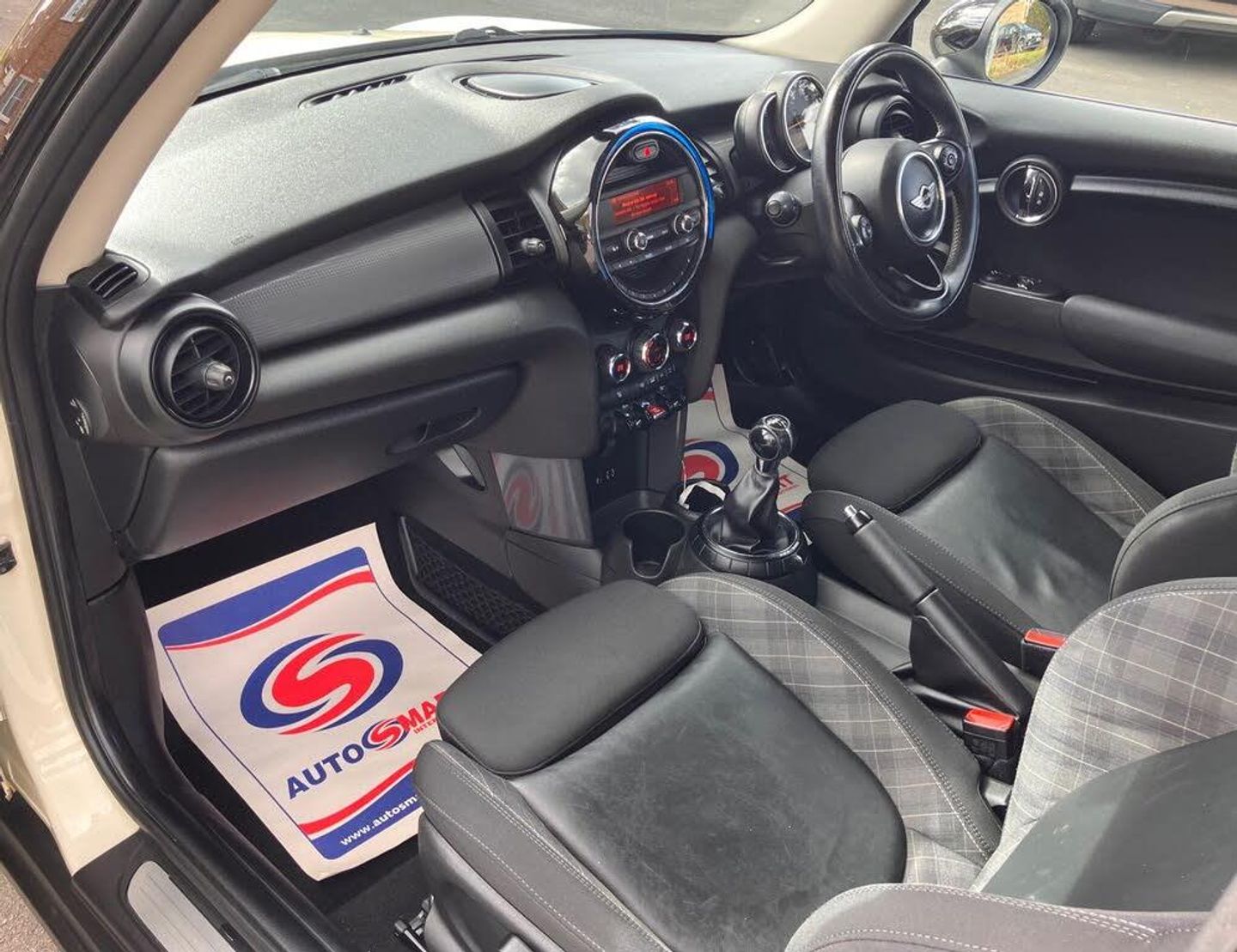 15in Alloy Wheels - Heli in Silver, 3rd Brake Light, ASC+T - Automatic Stability Control and Traction, Air Conditioning - Manual, Airbags - Driver, Airbags - Front Passenger, Airbags - Front Passenger Deactivation Switch, Airbags - Front Side, Airbags - Head, Alarm - Thatcham CAT1, Anti-Lock Braking System - ABS, Bluetooth Hands Free Function with USB Audio, Brake Drying, Brake Force Display, Brake Pad Wear Indicator, CBC - Cornering Brake Control, Central Locking - Activated At 10mph, Central Locking - Remote, Child Seat ISOFIX Attachment, Crash Sensor - Unlocking Doors, Cupholders - Rear x2, Cupholders - Two in Front, DAB Tuner, DTC - Dynamic Traction Control, Daytime Driving Lights, Door Handles - Chrome Plated, Door Handles - Interior - Chrome Plated, Door Mirrors - Aspheric on Drivers Side, Door Mirrors - Electrically Adjustable and Heated, Dynamic Stability Control - DSC, EBD - Electronic Brake-Force Distribution, EDLC - Electronic Differential Lock Control, Electric Windows - Front - One Touch Up and Down, Foldable Rear Backrest and 50:50 Split, Front Fog Lights, Front Passenger ISOFIX, Gearshift-Selector Lever and Handrake Lever Gaiters in Sensatec, Halogen Lights for Low Beam and High Beam Headlights, Headlight - Beam-Throw Control Electrical with Manual Adjustment, Headlights - Chrome Bezels, Headlights - Follow Me Home, Headliner - Satellite Grey, Headrests For All Seats - Manually Adjustable, Heated Front Windscreen Washer Jets, Hill Assist, Interior Trim - Hazy Grey, Lashing Eyes in Luggage Compartment, MINI Central Display with Illuminated Ring, MINI Mobility System, Microfilter, Non Smoker Package, On-Board Computer, Radiator Grille - Aluminium, Radio with Four-Line Display, Rear Passenger ISOFIX, Roof Spoiler Painted in Roof Colour, Seats - Easy Entry Access & Memory Function for Driver, Seats - Height Adjustable Drivers, Seats - Height Adjustable Passengers, Security Locking Wheel Bolts, Servotronic Power Steering, Start-Stop Button with Keyless Start, Steering Column Height and Length Adjustment, Steering Wheel - 2-Spoke Plastic, Sun Visors with Integrated Vanity Mirrors, TPWS - Tyre Pressure Warning System, Tool Kit in Luggage Compartment, CHILI Pack, Air Conditioning - Automatic Dual Zone, Multifunction Controls for Steering Wheel, MINI Driving Modes, 3-Spoke Sport Leather Steering Wheel, MINI Excitement Pack, Storage Compartment Pack, Interior Light Pack, Rain Sensor and Automatic Headlight Activation, White Direction Indicators Lights, Diamond Cloth-Leather - Carbon Black - Carbon Black, Colour Line - Carbon Black, Roof and Mirror Caps - Black, 16in Alloy Wheels - Victory Spoke in Black