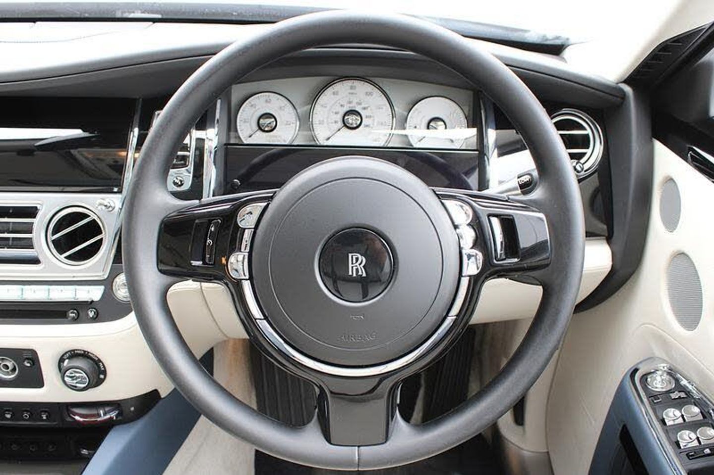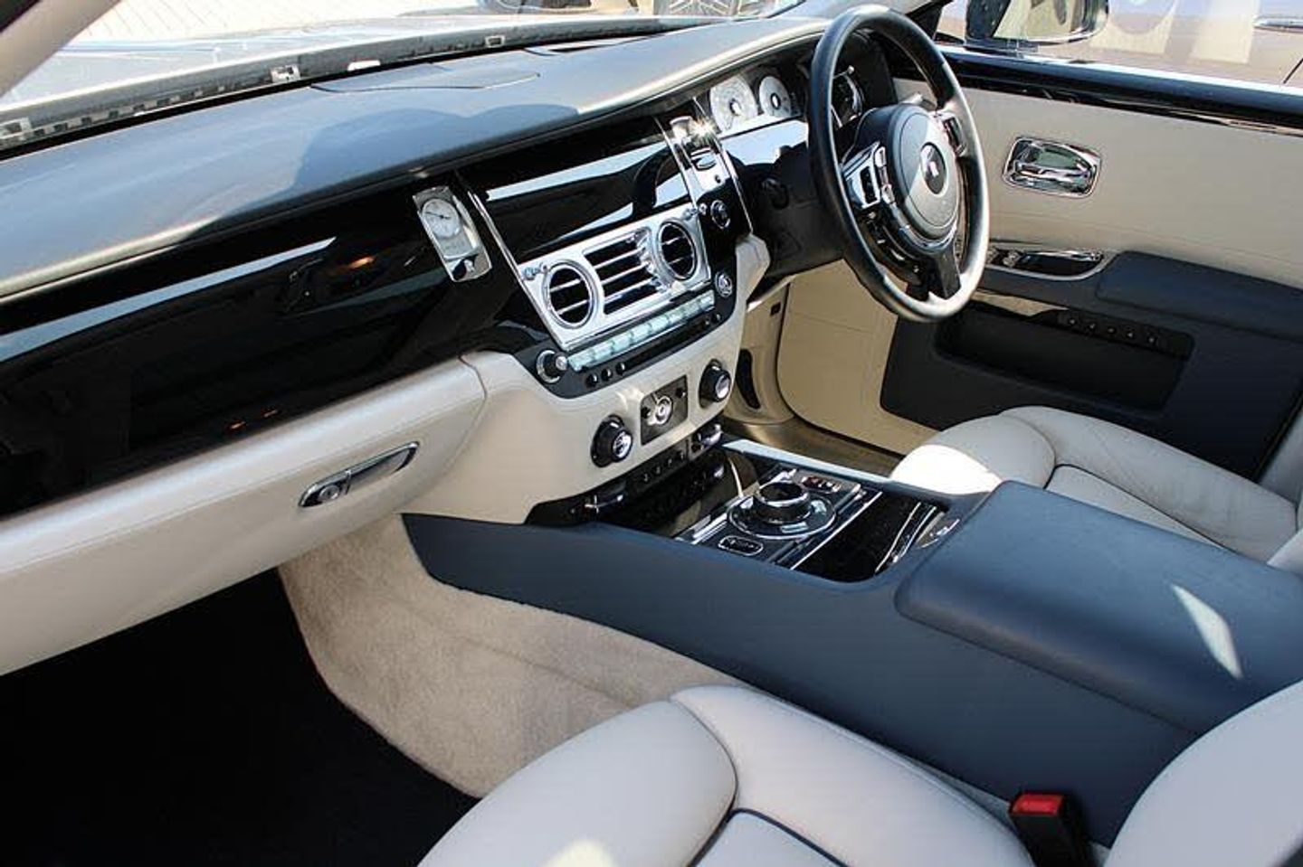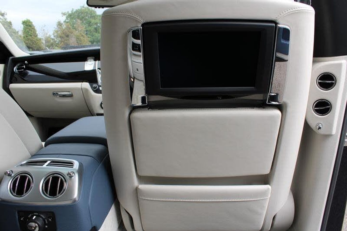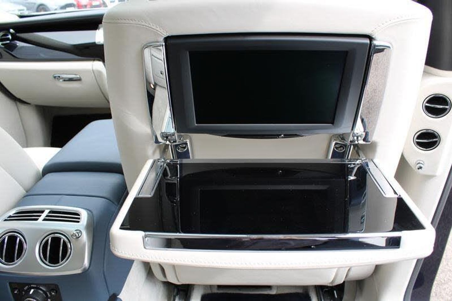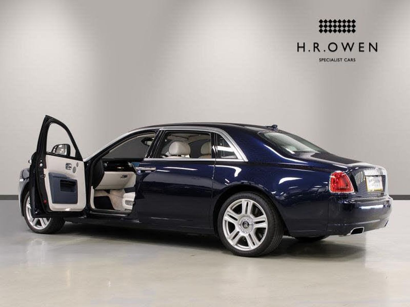 Exterior- Midnight Sapphire with factory Silver Satin Bonnet, Panorama Sunroof. Interior- Seashell Hide Seats, Fleet Blue Contrast Stitching and Piping, Piano Black Veneers, RR monogram to all Headrests in Fleet Blue Stitching, Drivers Assistance Two, Rear Theatre Configuration, Individual Seat Configuration, Leather Headlining, Chrome Plated Individual Exhausts, Picnic Tables, Rear Compartment Coolbox, Television Tuner, Comfort Entry System, Up-lit Spirit of Ecstasy, Front and Rear Massage Seats, Universal Garage Door Opener, 21-Inch 5-Spoke Alloy Wheels