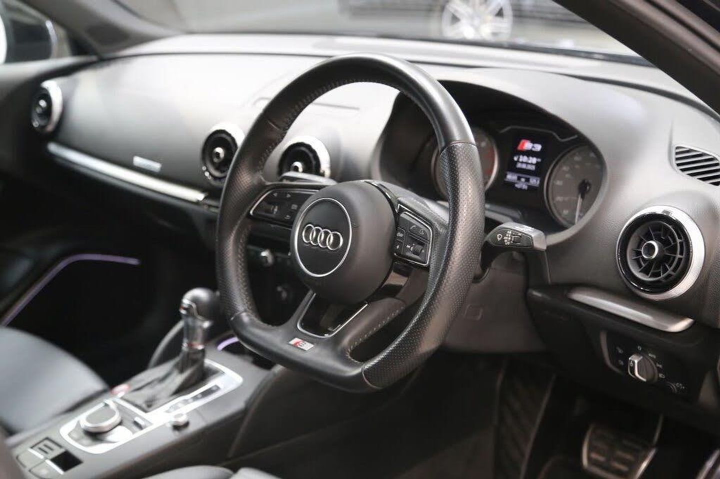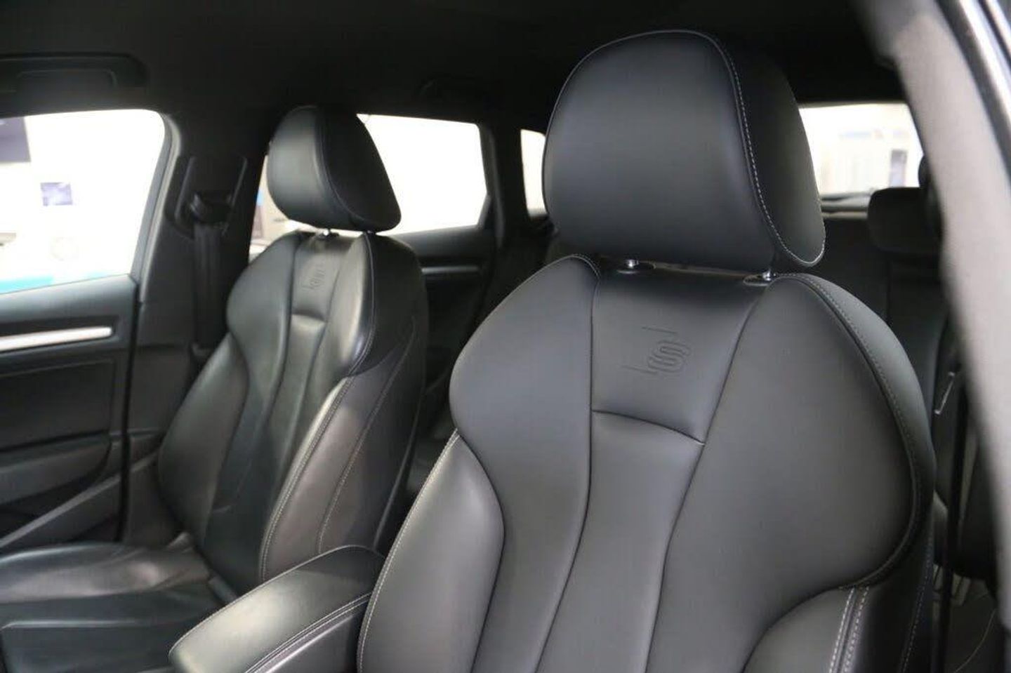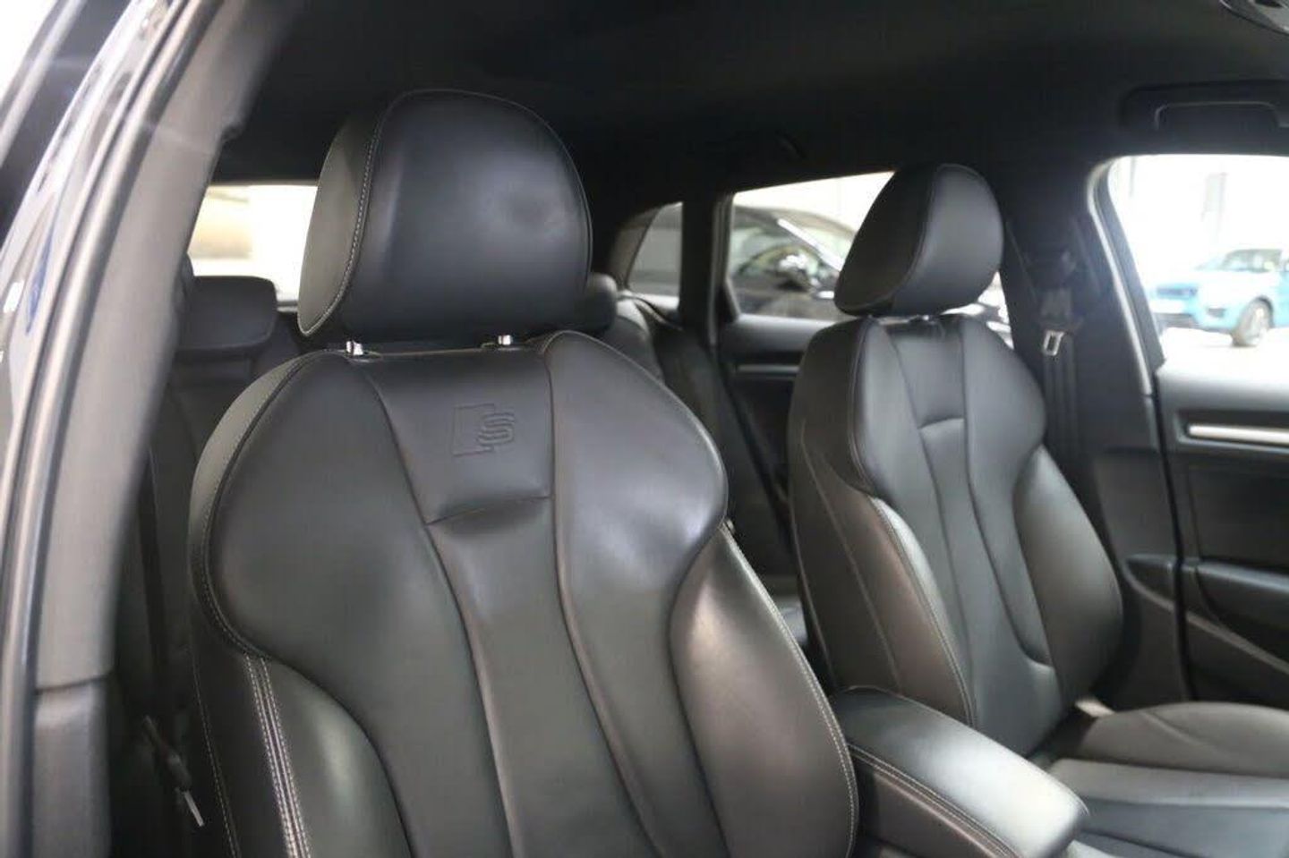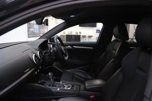 Mythos Black, Fine Nappa Leather - S Embossed Super Sports Seats - Rotor Grey with Anthracite Stitching, 18in Alloy Wheels - 5-Arm Turbine Design in Magnesium Look - Diamond Cut Finish, 2 x USB Charging Ports and 1 x AUX-IN, 6-Airbag System with Knee Airbag for Driver, Aluminium Interior Elements, Anti Theft Locking Wheel Bolts, Anti-Theft Alarm, Audi Beam, Audi Connect Infotainment Services - 3 Month Trial, Audi Drive Select, Audi Hill Hold Assist, Audi Smartphone Interface, Auto-Dimming Rear-View Mirror with Light and Rain Sensor, Bang and Olufsen Sound System, Black Styling Package, Bluetooth Interface, Brake Calipers Painted in Black with S3 Logo at the Front, CD Drive, Cloth Headlining in Black, Colour Drivers Information System - DIS, Cruise Control, DAB Digital Radio, Door Mirrors - Black Housing, Door Mirrors - Electrically Adjustable and Heated with Integrated LED Side Indicators, Dual-Zone Electronic Climate Control, ESC - Electronic Stabilisation Control inc ABS - ASR and EDL, Electric Windows - Front, Electromechanical Parking Brake, Email and Text Messages can be Displayed on your Vehicles MMI, Exhaust Tailpipe - Dual-Branch Oval Twin with Chrome Finish, First Aid Kit and Warning Triangle, Front Centre Armrest, Front and Rear Floor Mats, Headlights Washers, Heated Front Seats, Heated Windscreen Washer Jets, ISOFIX Child Seat Mounting and Top Tether, Illuminated Door Sill Trims with S Logo, Inlays - Matt Brushed Aluminium, Instrument Dials with S3 Logo, LED Headlights with LED Rear Lights and Dynamic Rear Indicators, LED Interior Light Package, Lashing Points in Luggage Compartment, MMI Navigation - SD Card Based, MMI Radio Plus with 7in Electrically Retractable Colour MMI Screen, Non-Smoking Package, Online Media Streaming - Audi MMI Connect App Required, Pedals in Stainless Steel, Privacy Glass, Progressive Steering, Rear Parking Sensors, Remote Central Locking with 2 Fold Away Keys, S Design Body Styling, S Sport Suspension, Seat Belt Monitoring, Space Saver Spare Wheel, Split Folding Rear Seat Bench - 60-40 or Fully, Steering Wheel - 3-Spoke Leather-Multifunction-Flat Bottomed-Shift Paddles, Storage Compartments in the Door Side Trims-Centre Console-Under Drivers Seat, Storage Package, Tool Kit and Car Jack, Tyre Pressure Warning Light