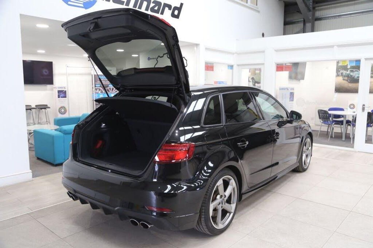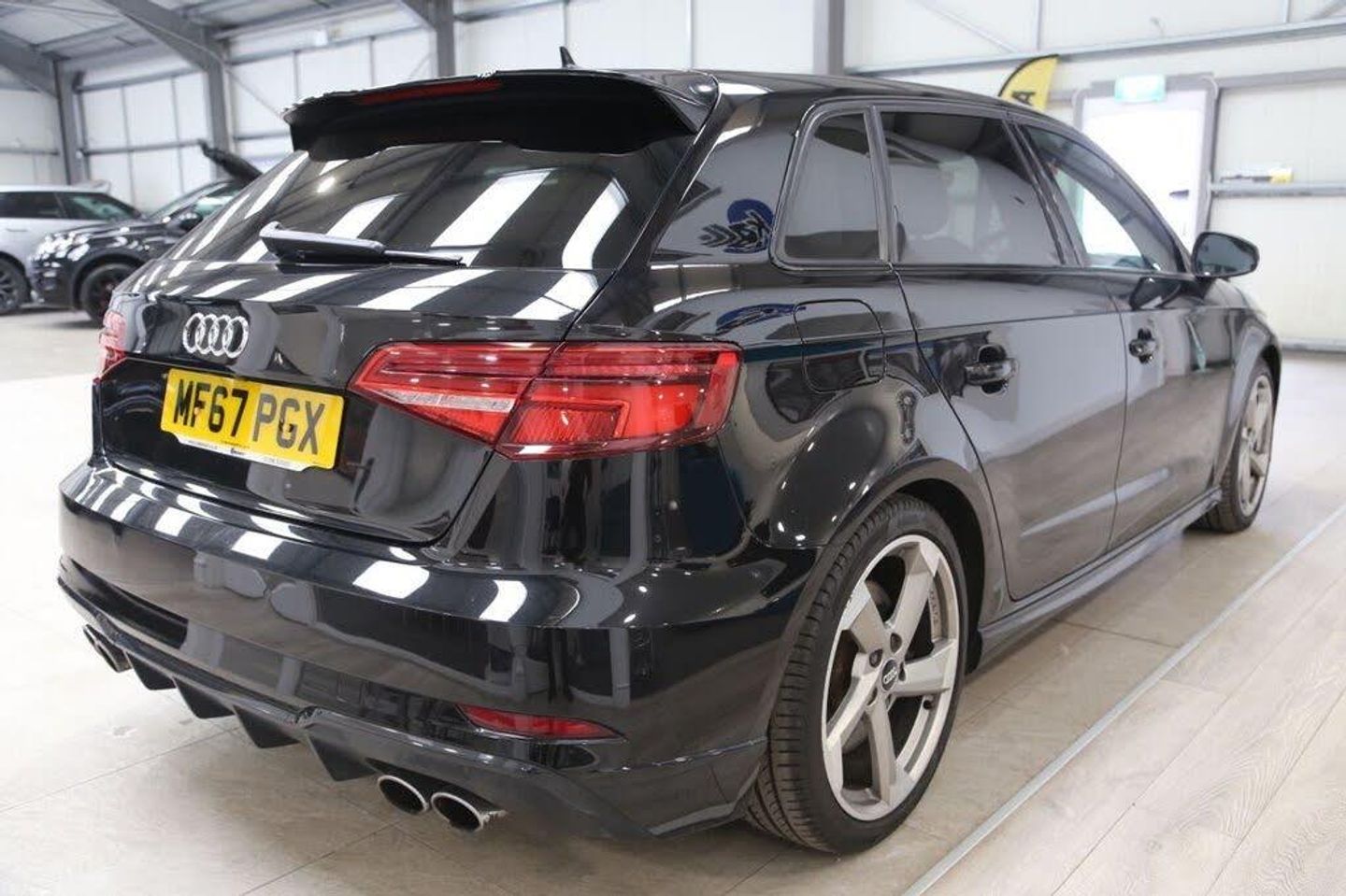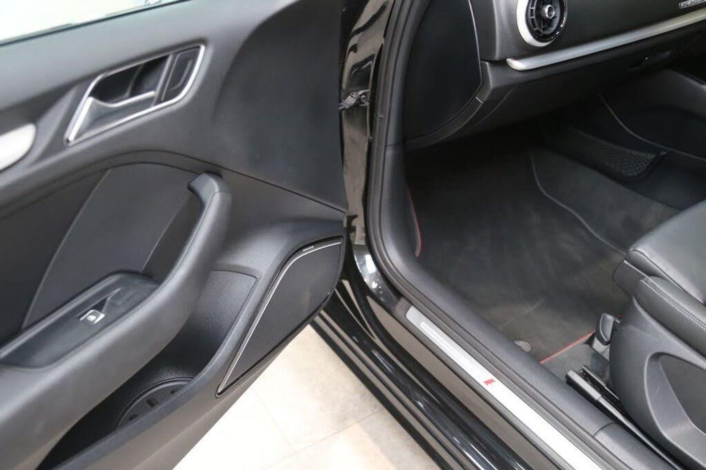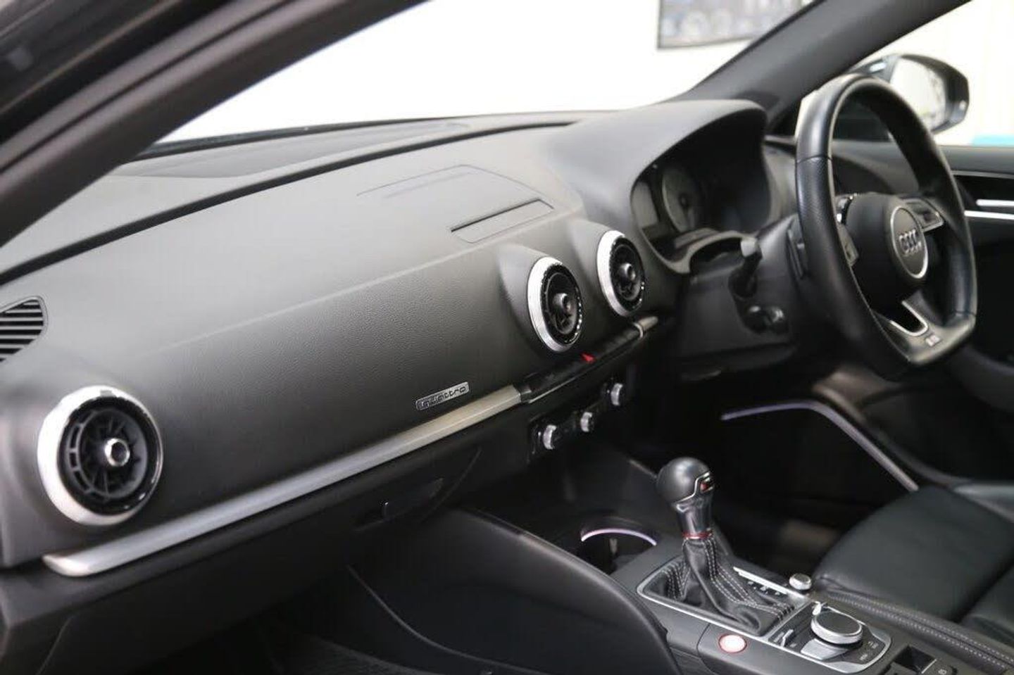 Mythos Black, Fine Nappa Leather - S Embossed Super Sports Seats - Rotor Grey with Anthracite Stitching, 18in Alloy Wheels - 5-Arm Turbine Design in Magnesium Look - Diamond Cut Finish, 2 x USB Charging Ports and 1 x AUX-IN, 6-Airbag System with Knee Airbag for Driver, Aluminium Interior Elements, Anti Theft Locking Wheel Bolts, Anti-Theft Alarm, Audi Beam, Audi Connect Infotainment Services - 3 Month Trial, Audi Drive Select, Audi Hill Hold Assist, Audi Smartphone Interface, Auto-Dimming Rear-View Mirror with Light and Rain Sensor, Bang and Olufsen Sound System, Black Styling Package, Bluetooth Interface, Brake Calipers Painted in Black with S3 Logo at the Front, CD Drive, Cloth Headlining in Black, Colour Drivers Information System - DIS, Cruise Control, DAB Digital Radio, Door Mirrors - Black Housing, Door Mirrors - Electrically Adjustable and Heated with Integrated LED Side Indicators, Dual-Zone Electronic Climate Control, ESC - Electronic Stabilisation Control inc ABS - ASR and EDL, Electric Windows - Front, Electromechanical Parking Brake, Email and Text Messages can be Displayed on your Vehicles MMI, Exhaust Tailpipe - Dual-Branch Oval Twin with Chrome Finish, First Aid Kit and Warning Triangle, Front Centre Armrest, Front and Rear Floor Mats, Headlights Washers, Heated Front Seats, Heated Windscreen Washer Jets, ISOFIX Child Seat Mounting and Top Tether, Illuminated Door Sill Trims with S Logo, Inlays - Matt Brushed Aluminium, Instrument Dials with S3 Logo, LED Headlights with LED Rear Lights and Dynamic Rear Indicators, LED Interior Light Package, Lashing Points in Luggage Compartment, MMI Navigation - SD Card Based, MMI Radio Plus with 7in Electrically Retractable Colour MMI Screen, Non-Smoking Package, Online Media Streaming - Audi MMI Connect App Required, Pedals in Stainless Steel, Privacy Glass, Progressive Steering, Rear Parking Sensors, Remote Central Locking with 2 Fold Away Keys, S Design Body Styling, S Sport Suspension, Seat Belt Monitoring, Space Saver Spare Wheel, Split Folding Rear Seat Bench - 60-40 or Fully, Steering Wheel - 3-Spoke Leather-Multifunction-Flat Bottomed-Shift Paddles, Storage Compartments in the Door Side Trims-Centre Console-Under Drivers Seat, Storage Package, Tool Kit and Car Jack, Tyre Pressure Warning Light