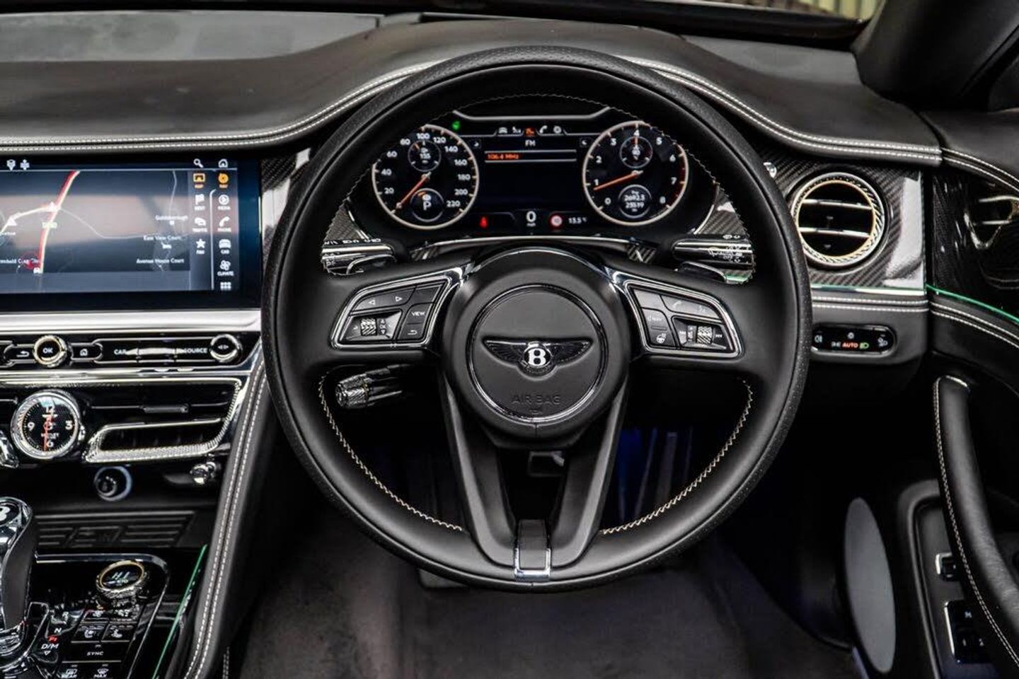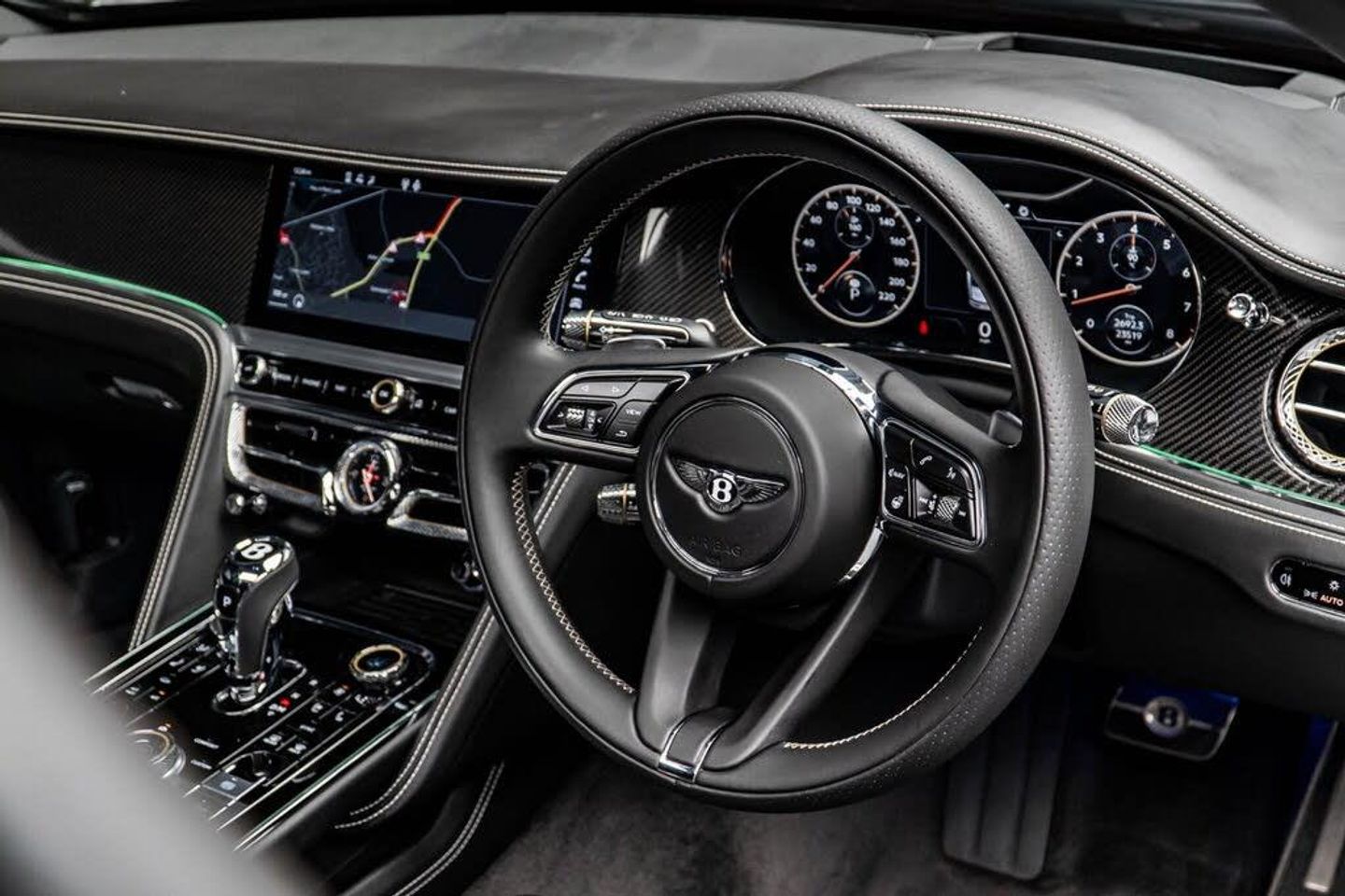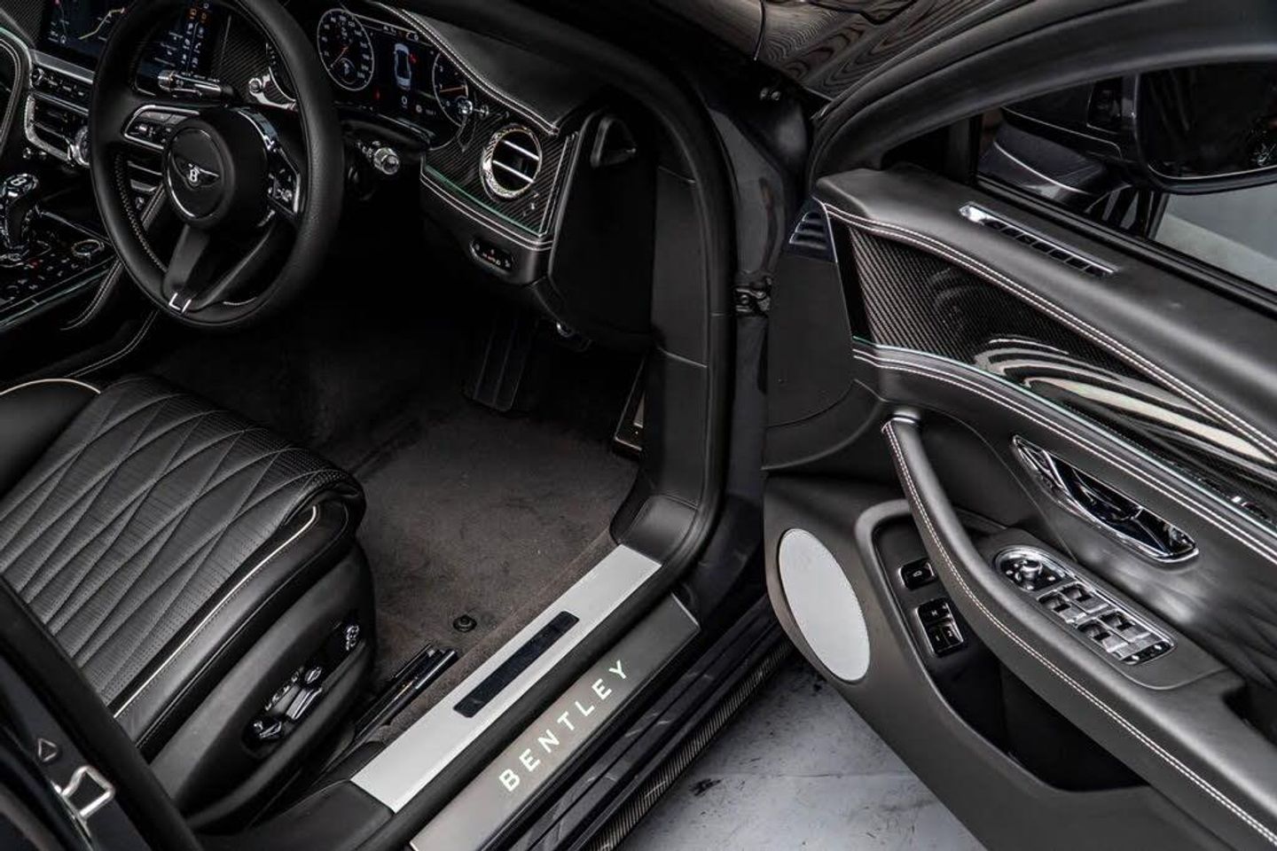 12v x 2 Power Points, 20in Alloy Wheels - Five Twin-Spoke - Painted Silver, 4 Plus 1 Seat Configuration, 8 Channel and 8 Speaker Audio System, 8in High-Resolution Colour Screen to Display Infotainment and Vehicle Systems Information, ABS - Anti Lock Braking System, Acoustic Layer to Glass, Air Conditioning - Rear, Air Springs With Continuous Damping Control, Airbag - Driver, Airbag - Front Passenger Deactivation, Airbag - Front and Rear Thorax, Airbag - Passenger, B Chrome Wing Vent Detail on Black Grille, BMR - Balanced Mode Radiator Speakers, Battery Charger, Bentley GPS Tracking System - Full Fitment, Bi-Xenon Projector Headlights, Black Winged B Badge to Radiator Shell Boot Lid and Wheel Centres, Boot Carpet in Beluga, Brake Pad Wear Indicator, Breitling Clock, Bright Boot Finisher, Bright Chrome Radiator Matrix Grille, Bulls-Eyes Air Vents with Chrome Organ Stop Controls, CD/Radio, Carpets and Safety Belts to Match All Hides, Climate Boost for Rear Passengers, DAB Radio, Daytime Running Lights - LED, Diamond Quilted Hide Door Panels, Door Area Lighting in Lower Edge of Exterior Mirrors and Entrance Lighting in Lower Edge of Door, Door Mirrors - Colour Coded, Door Mirrors - Electronically Adjustable with Heating - Power Folding and Memory Functions, Driver Knee Airbag, EBD - Electronic Brake Force Distribution, ESP - Electronic Stability Programme, Electric Front and Rear Windows, Electric Tilt and Reach Adjustment Steering Column with Memory and Easy Entry and Exit Functions, Electrically Operated Blinds for Rear Side Windows, Electronic Cruise Control, Electronic Parking Brake with Drive Away Assist, Engine Oil Filler - Bright B Cap, Engine Start/Stop Button, Footwell and Front and Rear Console Stowage Illumination, Front Seat Comfort Specification, Front and Rear Curtain Airbags, HBA - Hydraulic Brake Assistance, Headlight Washer Jets, High Level Rear Brake Light, ISOFIX Rear Seat Fixings, Infotainment System Incorporating DVD Satellite Navigation and Hi-fi System with Rear Remote Control, Integrated HVAC Controls, Keyless Entry and Ignition, Leather Headlining, Lower Front Bumper Grille in Black with Chrome Wing Insert, Lowered Sports Suspension, MSR - Motor Slip Regulation, Main Beam Supplementation - LED, Multi-Function Steering Wheel, Multi-zone Automatic Climate Control System, NavTrak Provision, Non-Smokers Pack, Oval Chrome Exhaust Finisher, Park Distance Control - Graphic on Infotaintment Screen Works in Conjuntion with Audible Warning, Power Boot Opening and Closing, Power Latching to All Doors for Easy Entry/Exit, Rain Sensing Windscreen Wipers, Rear Centre Armrest with Leather-Lined Stowage Compartment, Rear Diffuser, Rear LED Fog and Reverse Lights Integrated into the Lower Bumper, Rear Lights with Elipse within an Elipse Effect Inner Light Treatment - LED, Seats - Driver and Passenger Front 14 Way Adjustment and Memory, Seats - Front and Rear Massage Function, Seats - Heated Front, Seats - Heated Rear, Seats - Lumbar Support for Front, Seats - Lumbar Support for Rear, Single SD Card Slot, Speed Sensitive Power Steering, Standard Brakes with Black Calipers, Steel Monocoque Body Structure with Front and Rear Energy-Absorbing Crumple Zones, Steering Wheel - 3 Spoke Single Tone - Hide Trimmed, TPMS - Electronic Tyre Pressure Monitoring System, Telephone System with Bluetooth Wireless Connectivity, Telephone Voice Dialling, Tread-Plates with Build Plaque Insert, Twilight Sensor Control and Tunnel Detection for Lighting, Twin Cup Holders, Twin Front Armrests, Twin Rifled Oval Stainless Steel Tailpipes, Veneer - Crown Cut Walnut, Volumetric Ultrasonic Alarm, Wheel Bolts with Thatcham Security Bolt, Contrast Stitching and Seat Piping, Mulliner Driving Specification with Black Painted Alloy Wheel, LED Welcome Lamps by Mulliner, Touring Specification, Flying Spur Blackline Specification, Heated Windshield, Illuminated Flying B Radiator Mascot - Black Gloss, Panoramic Glass Tilt and Slide Sunroof with Twin Blinds and
