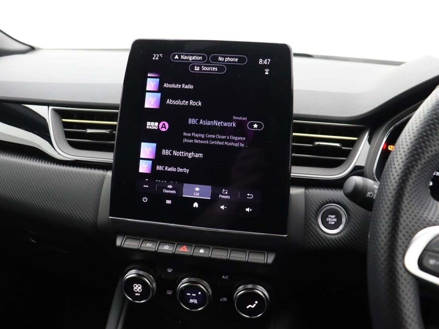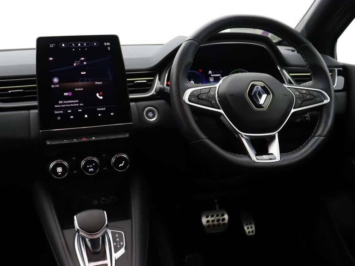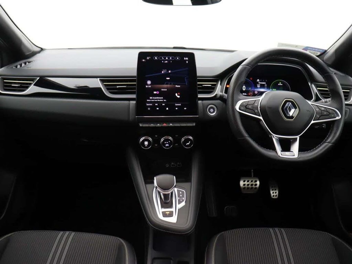 18in Alloy Wheels - E-TECH Engineered - La Castellet - Diamond Cut with Gold Insert,2 Front Reading Lights LED and Central Rear Roof Light with 3 Reading Lights LED,2 Reverse Gear LED Lamps and 1 Rear LED Fog Lamp in Bumper,ABS with EBA - Emergency Brake Assist,AEBS - Active Emergency Braking System,Airbags - Deactivation - Front and Side - Driver and Passenger,Airbags - Driver and Front Passenger - Side - Head and Curtain,Aluminium Renault Sport Door Sills,Anti Drill Door Locks and Locking Fuel Cap,Auto Dimming Rear View Mirror,Automatic Air Conditioning with One Touch Quick Demist Function and Air Quality Regulator,Automatic Headlights,Automatic Windscreen Wipers with Rain Sensors,Black - Renault - Logo - Front and Rear,Black Side Door Protection with Chrome Insert,Black Soft Touch Dashboard,Bluetooth - DAB Radio and USB Ports,C-Shaped LED Front and Rear Lighting Signature with 3D Effect on the Rear Lights,Central Door Locking,Cruise Control with Speed Limiter,Dark Interior Roof Lining,Daytime Running Lights,Deadlocking,Distance Warning Alert,Double Chromed Exhaust Tailpipes Elements,Driver Seat Belt Height Adjustable,E-TECH Badging -on Bottom Right- New Design from SOP E-TECH Engineering,ECO Mode Function,ESC - Electronic Stability Control,EV Button to Activate 100% Electric Drive,Easy Link Navigation with 9.3in Touchscreen,Electric Windows - Front With Driver One Touch Facility and Anti-Pinch Function,Electric Windows - Rear,Electronic Parking Brake with Auto-Hold Function,Exterior Trim - E-TECH Engineered Electric Gold Styling on Front Bumper and Side Trims with Shiny Black Inserts,Extra Tinted Windows - Rear and Tailgate,Flying Console with E-Shifter Gear Selector,Frameless Rear-View Mirror,Front Fenders Decopart - Shiny Black with Shiny Black Insert,Front Grille with Chrome on Upper Part,Front Passenger Height Adjustment Seat,Front and Rear No Seatbelt Warning Sound,Full Digital Virtual Cockpit - Configurable TFT 10in Colour Display - Compatible with ADAS including Multisense and Map Replication,Full LED Headlights,Gear Change Indicator,Gold Detailing on the Dash and Steering Wheel,Gold E-Tech Badge on Hatch Door,Gold Front Bumper with F1 Blade,HSA - Hill Start Assist,Hands Free Keycard - Keyless Access and Start,Headlights - Automatic High-Low Beam,Heated Steering Wheel,Heating System with Pollen Filter,ISOFIX Child Seat Fixing Points on Rear Outermost Seats,Interior Trim - Gold Stitching on the Door Panel,LDW - Lane Departure Warning,LED Turn Indicators in Side Wing Mirrors,LKA - Lane Keep Assist,Longitudinal Roof Bars,MULTI-SENSE - 3 Driving Modes and 8 Ambient Lighting,Modular Boot Floor,Parking Sensors - Front and Rear,Pedals - Aluminium,Rear Door and Window Child Locking Function - Front Driver Door Control Panel for Rear Door,Rear LED Fog Lights,Rear Seats - 1-3 2-3 Foldable Sliding Bench,Rear-View Camera,Renault Automatic Emergency Assist - E-Call,Seats - Drivers Height Adjustment,Shark Fin Antenna,Shiny Black Front and Rear Skid Plates,Smartphone Integration with Apple CarPlay and Android Auto,Steering Wheel - Height and Reach Adjustable,Steering Wheel - Leather - E-TECH Engineered with Gold E-Tech badge,Traffic Sign Recognition with Overspeed Prevention,Trip Computer,Tyre Inflation Kit,Tyre Pressure Warning Light,Variable Power Assisted Steering - Electrical,Windscreen Wipers - Rear,Wireless Phone Charger