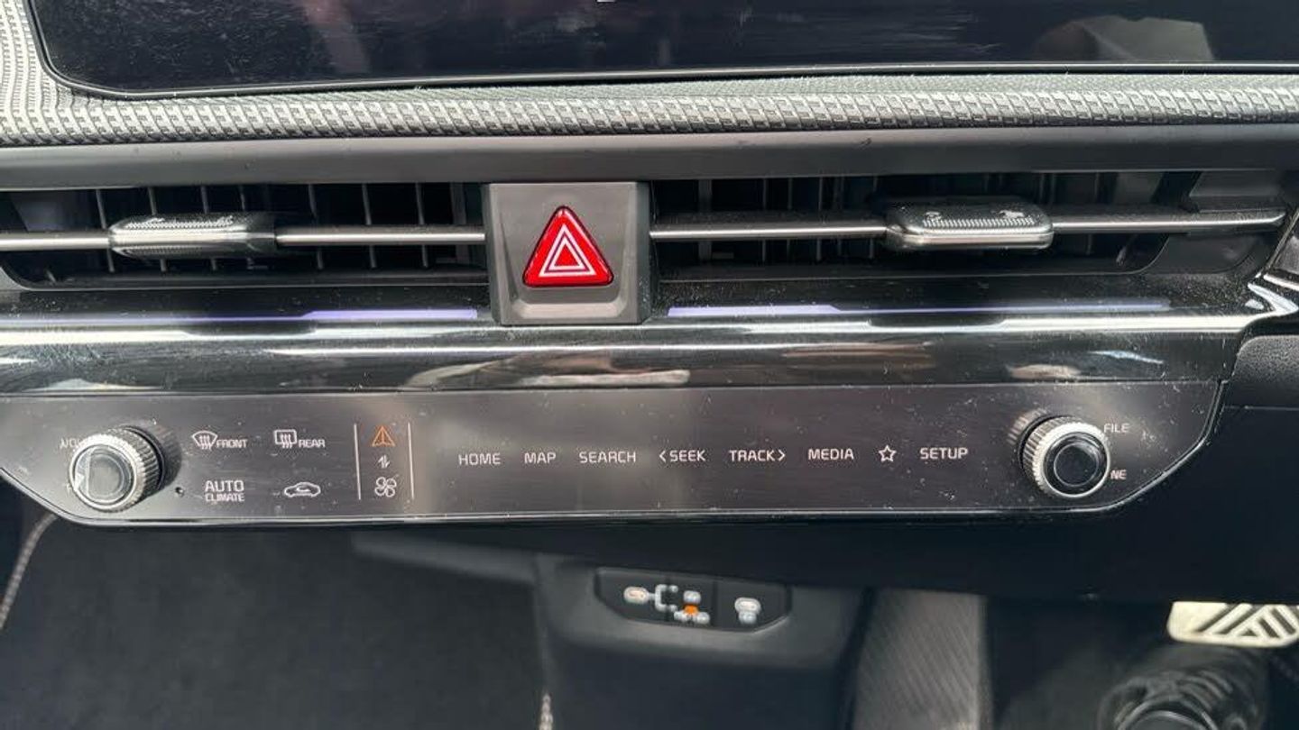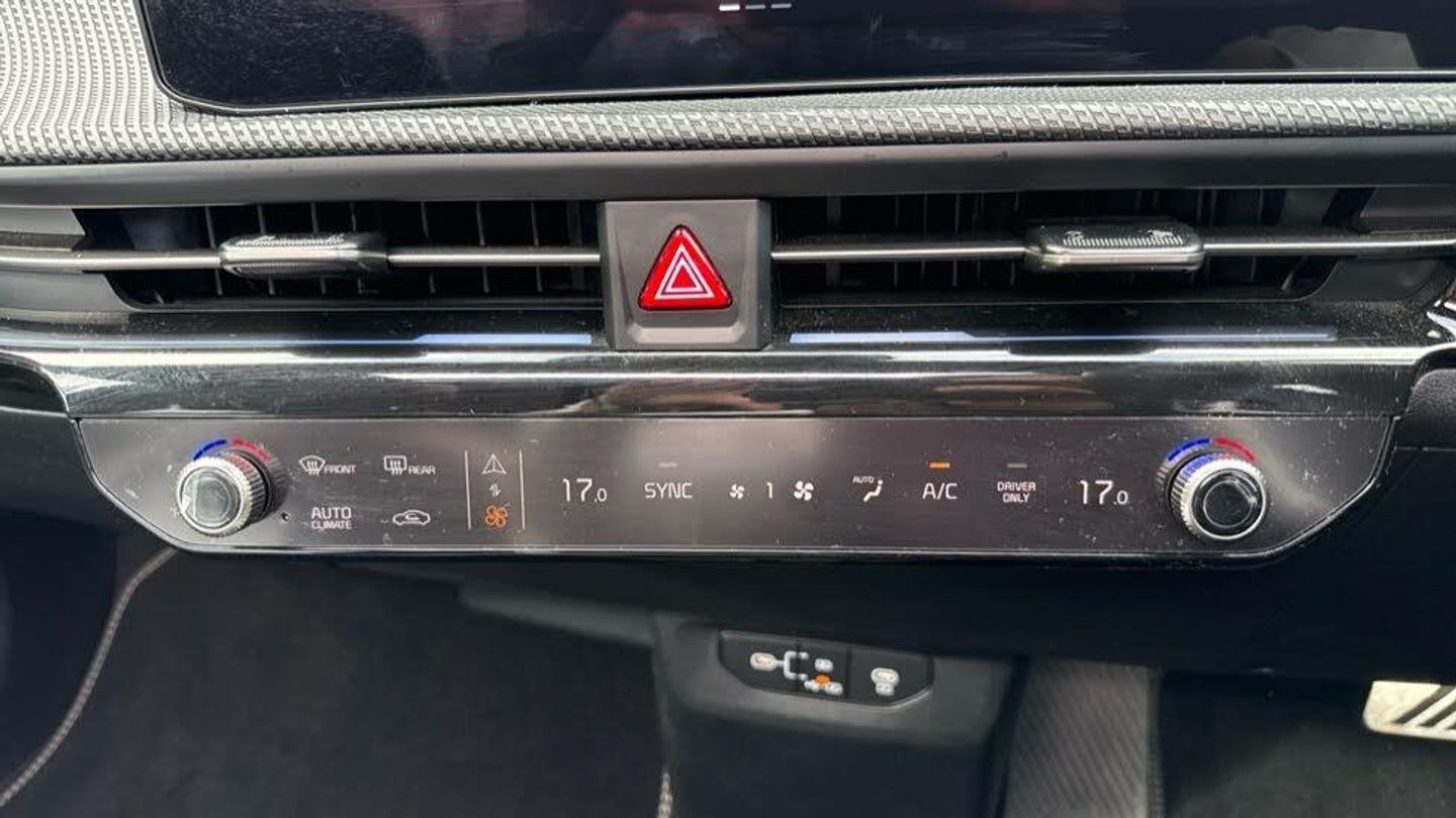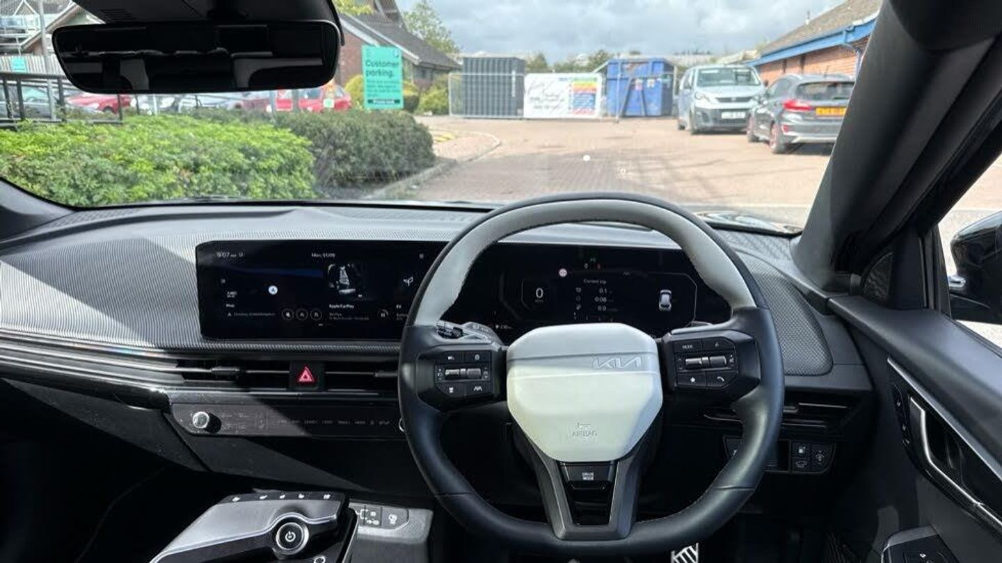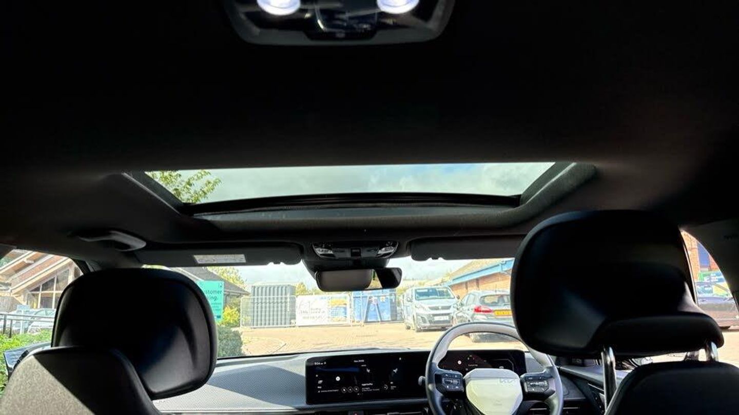 Heat Pump System, Artificial Suede - Black with White Artificial Leather Bolsters, 20' Alloy Wheels, Sunroof With Tilting & Sliding Function, Black Artificial Suede Seats with White Artificial Leather Bolsters, Front Ventilated Seats, Vehicle-to-Load (V2L) Capability with Adapter, Meridian Premium Sound System with 14 Speakers & Active Sound Design (ASD), Customisable Head-Up Display (HUD), Digital Key, Fingerprint Recognition, Free 7-Year Kia Connect Services, Body Coloured Exterior Flush Door Handles - Automatic, Outer Rear Heated Seats, Electric Steering Wheel Adjustment, Electric One-touch Front & Rear Windows, Smart Power Tailgate, 3-Pin Power Socket, Front Side & Rear Parking Sensors, Parking Collision-Avoidance Assist, Remote Smart Parking Assist 2.0, Forward Collision-Avoidance Assist 2.0 - City Pedestrian Cyclist Junction Turning & Junction Crossing, Highway Driving Assist 2.0 with Hands-On Detection, Blind-Spot View Monitor, 360 Surround View Monitor, Heat Pump (OPT), GT-Line Exterior Styling, Dual LED Headlights With Adaptive Driving Beam, Smart Cruise Control With Stop & Go Functionality, Electric Driver's Seat Adjustment with Memory Function, Front Relaxation Seats, Wireless Mobile Phone Charger, Blind-Spot Collision-Avoidance Assist, Free 7-Year Kia Connect Services, Privacy Glass (Rear Windows & Tailgate), Solar Glass Windscreen, High Gloss Black Door Garnish With Body Colour Wheel Arches, GT-Line Interior Styling, Customisable Ambient Lighting, Electric Front Passenger's Seat Adjustment, Electric Front Passenger's Seat Lumbar Support, 3-spoke GT-Line Artificial Leather Steering Wheel, Alloy Pedals, Safe Exit Warning, Front Heated Seats, Heated Steering Wheel, Start/Stop Button with Smart Entry System, 12.3' Curved Driver Display Screen, 12.3' Curved Touchscreen Navigation, Wireless Apple CarPlay & Android Auto, Automatic Headlight Control, Heated Rear Window, Electrically Adjustable Folding & Heated Door Mirrors with LED Indicators, Gloss Black Door Mirrors, Rear Spoiler, Rain Sensing Front Wipers, LED Daytime Running Lights, LED Rear Lights, LED Rear Fog Lights, High Gloss Black Beltline, Standard Paint, Electric Driver's Seat Lumbar Support, Metal Painted Interior Door Handles, Auto-Dimming Rear View Mirror, Automatic Air Conditioning, Automatic Defog System, Sunvisors with Illuminated Vanity Mirror (Driver & Front Passenger), Frunk, 60:40 Split Remote Folding Rear Seats, Ski Hatch, Centre Console with Storage Box, Rear Centre Armrest with Cupholders, LED Front Cabin & Rear Lights, LED Luggage Compartment Lights, Luggage Area Load Cover, Luggage Board, Luggage Net Hooks, Frunk LED Lights, Glovebox with Illumination, 12V Front & Luggage Compartment Power Socket, Front & Rear Door Storage, Tyre Mobility Kit, Bluetooth Connection, USB-C Port for Media Device Connection, Front USB-C Charging Ports x2, Rear Passenger USB-C Charging Ports x2, eCall System, Over-The-Air (OTA) Functionality, Front & Rear Parking Sensors, Reversing Camera System, Hill-Start Assist Control, Dynamic Brake Control, Intelligent Speed Limit Assist, Lane Keep Assist, Lane Follow Assist 2.0 with Hands-On Detection, Tyre Pressure Monitoring System (TPMS), Vehicle Stability Management, Electronic Parking Brake with Autohold Function, Regenerative Braking Paddle Shifter with iPedal Functionality, Drive Mode Select (Normal Eco Sport & MyDrive), Terrain Mode (Snow), Anti-Lock Braking System with Emergency Stop Signalling, Electronic Stability Control, Driver Attention Warning, Rear Occupant Alert, Height Adjustable Front Seatbelts, Seatbelt Reminder Warning, All-Round 3-Point Seatbelts, All-Round Height Adjustable Headrests, Front Passenger Airbag Cut-Off Switch, Front Airbags, Rear Airbags, Side Airbags, Curtain Airbags, Customisable Automatic Door Locking, Customisable Automatic Door Unlocking, ISOFIX Child Seat Top Tethers & Anchor Fixings (Rear Row), Manual Child Lock, Locking Wheel Nuts, Visible Vehicle Identification Number (VIN), Thatcham Category 1 Security Alarm and Immobiliser with Interior Protection, Smart Key with Motion Sensor