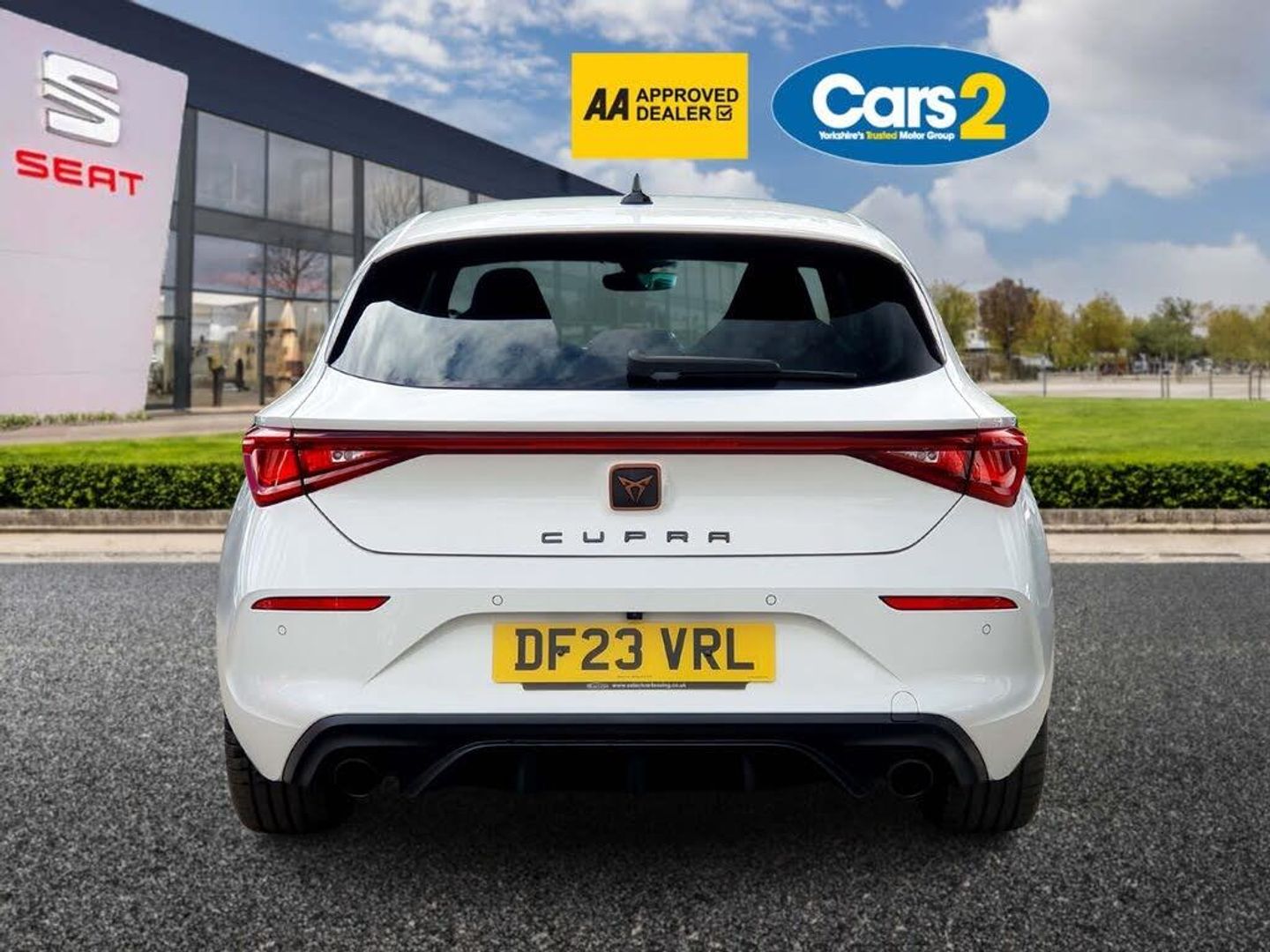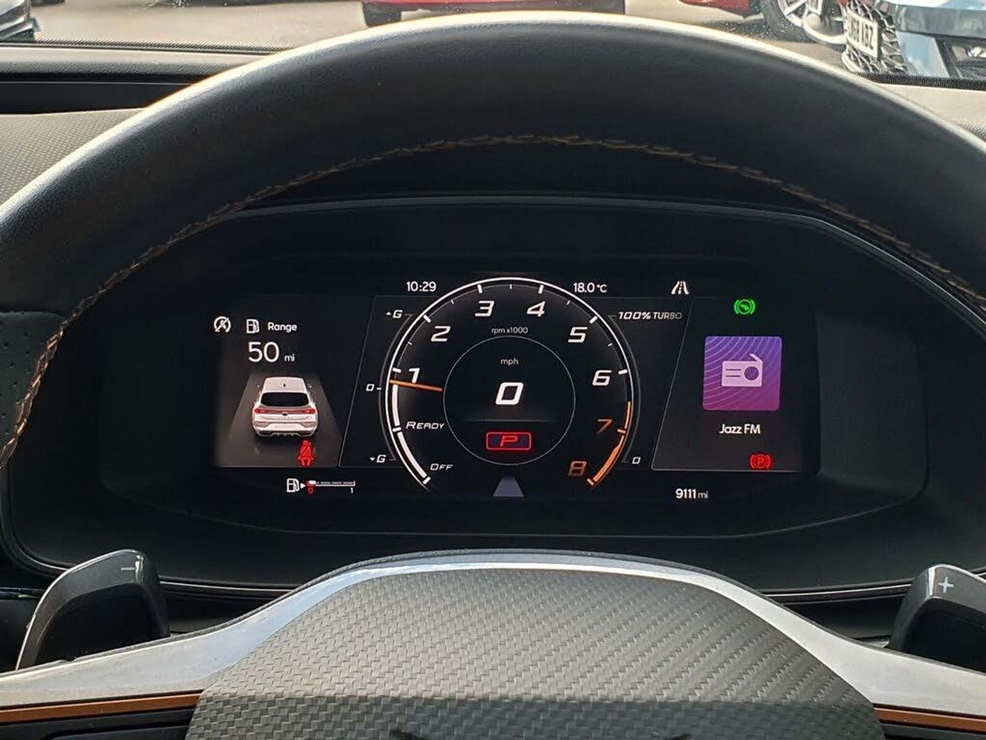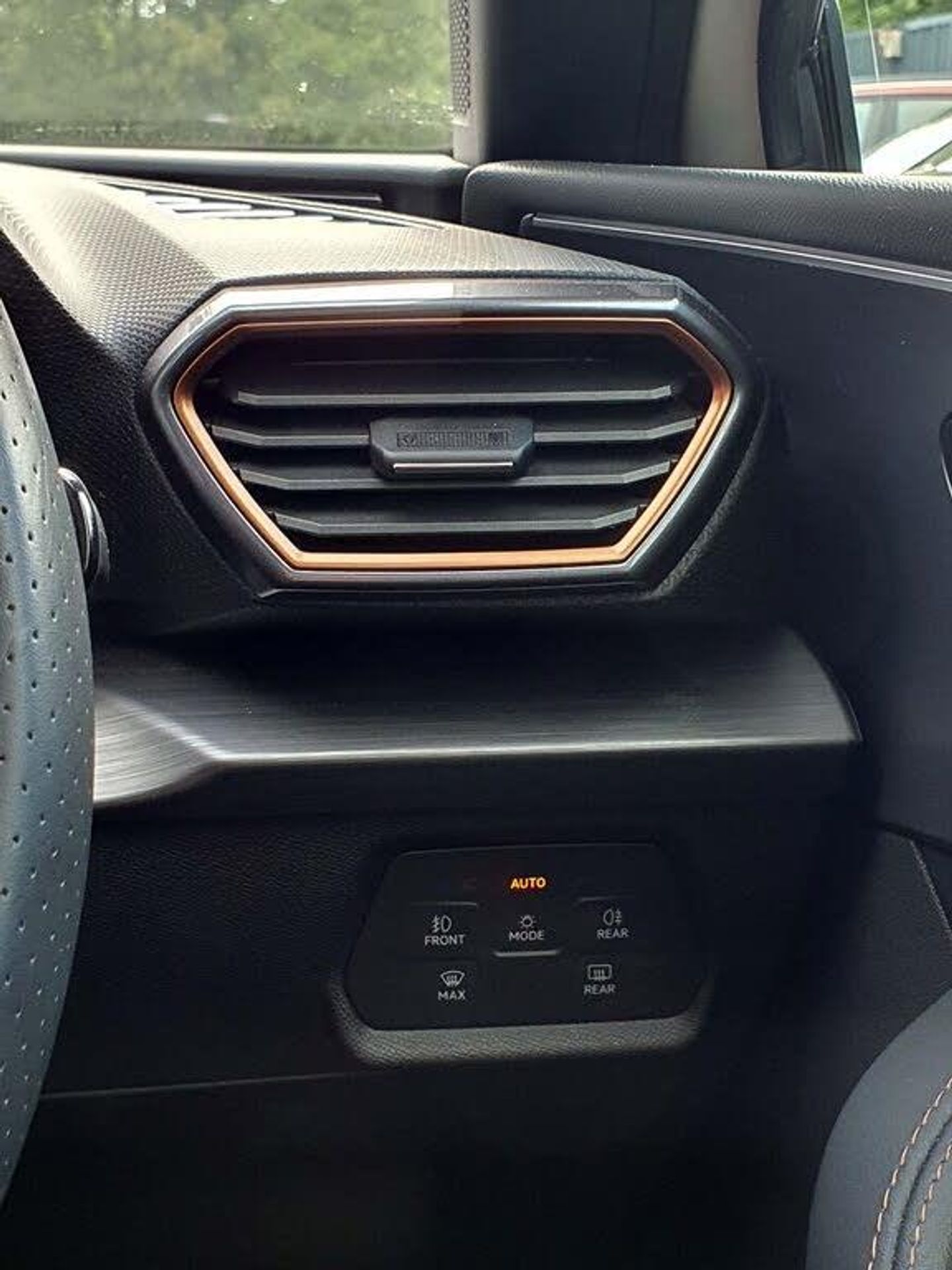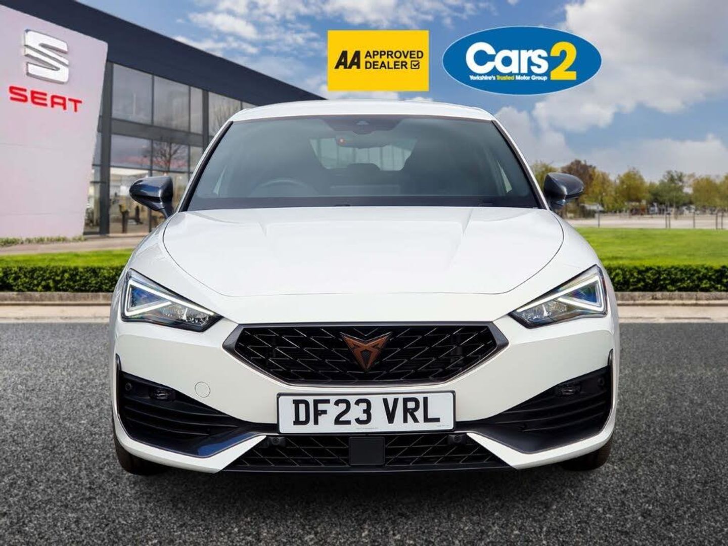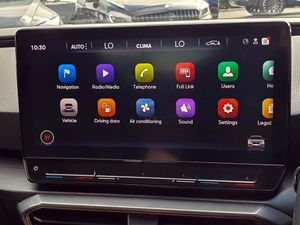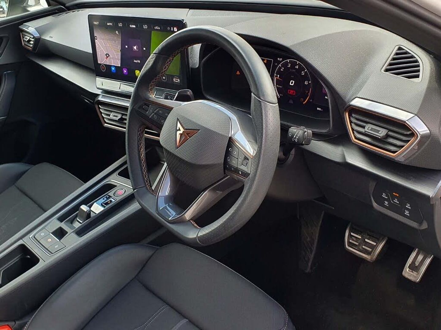 CUPRA drive profile selection with 4 modes (Comfort/Cupra/Sport/Individual), throttle response and gearshift mode, Digital cockpit, E-call, Electro mechanical speed sensitive power steering, Four x USB Type C ports, Front assist with forward collision warning braking reaction to vehicles, pedestrians and cyclists, Full link smartphone integration with Mirror Link, wireless Apple CarPlay and wired Google Android Auto, Lane assist, Lockable tailgate, Park assist (inc front/rear parking sensors), Rear view camera, RPM, trip computer, outside temp gauge, instrument light brightness, low fuel warning light, lights on reminder, gearshift indicator, Service interval indicator, Start/stop system with regenerative braking, Sports suspension, XDS electronic differential lock and dynamic traction support, 7 speakers, Auxiliary input socket, Auto dimming rear view mirror, Body colour door handles, Body coloured bumpers, Cupra sports bumpers, Dark tinted rear windows, Electric front/rear windows, Electrically adjustable, heated and folding door mirrors, LED front fog lamps with cornering function, LED headlights with dynamic turn signals, tail lights, rear fog lights with rear coast to coast lighting, Rain sensing wipers, Rear diffuser with twin exhaust pipe on each side, Rear side wing doors, Rear wash/wipe, Separate daytime running light with automatic headlight control and coming home feature, Third brake light, 12v power supply in centre console, 3 seat bench in 2nd row, 5 headrests, 60/40 split rear bench seat with armrest, Ambient lighting (glovebox, footwell, ambient lighting multicoloured), Black headlining, CUPRA Leather flat bottomed, heated, perforated steering and gearshift paddles, Cupra sports pedals, Driver/passenger manual seat height adjustment, Dust/pollen filter, Folding boot cover, Front and rear reading lights X 4, Front centre armrest, Front seats manual lumbar adjustment, Height/reach adjust steering wheel, Illuminated interior front door sills, Interior wraparound lighting, ISOFIX points in outer rear seats with top tether anchorage points, Jack and tool kit, Luggage tie-down hooks, PVC/Cloth upholstery with copper stitching + Cupra embossed logo on headrest, Single front passenger seat, Sports bucket seats, Storage pockets on rear of front seats, Sunvisors with illuminated mirror, Three zone climate control, Media system plus with navigation pack - Leon Cupra, 3 point seatbelts on all rear seats, ABS, Brake control system - ESC and brake booster, Child proof door locks, Cupra black brake calipers, Driver and front passenger airbags with front passenger airbag de-activation, front side and curtain airbags, Electronic parking brake, Extended safety system - seat belt tensioner, window closure and hazard lights, Hill hold control, Rear disc brakes, Seat belt reminder for front and rear seats, Tiredness recognition system, Tyre pressure monitoring system, Anti theft alarm system with interior monitoring in cab, backup horn and towing protection, KESSY Advanced - Keyless start, keyless entry, Locking wheel bolts, Chrome and copper interior detailing, 18" Machined sport black and silver alloy wheels with 92Y tyres, Space saver spare wheel