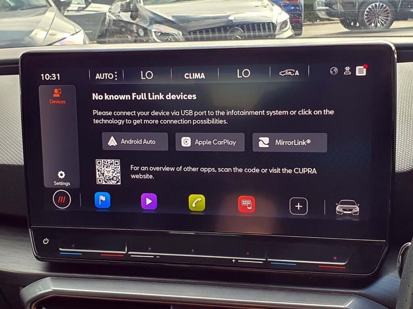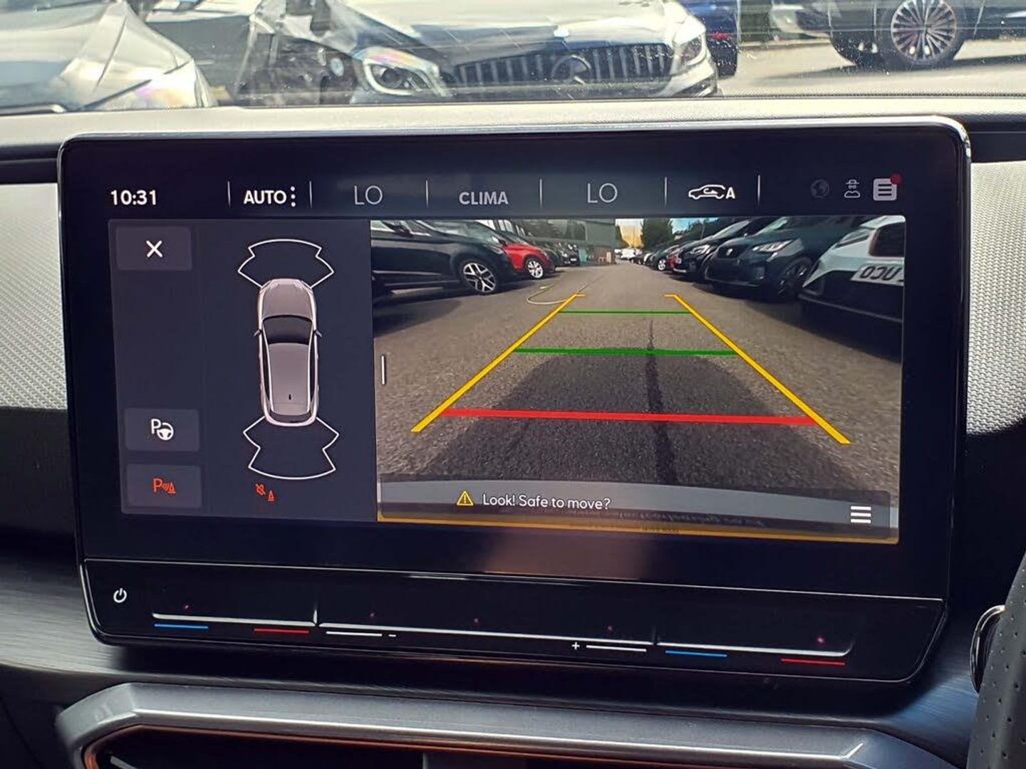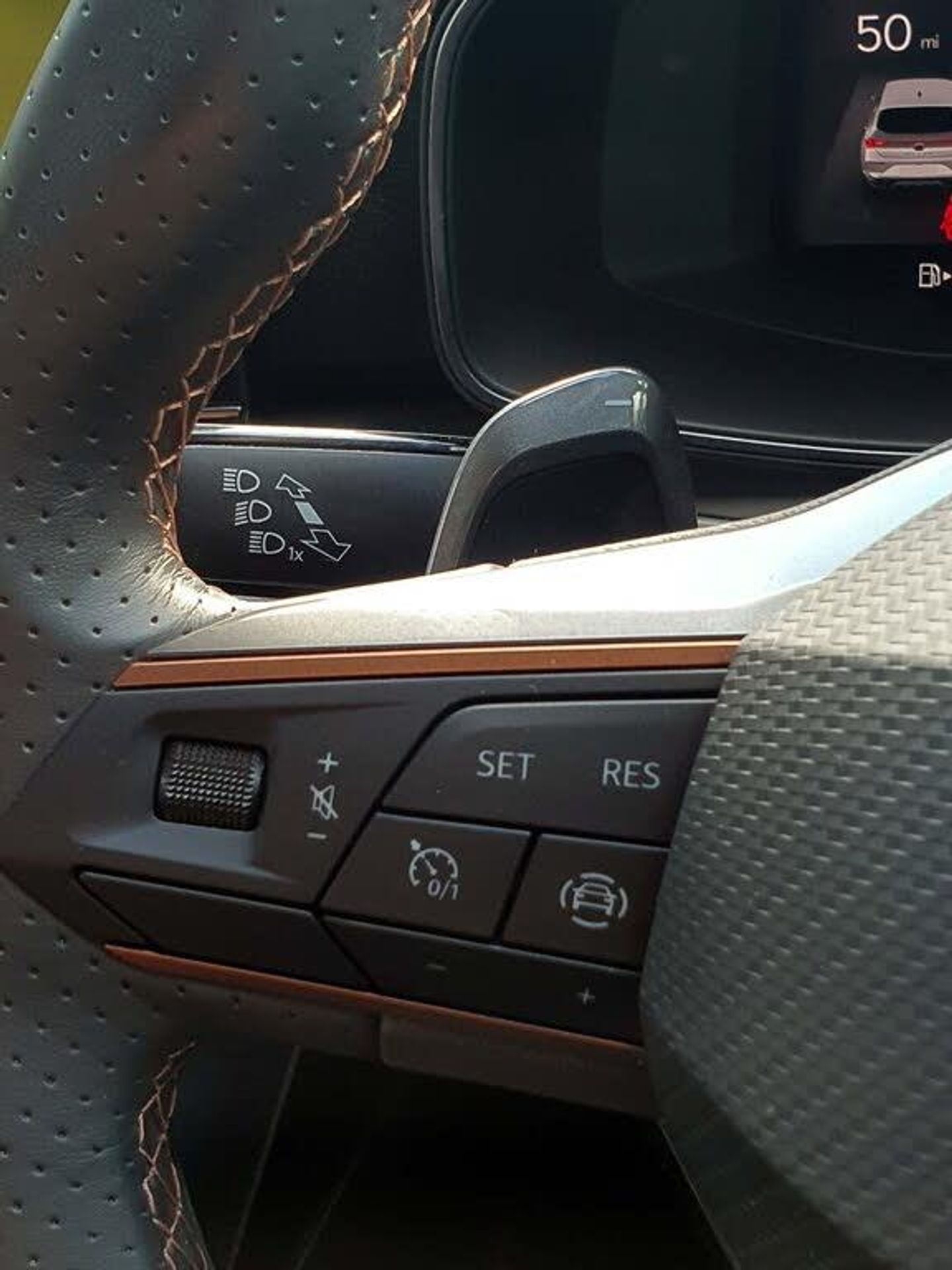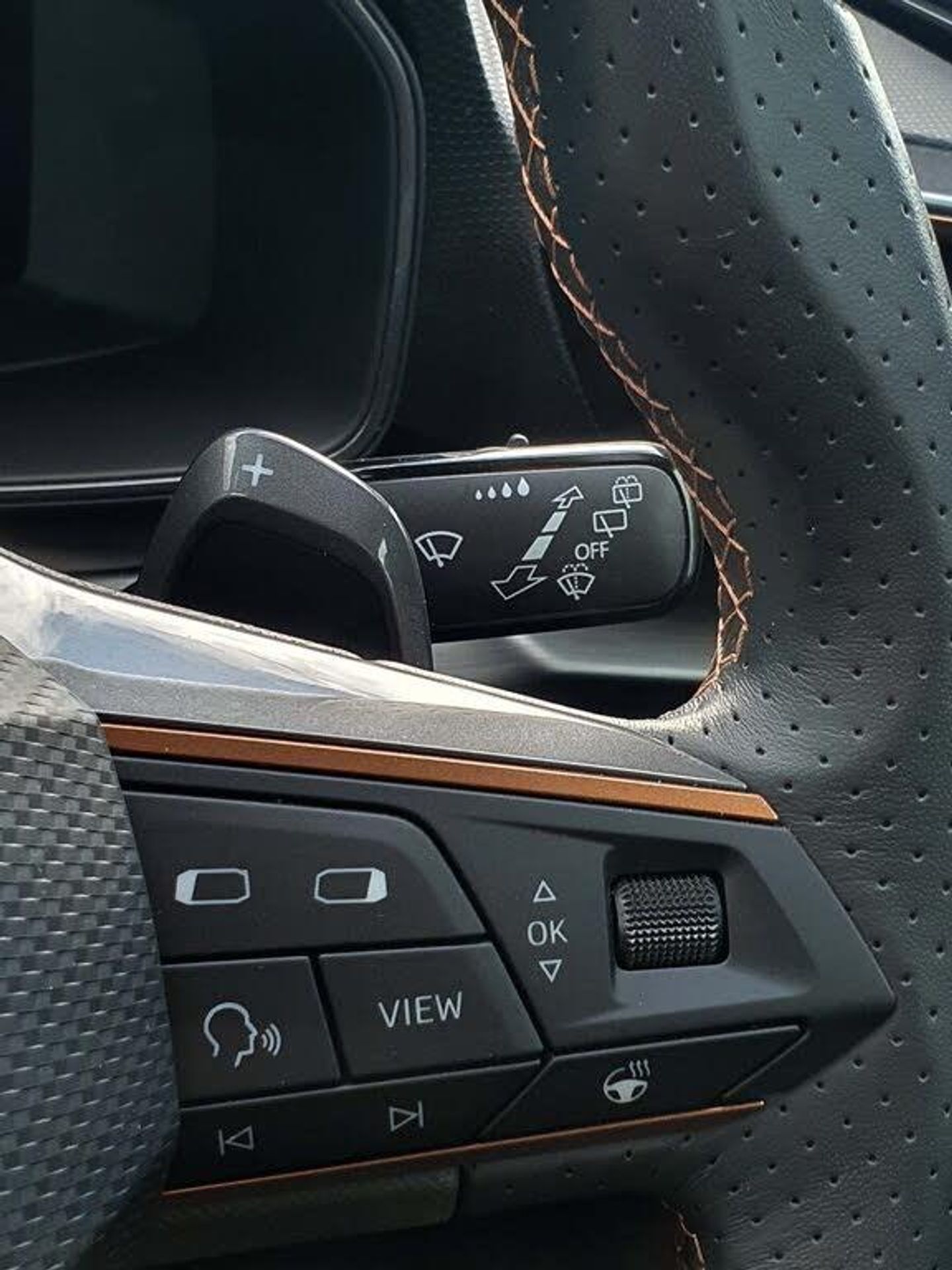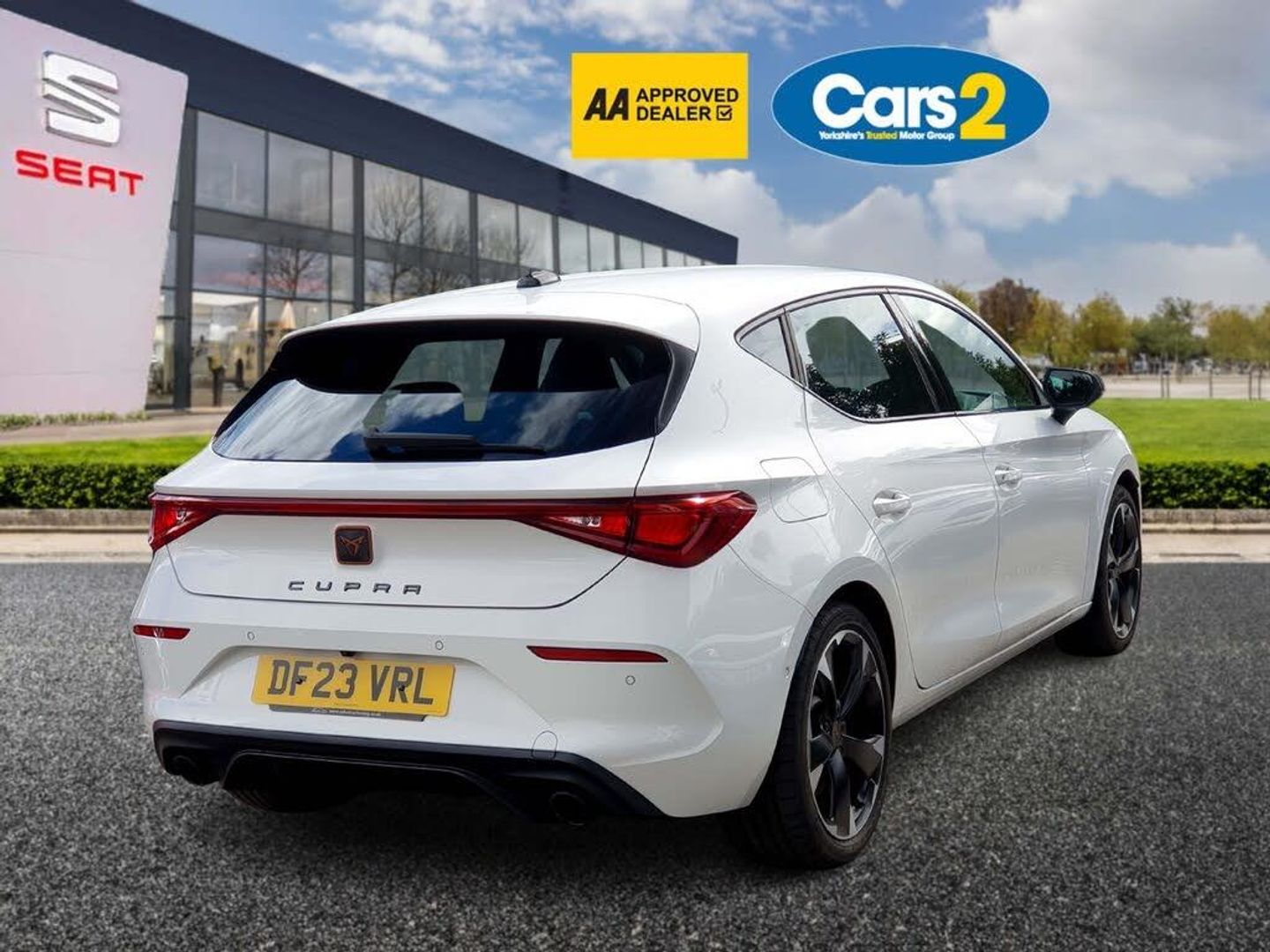CUPRA drive profile selection with 4 modes (Comfort/Cupra/Sport/Individual), throttle response and gearshift mode, Digital cockpit, E-call, Electro mechanical speed sensitive power steering, Four x USB Type C ports, Front assist with forward collision warning braking reaction to vehicles, pedestrians and cyclists, Full link smartphone integration with Mirror Link, wireless Apple CarPlay and wired Google Android Auto, Lane assist, Lockable tailgate, Park assist (inc front/rear parking sensors), Rear view camera, RPM, trip computer, outside temp gauge, instrument light brightness, low fuel warning light, lights on reminder, gearshift indicator, Service interval indicator, Start/stop system with regenerative braking, Sports suspension, XDS electronic differential lock and dynamic traction support, 7 speakers, Auxiliary input socket, Auto dimming rear view mirror, Body colour door handles, Body coloured bumpers, Cupra sports bumpers, Dark tinted rear windows, Electric front/rear windows, Electrically adjustable, heated and folding door mirrors, LED front fog lamps with cornering function, LED headlights with dynamic turn signals, tail lights, rear fog lights with rear coast to coast lighting, Rain sensing wipers, Rear diffuser with twin exhaust pipe on each side, Rear side wing doors, Rear wash/wipe, Separate daytime running light with automatic headlight control and coming home feature, Third brake light, 12v power supply in centre console, 3 seat bench in 2nd row, 5 headrests, 60/40 split rear bench seat with armrest, Ambient lighting (glovebox, footwell, ambient lighting multicoloured), Black headlining, CUPRA Leather flat bottomed, heated, perforated steering and gearshift paddles, Cupra sports pedals, Driver/passenger manual seat height adjustment, Dust/pollen filter, Folding boot cover, Front and rear reading lights X 4, Front centre armrest, Front seats manual lumbar adjustment, Height/reach adjust steering wheel, Illuminated interior front door sills, Interior wraparound lighting, ISOFIX points in outer rear seats with top tether anchorage points, Jack and tool kit, Luggage tie-down hooks, PVC/Cloth upholstery with copper stitching + Cupra embossed logo on headrest, Single front passenger seat, Sports bucket seats, Storage pockets on rear of front seats, Sunvisors with illuminated mirror, Three zone climate control, Media system plus with navigation pack - Leon Cupra, 3 point seatbelts on all rear seats, ABS, Brake control system - ESC and brake booster, Child proof door locks, Cupra black brake calipers, Driver and front passenger airbags with front passenger airbag de-activation, front side and curtain airbags, Electronic parking brake, Extended safety system - seat belt tensioner, window closure and hazard lights, Hill hold control, Rear disc brakes, Seat belt reminder for front and rear seats, Tiredness recognition system, Tyre pressure monitoring system, Anti theft alarm system with interior monitoring in cab, backup horn and towing protection, KESSY Advanced - Keyless start, keyless entry, Locking wheel bolts, Chrome and copper interior detailing, 18" Machined sport black and silver alloy wheels with 92Y tyres, Space saver spare wheel