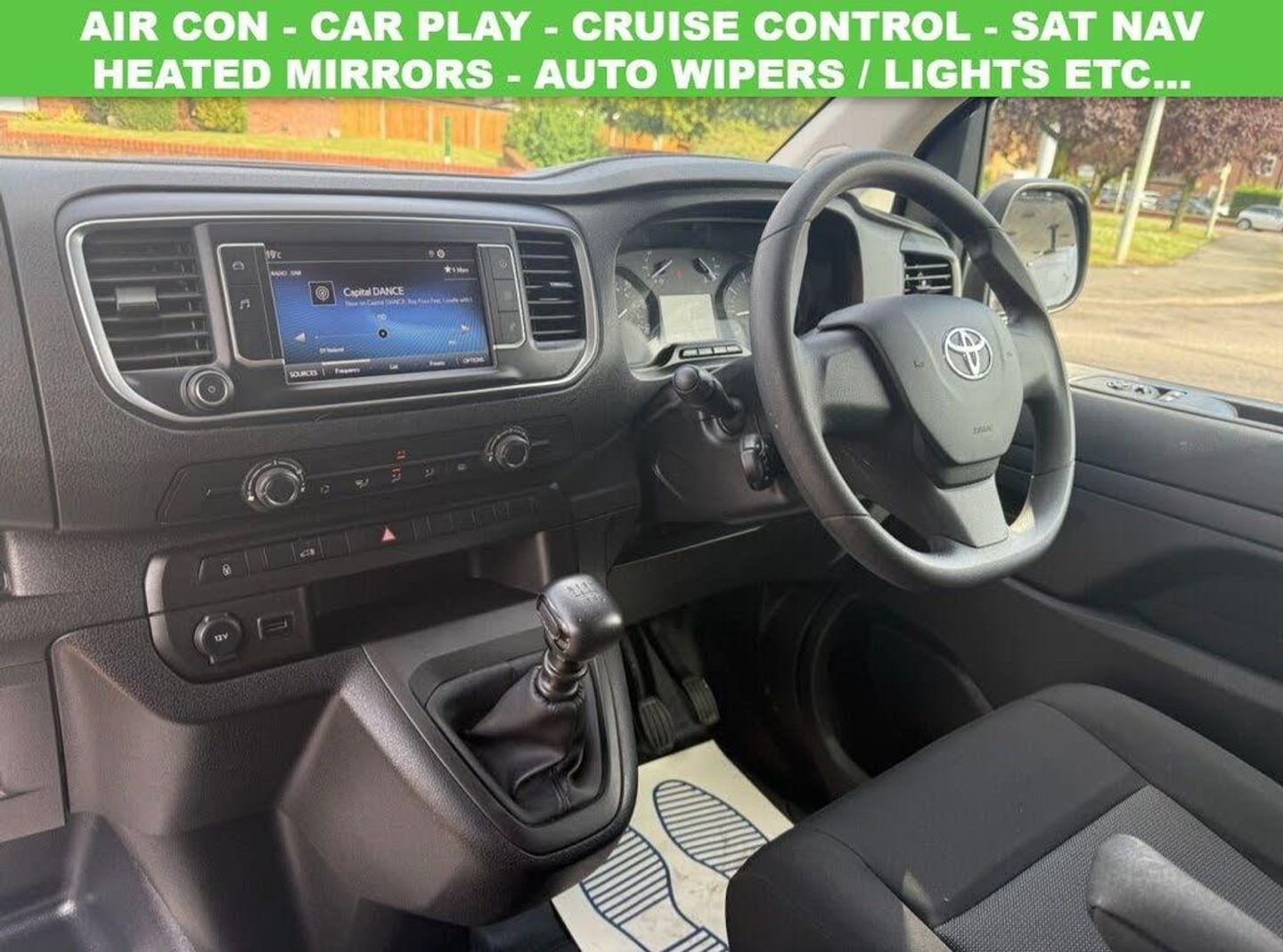 12V Power Outlet - Cargo Area, 12v Power Outlet - Front, 16in Steel Wheels - Black Large Centre Caps, 180 Degree Opening on Rear Wing Doors, Adjustable Lumbar Support on Driver Seat, Anti Lock Braking System - ABS with Electronic Brake-Force Distribution - EBD, Anti-Tamper Alarm, Armrest - Drivers, Auto Up and Down Function on Power Windows, BA - Brake Assist, Black Front Bumper, Black Insert on Upper Front Grille, Black Protection Moulding on Side Doors, Black Rear Bumper, Bluetooth Connectivity, Bulkhead - Steel Panel, Cargo Area Room Light - 2, Cruise Control, Cruise Control Switch on Steering Wheel, Daytime Running Lights, Digital Audio Broadcast - DAB, Door Handles - Black, Door Mirrors - Black, Door Mirrors - Heated and Manually Retractable, Driver and Front Passenger Airbags, Driver and Front Passenger Personal Lights, Front Cup Holders, Front Power Windows, Full Size Temporary Spare Wheel, Glass-Breaking Alarm Sensors, Glovebox with Light, HAC - Hill Start Assist Control, Intrusion Alarm, LED High-Mounted Stop Light, Manual Air Conditioning, Manually Reclining Driver Seat, Manually Reclining Front Passengers Seat, Manually Sliding Drivers Seat, Manually Sliding Front Passenger Seat, Motion Sensor Alarm, Open Upper Dashboard Storage Compartment, Passenger Airbag On-Off Switch, Plastic Floor Trim, Power Steering, Remote Door Locking, Seats - Drivers Height Adjustment, Smart Cargo, Speakers x4, Supplemental Restraint System - SRS - Airbags - 2 Airbags, TPMS - Tyre Pressure Monitoring System, Twin Sliding Side Doors, Two Seater Front Passenger Bench, USB Connector, VSC - Vehicle Stability Control, White and Monochrome Screen Display