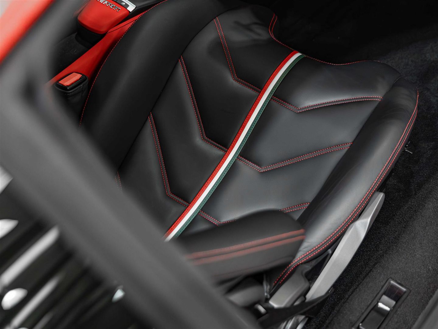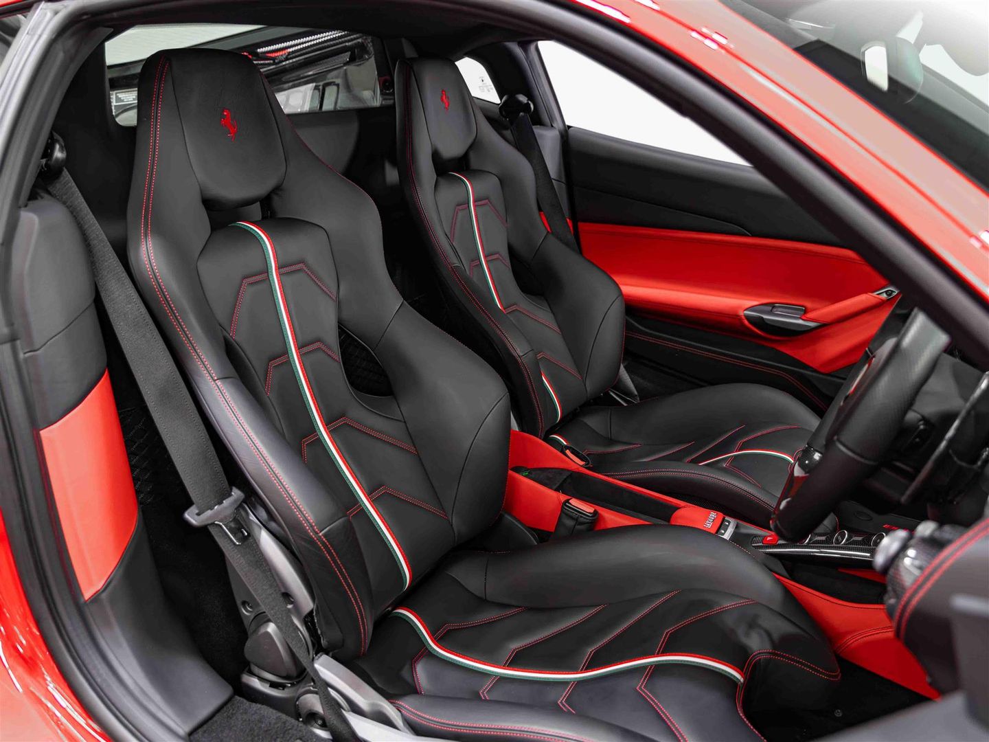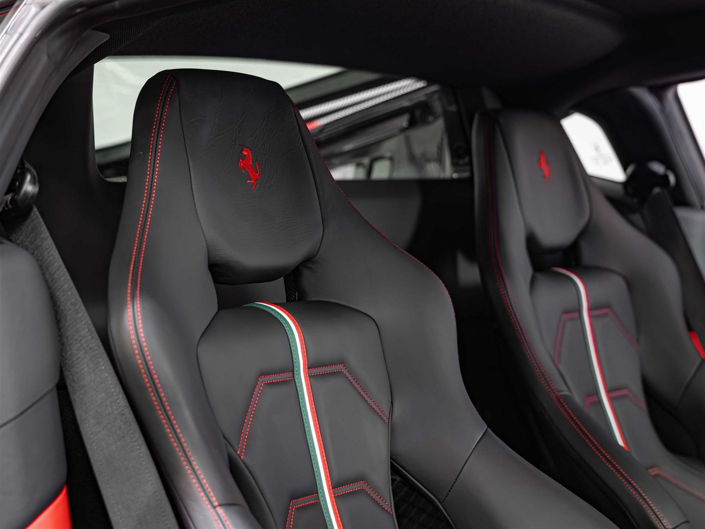 Prancing horse stitched to headrest in Rosso