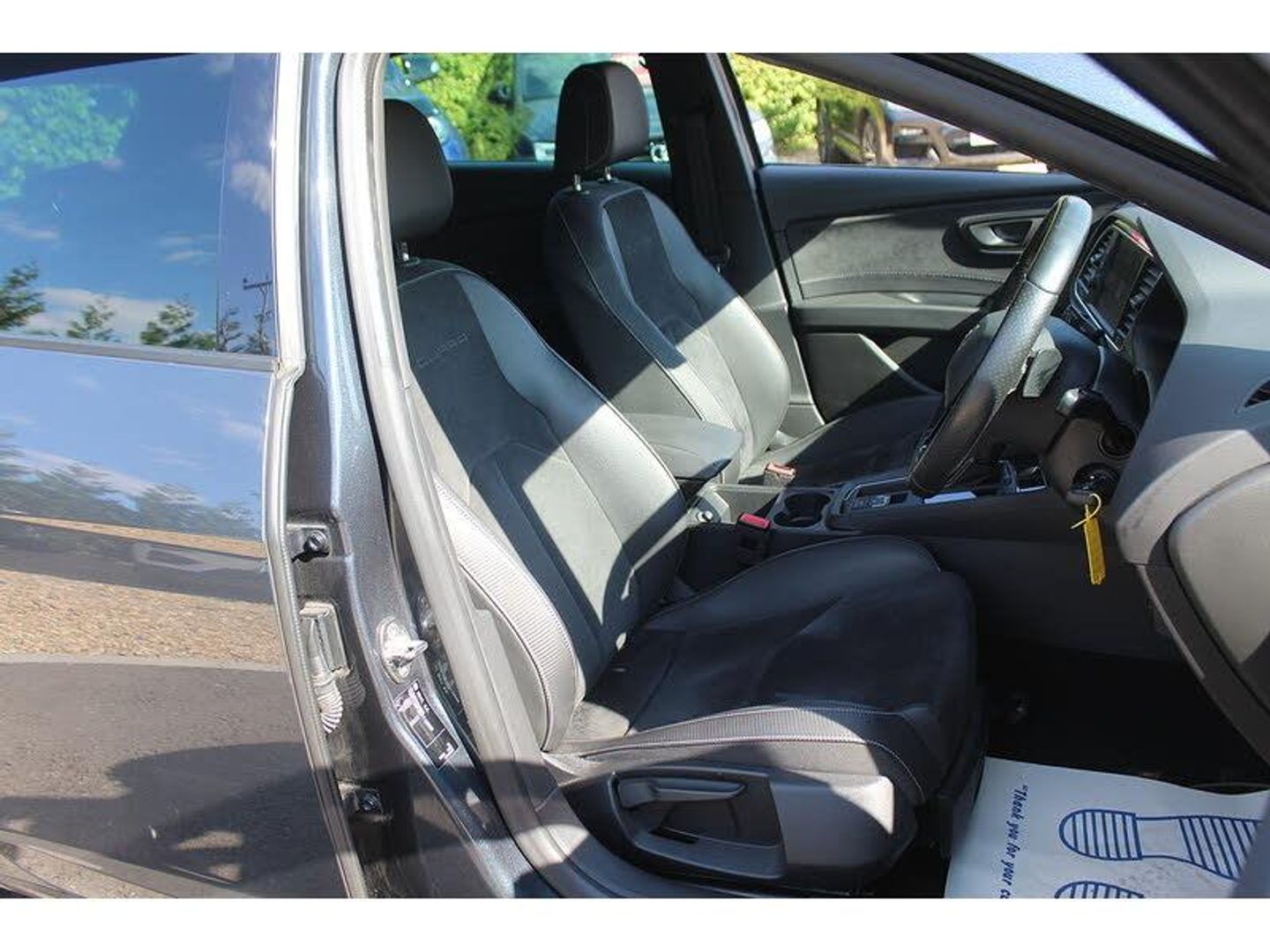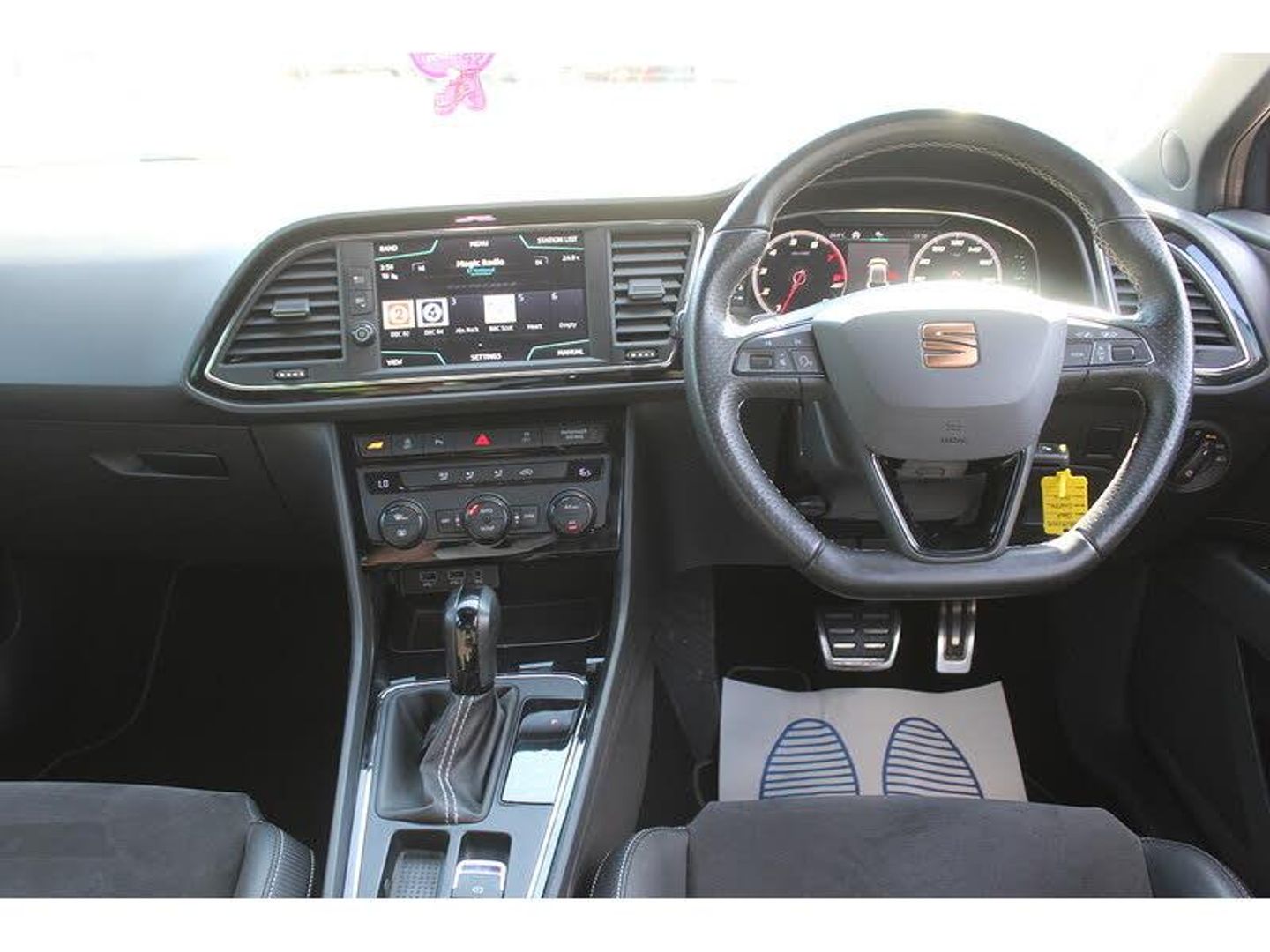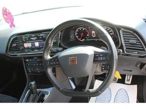 Black Alcantara Sports Seats (Grey stitching),Magnetic Grey metallic,1984 cc 2.0 litres in-line 4 engine with 82.5 mm bore 92.8 mm stroke 9.3 compression ratio variable valve timing/camshaft and four valves per cylinder Engine code: DS4 and 9.3,10.3 inch multi-function display screen(s) Instrument panel 1 and 26.2 8.0 inch touch sensitive multi-function display screen(s) Dashboard 1 and 20.3 Dashboard centre 1,10.3 inch multi-function display screen(s) Instrument panel 1 and 26.2 8.0 inch touch sensitive multi-function display screen(s) Dashboard 1 and 20.3 instrument cluster 1,12v power outlet located in front section front,50 litre 11.0 UK gallon main fuel tank main,ABS,Alloy & leather multi-function steering wheel with tilt adjustment and telescopic adjustment,Ambient lighting,Anticorrosion warranty: 144 months Unlimited miles Unlimited km,Anti-theft protection with interior monitoring,Apps control,Asymmetrically folding rear seats: bench type with space for three people; with zero electric adjustments front,Audio system with digital media card reader touch screen and CD player that reads MP3 CDs ; radio receives AM/FM digital and RDS colour screen,Automatic air conditioning with two climate control zones,Bluetooth includes phone connection and music streaming,Brake assist system,Built-in Apps,Central door locking: Operated by remote Includes windows and dead bolt,Centre armrest between front seats,Centre armrest between rear seats,Charges: VAT [20%] = 4935.00 VED (Standard Rate) = 145.00 FRF = 55.00 VED (First Year 131 - 150 g/km) = 210.00 Additional Charges (GB) = 0.00,Collision warning system which activates seat belts and activates brake lights and includes brake assist visual/acoustic warning and pedestrian avoidance system,Computer includes average speed average fuel consumption instantaneous fuel consumption and range for remaining fuel,Connections for iPod (front) USB (front) auxiliary audio devices (front) and USB (rear),Cruise control,Cup holders for front seats front seats,CUPRA trim level - JATO classification: S1,Data completeness: up to date pricing data up to date data for key leasing items specifications data from official documentation up to date colour & trim data up to date option pricing data and up to date option content data,Date introduced: Model introduced 17 Nov 2016 and Version introduced 16 Jul 2018,Day time running lights,Dealers powertrain warranty 12 months 96560 km 60000 miles,Dealers whole vehicle warranty: 12 months 96560 km 60000 miles,Driver and passenger seat: sports type driver,Driver and passenger seat: sports type passenger,Drivers airbag passengers airbag with de-activation switch driver,Drivers airbag passengers airbag with de-activation switch passenger,Driver selectable electronic responsive suspension,Dual clutch manual sequentialgearbox,Dynamic steering,Eight speakers,Electrically foldable mirrors,Electrical system 12,Electronic brake distribution,Electronic traction control,Emissions: EU6.2 (C and D-Temp) compliant 149 g/km CO2 (max) and 0.033 g/km NOx,Energy recuperation engine,Engine start/stop,Euro NCAP crash test results: Overall: 5.00 Adult occupant: 94.00 Child occupant: 92.00 Pedestrian: 70.00 Safety assist: 71.00 Version tested: Seat Leon 1.6 TDI Reference 5dr HA Date tested: 28 Nov 2012 Euro NCAP,External dimensions: 4281mm long 1816mm wide 1435mm high 2631mm wheelbase 1536mm front track 1510mm rear track 10500mm turning circle (wall to wall) 168.5 inches long 71.5 inches wide 56.5 inches high 103.6 inch wheelbase 60.5 inch front track and 59.4 inch rear track,External temperature,Five door hatchback ; Platform code: MQB Right hand drive,Five seats configured 2+3,Floor console floor,Floor mats,Four disc brakes including four ventilated discs,Front and rear electric windows with one-touch on two windows front,Front and rear electric windows with one-touch on two windows rear,Front and rear radar-type parking distance sensors front,Front and rear radar-type park