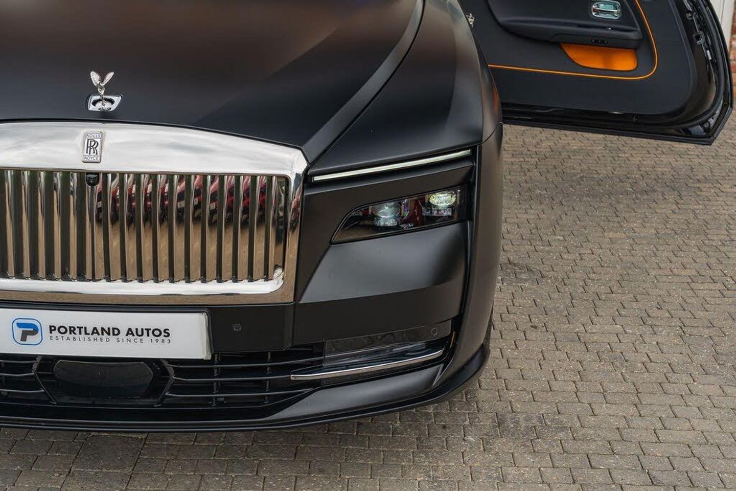 One Owner From New 2024/24 Rolls Royce Spectre In Black Diamond with Black and Mandarin leather Interior. Satin Paint Protection Film (PPF) has been applied to the vehicle and Specification Highlights Include Spectre Package, Shooting Star Headliner, Advanced Driver Systems, Rolls Royce Bespoke Audio and 23 Inch 7 Spoke Part Polished Alloy Wheels. This Vehicle represents a huge discount from its List Price of over £400k and comes with the Balance of its Four Year Rolls Royce Warranty and Service Plan. 2 Keys, HPI Clear, Part Exchange Welcome, Finance available. To view up to 40 photos and a HD Video of this vehicle please visit our website.-Spectre Pack | Shooting Star-Are you looking to sell a premium car? Call 01302 711111 or visit portlandautos.co.uk/sell-your-car