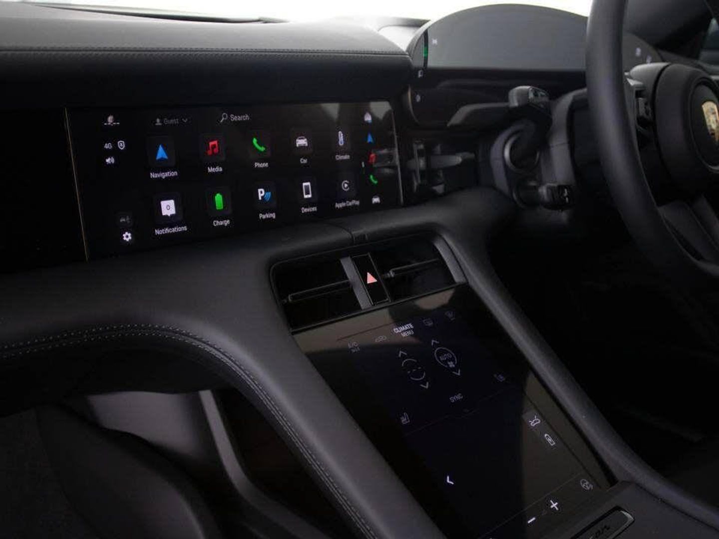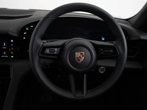 Roof Rails in Black Aluminium, Side Window Trims in Black (high-gloss), Model Designation painted in Black (high-gloss), Inlays painted in Black (high-gloss), Brake Calipers painted in Black (high-gloss), Wheels painted in Black (high-gloss), 21-inch Taycan Exclusive Design Wheels in Black (high-gloss) with Aeroblades, Porsche Crest on Headrests (Front Seats), Adaptive Sports Seats in Front (18-Way, Electric) with Memory Package, 4+1 Seats, Steering wheel heating, Accent Package Black, BOSE® Surround Sound System, HD-Matrix LED Headlights, ‘PORSCHE’ Logo LED Door Courtesy Lights, Panoramic Roof, Privacy Glass, Advanced Climate Control (4-Zone), Surround View with Active Parking Support, Adaptive Cruise Control