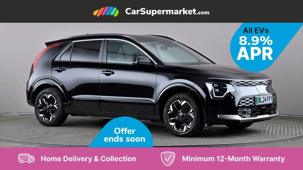 10.25" Supervision colour cluster display,10.25" touchscreen satellite navigation,Apple car play/Android Auto with voice control,Blind spot collision avoidance assist,Charging indicator on dashboard,Digital clock,Drive mode select (Eco, normal, sport, snow),E-call,Emergency stop signalling system,Forward Collision-Avoidance Assist (FCA) 1.5 - City/Pedestrian/Cyclist/Junction turning,Front parking sensors,Highway Driving Assist (HDA),Intelligent speed limit assist,Kia Connect (UVO),Lane Following Assist (LFA),Lane keep assist,Motor driven power steering,Rear cross traffic collision avoidance assist (RCCA),Rear parking sensors,Reversing camera system,Safe exit warning (SEW),Smart cruise control with stop and go functionality,Tailgate,Trip computer with distance/fuel consumption/average speed,Wireless Smartphone charger,11 kW AC onboard charger,Battery heating system,Front Grille Charging Port,Vehicle-to-load (V2L) capability,'Shark fin' mobile antenna,6 speakers,Bluetooth with music streaming,DAB Digital radio,Steering wheel mounted controls,USB port for connection of a media device,Acoustic windshield,All round electric windows with drivers and front passenger auto up/down and safety function,Auto dimming rear view mirror,Automatic defog system,Automatic headlight control system,Black grille with chrome surround,Black window surrounds,Body colour bumpers,Body colour door mirrors,Body colour exterior door handles,Dual LED headlights (low and high projection),Electrically adjustable and heated door mirrors with LED turn indicator,Electrically folding door mirrors,Front and rear chrome skid plates,Front fog lights,Frunk,Gloss black wheel arches,Heated rear window,LED daytime running lights,LED High mounted brake light,LED rear combination lights,Privacy glass - Rear windows and tailgate,Rain sensing front wipers,Rear fog lights,Rear side wing doors,Rear spoiler,Rear wiper,Roof rails,Solar glass windscreen,Standard door scuff plates,Welcome and follow-me home light functionality,Windscreen Washer Level Warning,12v socket in front,12V socket in luggage compartment,3 seat bench in 2nd row,60:40 split remote folding rear seats,Air filter,All-round height adjustable headrests,Artificial leather centre console storage box,Artificial leather steering wheel,Centre console cupholder,Chrome coating interior door handles,Cloth / Artificial leather upholstery,Driver's power adjustable seat,Driver/passenger sunvisors with illuminated vanity mirrors,Drivers seat power lumbar support,Dual zone automatic air conditioning,Front and rear cabin lights,Front and rear door storage,Front passenger 1 x USB-C charging port,Front passenger seat manual adjustments,Glove box,Heated front seats,Heated steering wheel,ISOFIX Child seat top tethers and anchor fixings,Luggage area load cover,Luggage board,Luggage compartment light,Rear centre armrest with cupholder,Rear passenger 2 x USB-C charging ports,Seatback pocket - driver,Seatback pocket - front passenger,Shift by wire SBW,Single front passenger seat,Tilt/telescopic adjustable steering wheel,Ventiliation ducts to rear compartment,Towing pack - Niro,3 point seatbelts on all seats,ABS,Automatic unlocking of doors in case of impact,Curtain and side airbags,Dual shell horn,Electric parking brake with auto hold function,Electronic stability control,Front airbags,Front passenger airbag cut-off switch,Height adjustable front seatbelts,Hill start assist control (HAC),Knee airbags,Regenerative braking paddle shifter with iPedal functionality,Seatbelt reminder warning,Traction control,Tyre pressure monitoring system,Customisable automatic door locking,Customisable automatic door unlocking,Deadlocks,Engine Start/Stop Button with Smart Entry System,Locking wheel nuts,Manual child locks,Rear occupant alert,Smart key with motion sensor,Thatcham category 2 security alarm and immobiliser,Visible vehicle identification number,Warranty - 7 Years/ 100,000 miles,Metal chopped carbon centre fascia,17" Alloy wheels,Tyre mobility kit