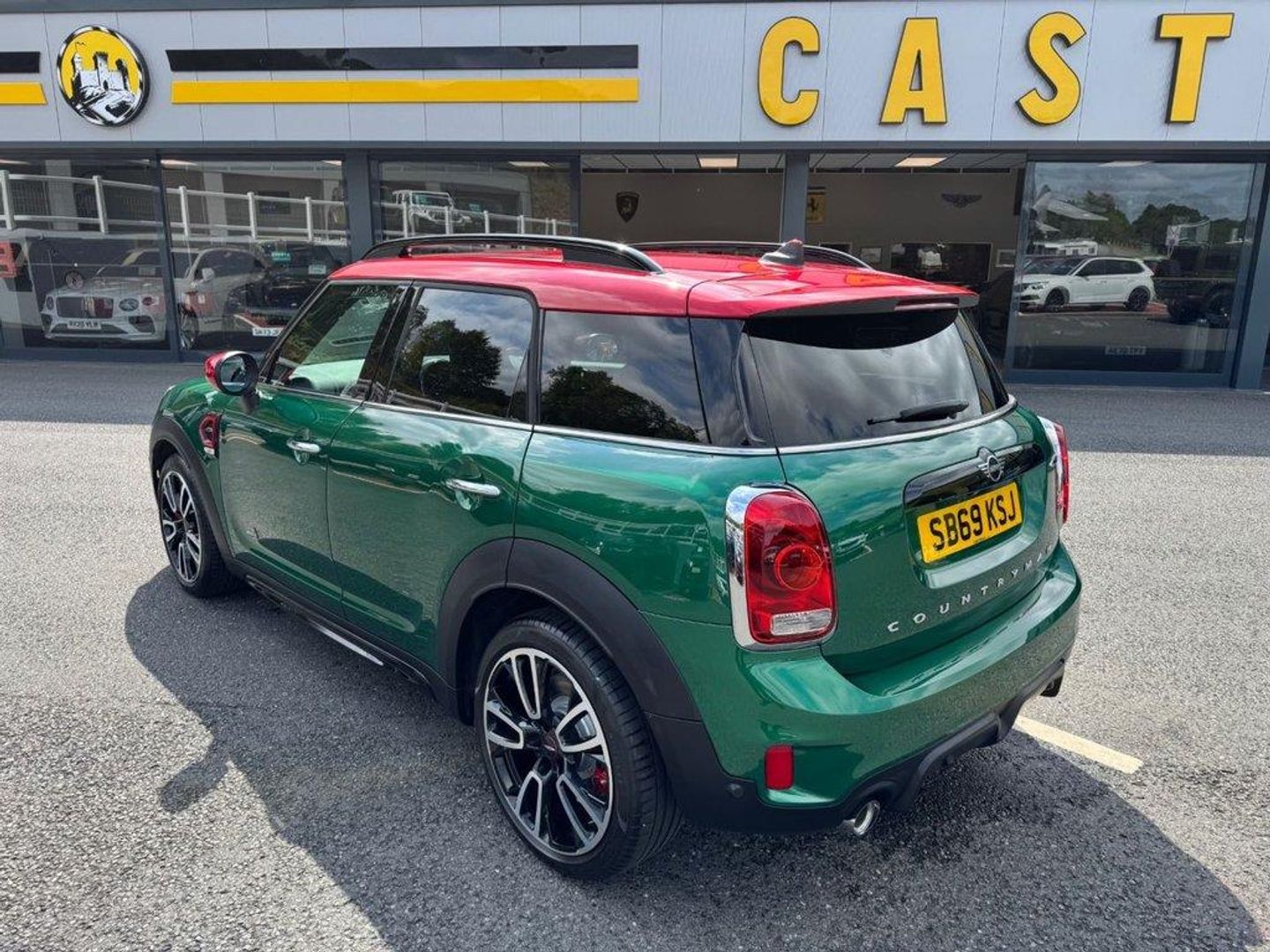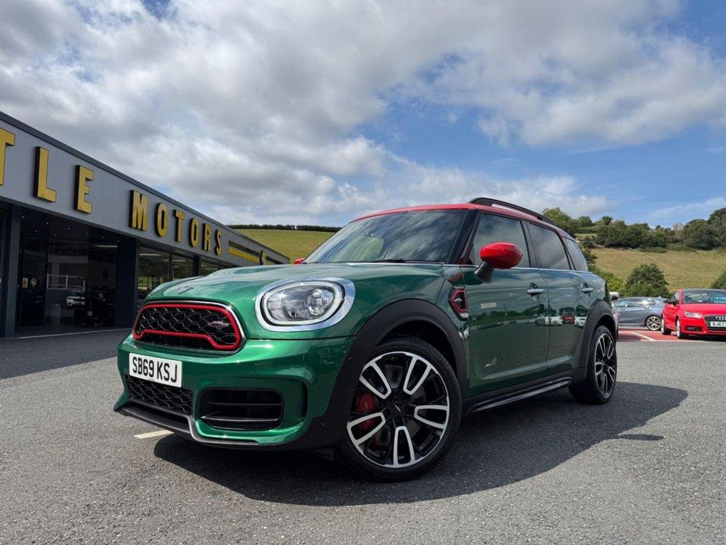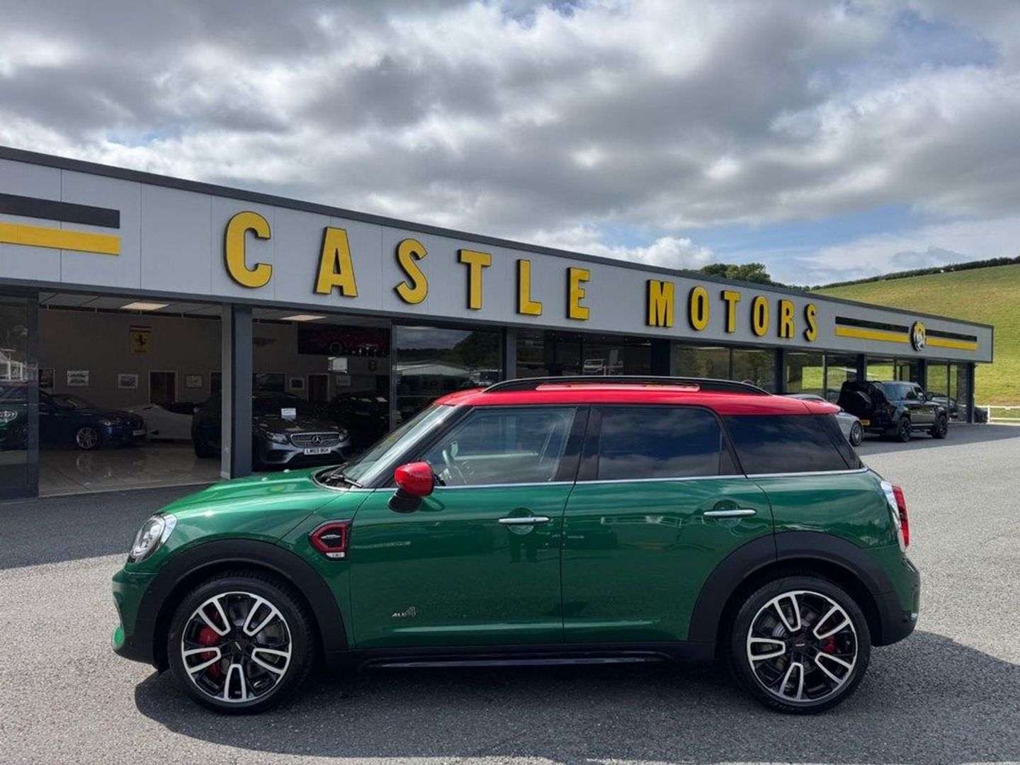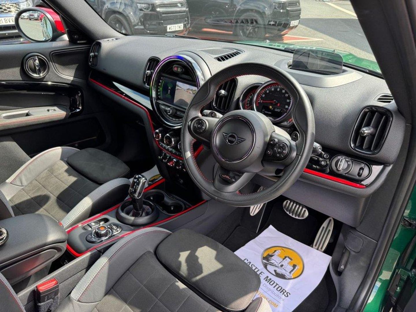JCW Auto ALL4 306PS with approximately £5,000 in options. Metallic British Racing Green with contrast Red Roof, Carbon Black leather and Dinamica/Suede JCW Sports seats, JCW 19 Polished and Black Circuit Spoke wheels, Red calipers, Black Roof rails, heated seats, reversing camera, Harmon Kardon HiFi, Navigation Plus Package , dual climate control AC, interior ambient lighting, JCW multi function steering wheel, MINI Driving Modes, HUD Head Up Display, power tailgate, boot loading protection, Red Stitching and more. Under 26,500 miles, service history and freshly serviced before sale in beautiful condition throughout All of our vehicles are ready for same day drive away. CASTLE MOTORS purpose-built showroom & forecourt has a wide range of cars for sale, including some of the world's most prestigious automobiles. Founded in 1972, we are open 7 days a week. All of our vehicles are presented to the very highest standards possible having gone through our own comprehensive multi-stage preparation. Supplied finance figures are only a guide. Every effort has been made to ensure the accuracy of the above info but errors can occur please check with our sales team. . 12V Socket in Centre Console,17in Sport Brake,18in Alloy Wheels - John Cooper Works Grip Spoke in Black,19in Alloy Wheels - John Cooper Works Circuit Spoke with Run-Flat Tyres,3 Point Seatbelts on all Seats,4 Lashing Eyes in Luggage Compartment,6 Speakers System,Active Guard - Automatic Emergency Braking,Airbags,Alarm System,Anthracite Headlining,Anti-Lock Braking System - ABS,Auto Drive Away Locking,Bluetooth for Compatible Mobile Phone - with Audio Streaming,Bonnet Scoop,Brake Calipers - Red With John Cooper Works Logo,British Racing Green IV,Chrome Highlights,Colour Line - Carbon Black,Comfort Access System,Comfort Plus Pack,Cruise Control with Brake Function,Cupholders,Darkened Rear Glass,Dead-Locking Function,Dinamica-Leather - Carbon Black,Door Sill Strips - Metal with Cooper S,Door Storage Compartments,Dynamic Brake Lights,Dynamic Stability Control - DSC,Electric Windows,Electro-Mechanical Steering with Speed Dependant Steering Assistance,Electronic Handbrake,Electronic Vehicle Immobiliser,FM Tuner and
