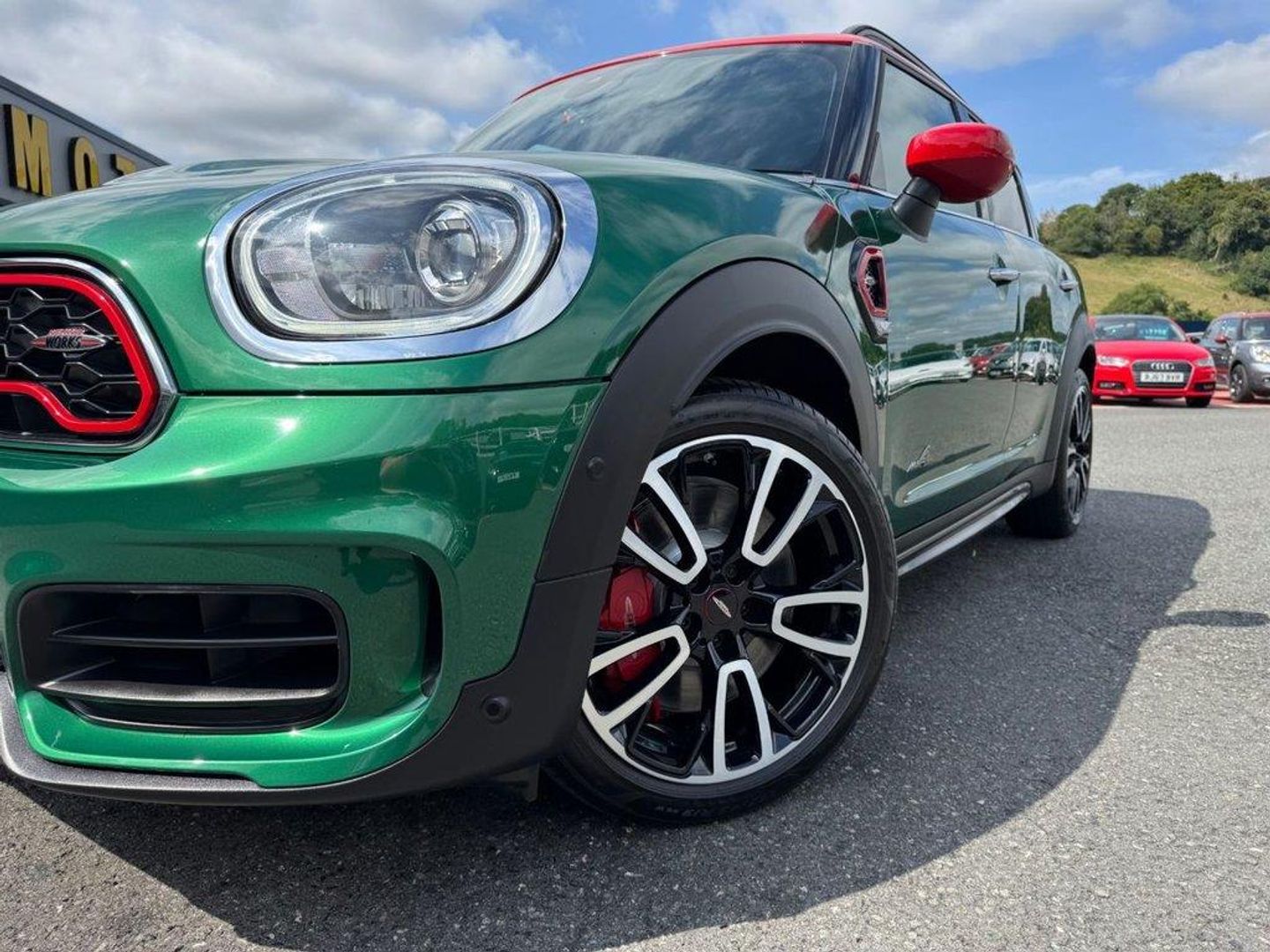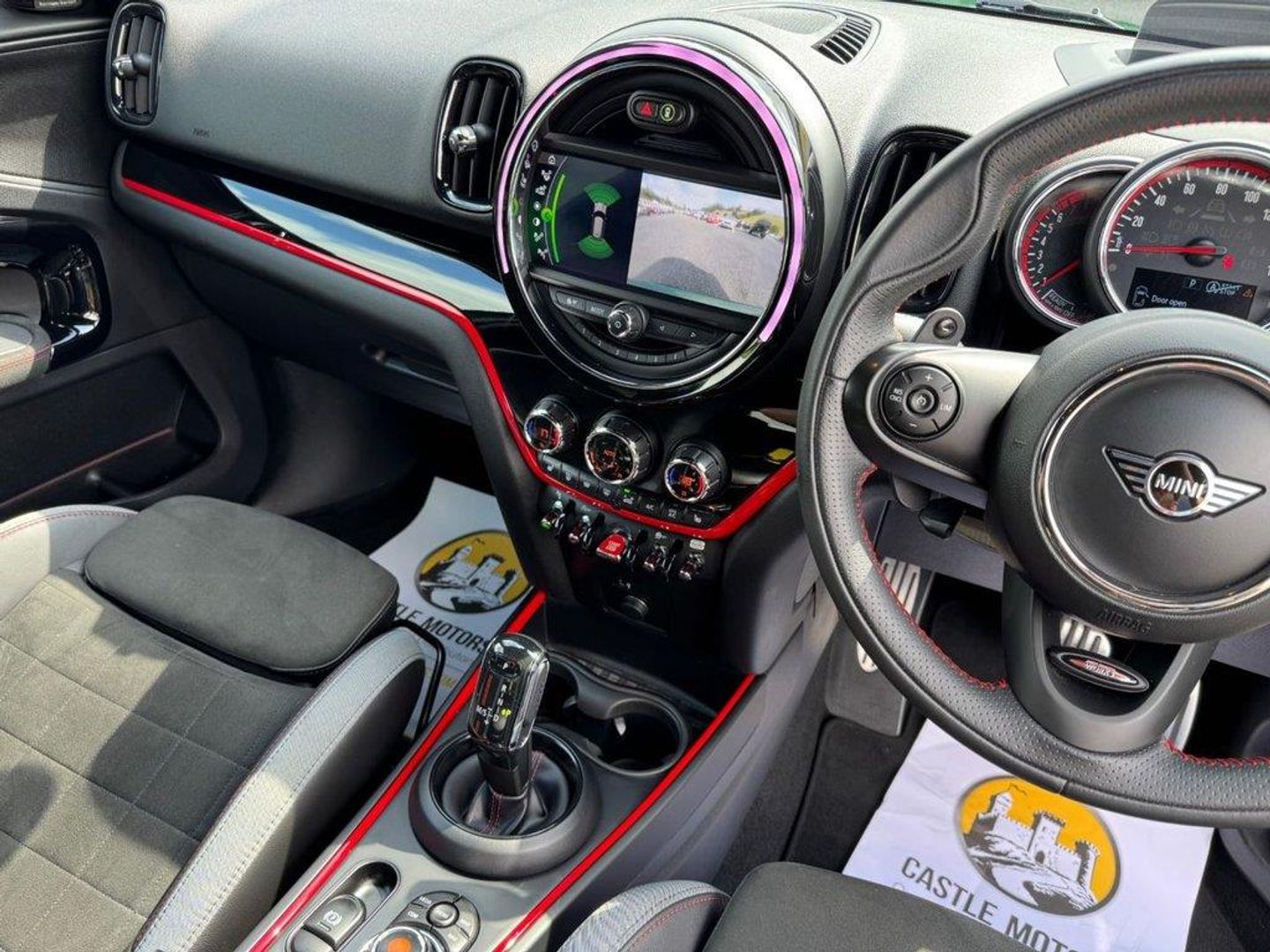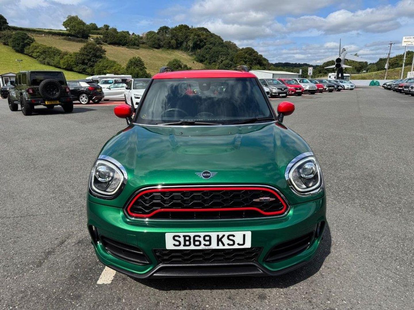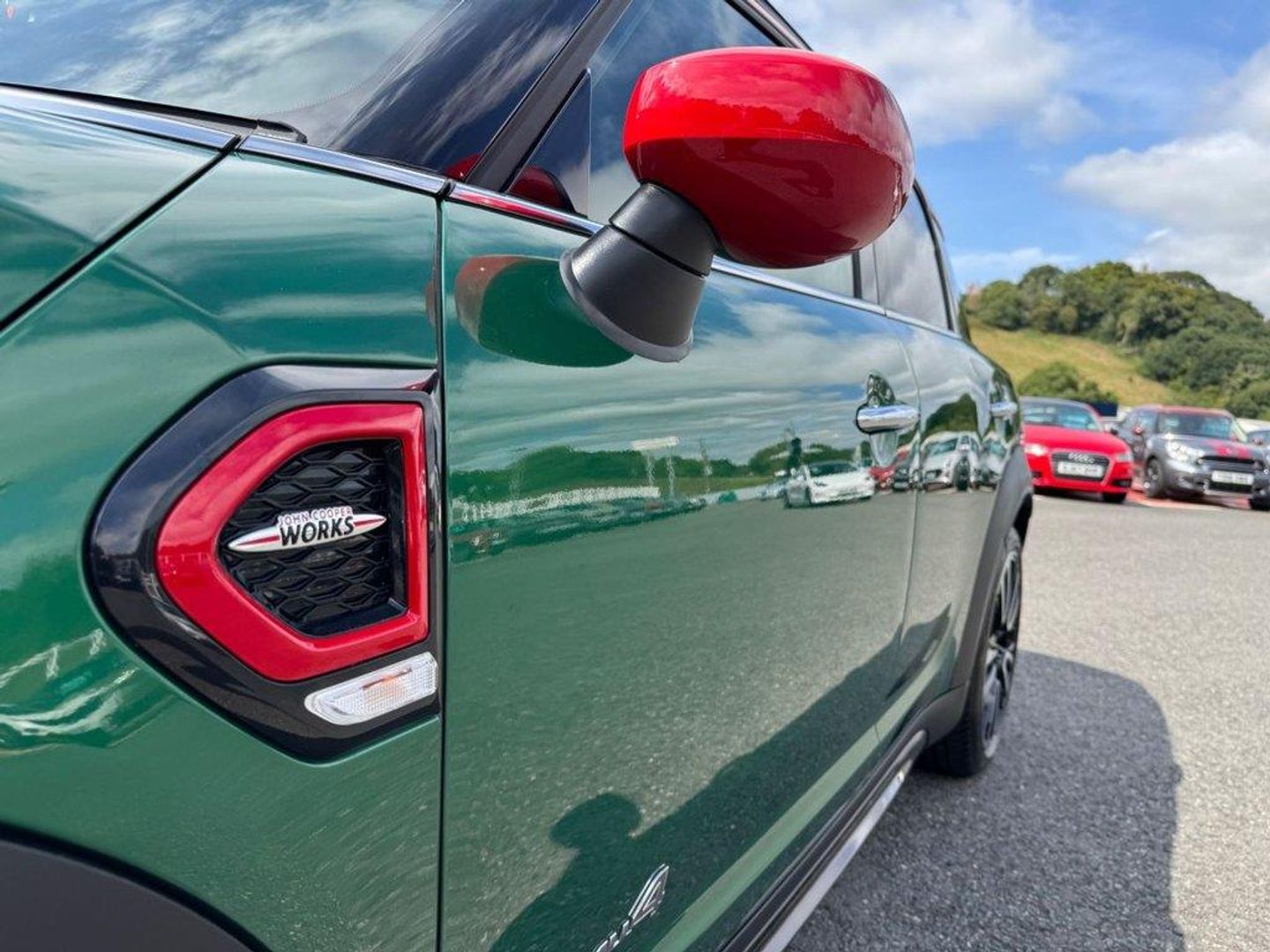 JCW Auto ALL4 306PS with approximately £5,000 in options. Metallic British Racing Green with contrast Red Roof, Carbon Black leather and Dinamica/Suede JCW Sports seats, JCW 19 Polished and Black Circuit Spoke wheels, Red calipers, Black Roof rails, heated seats, reversing camera, Harmon Kardon HiFi, Navigation Plus Package , dual climate control AC, interior ambient lighting, JCW multi function steering wheel, MINI Driving Modes, HUD Head Up Display, power tailgate, boot loading protection, Red Stitching and more. Under 26,500 miles, service history and freshly serviced before sale in beautiful condition throughout All of our vehicles are ready for same day drive away. CASTLE MOTORS purpose-built showroom & forecourt has a wide range of cars for sale, including some of the world's most prestigious automobiles. Founded in 1972, we are open 7 days a week. All of our vehicles are presented to the very highest standards possible having gone through our own comprehensive multi-stage preparation. Supplied finance figures are only a guide. Every effort has been made to ensure the accuracy of the above info but errors can occur please check with our sales team. . 12V Socket in Centre Console,17in Sport Brake,18in Alloy Wheels - John Cooper Works Grip Spoke in Black,19in Alloy Wheels - John Cooper Works Circuit Spoke with Run-Flat Tyres,3 Point Seatbelts on all Seats,4 Lashing Eyes in Luggage Compartment,6 Speakers System,Active Guard - Automatic Emergency Braking,Airbags,Alarm System,Anthracite Headlining,Anti-Lock Braking System - ABS,Auto Drive Away Locking,Bluetooth for Compatible Mobile Phone - with Audio Streaming,Bonnet Scoop,Brake Calipers - Red With John Cooper Works Logo,British Racing Green IV,Chrome Highlights,Colour Line - Carbon Black,Comfort Access System,Comfort Plus Pack,Cruise Control with Brake Function,Cupholders,Darkened Rear Glass,Dead-Locking Function,Dinamica-Leather - Carbon Black,Door Sill Strips - Metal with Cooper S,Door Storage Compartments,Dynamic Brake Lights,Dynamic Stability Control - DSC,Electric Windows,Electro-Mechanical Steering with Speed Dependant Steering Assistance,Electronic Handbrake,Electronic Vehicle Immobiliser,FM Tuner and