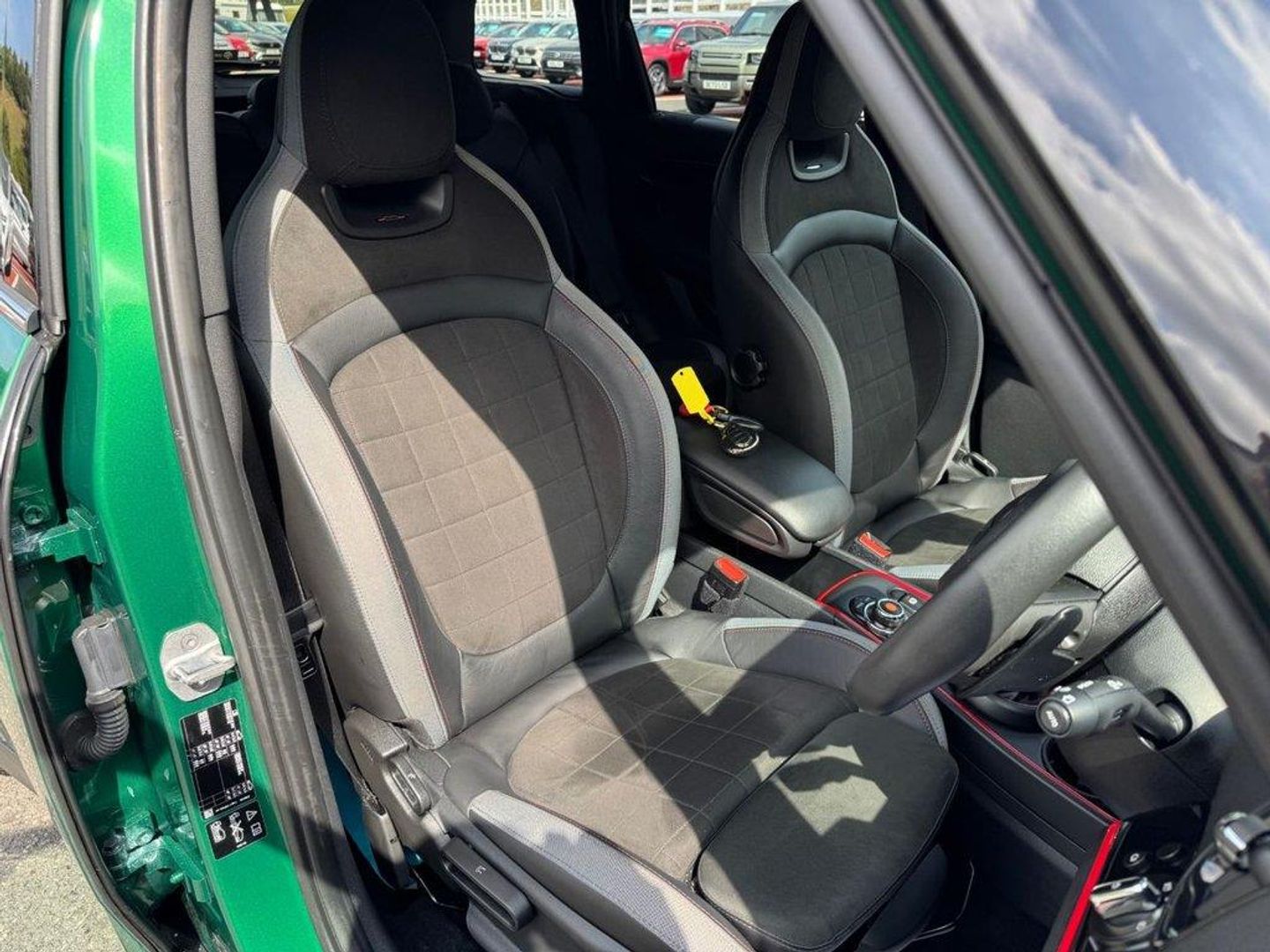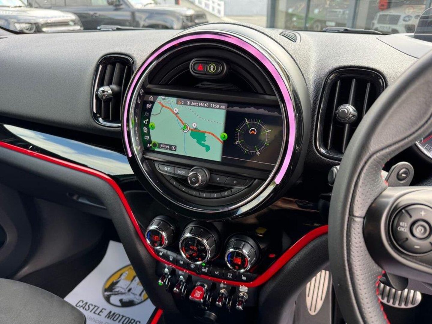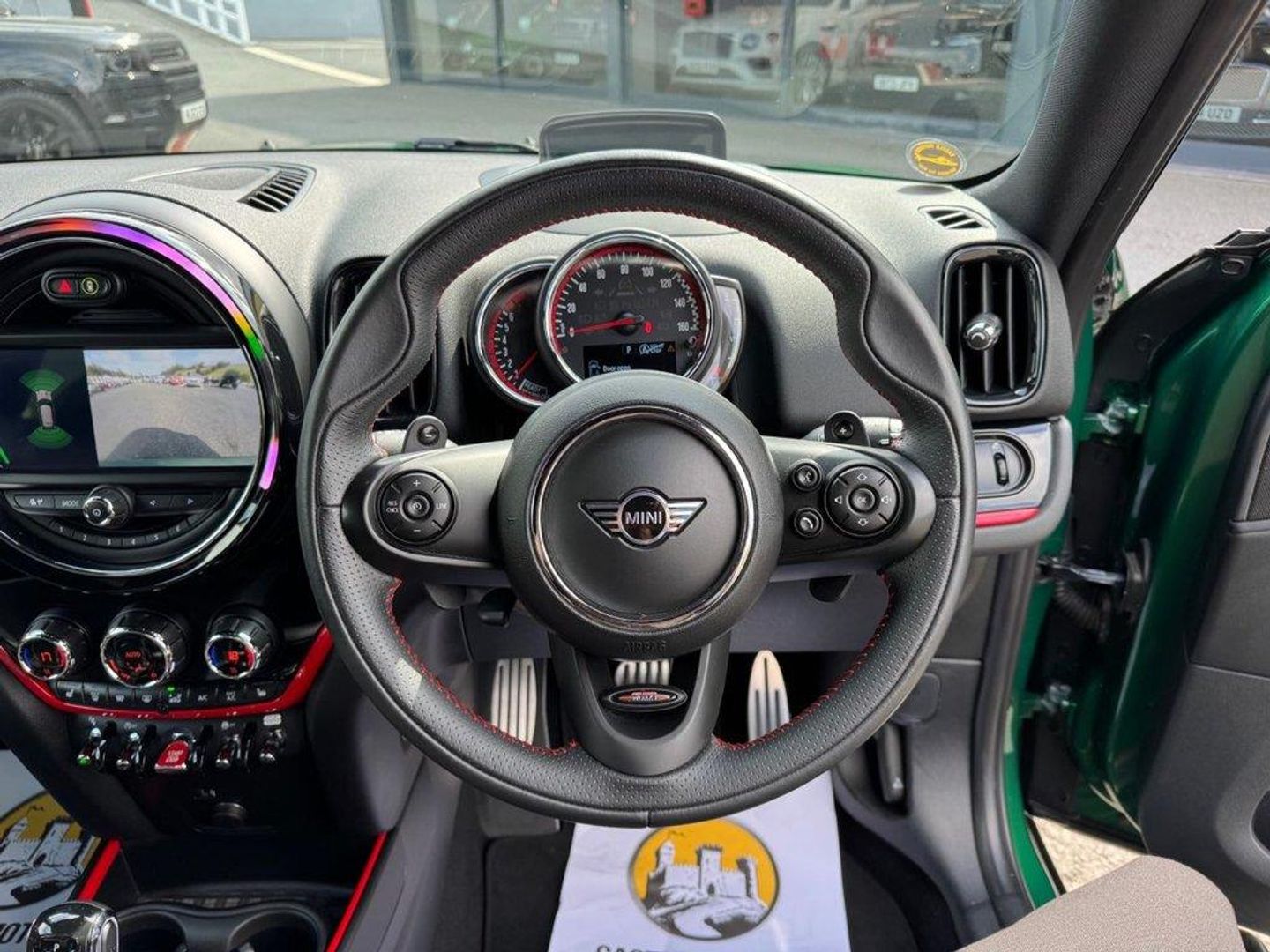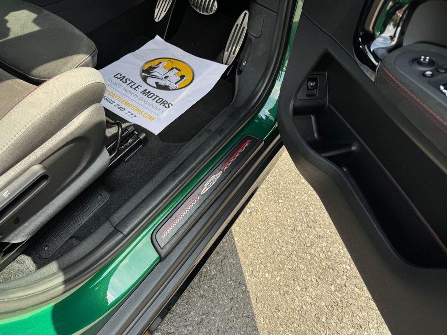 JCW Auto ALL4 306PS with approximately £5,000 in options. Metallic British Racing Green with contrast Red Roof, Carbon Black leather and Dinamica/Suede JCW Sports seats, JCW 19 Polished and Black Circuit Spoke wheels, Red calipers, Black Roof rails, heated seats, reversing camera, Harmon Kardon HiFi, Navigation Plus Package , dual climate control AC, interior ambient lighting, JCW multi function steering wheel, MINI Driving Modes, HUD Head Up Display, power tailgate, boot loading protection, Red Stitching and more. Under 26,500 miles, service history and freshly serviced before sale in beautiful condition throughout All of our vehicles are ready for same day drive away. CASTLE MOTORS purpose-built showroom & forecourt has a wide range of cars for sale, including some of the world's most prestigious automobiles. Founded in 1972, we are open 7 days a week. All of our vehicles are presented to the very highest standards possible having gone through our own comprehensive multi-stage preparation. Supplied finance figures are only a guide. Every effort has been made to ensure the accuracy of the above info but errors can occur please check with our sales team. . 12V Socket in Centre Console,17in Sport Brake,18in Alloy Wheels - John Cooper Works Grip Spoke in Black,19in Alloy Wheels - John Cooper Works Circuit Spoke with Run-Flat Tyres,3 Point Seatbelts on all Seats,4 Lashing Eyes in Luggage Compartment,6 Speakers System,Active Guard - Automatic Emergency Braking,Airbags,Alarm System,Anthracite Headlining,Anti-Lock Braking System - ABS,Auto Drive Away Locking,Bluetooth for Compatible Mobile Phone - with Audio Streaming,Bonnet Scoop,Brake Calipers - Red With John Cooper Works Logo,British Racing Green IV,Chrome Highlights,Colour Line - Carbon Black,Comfort Access System,Comfort Plus Pack,Cruise Control with Brake Function,Cupholders,Darkened Rear Glass,Dead-Locking Function,Dinamica-Leather - Carbon Black,Door Sill Strips - Metal with Cooper S,Door Storage Compartments,Dynamic Brake Lights,Dynamic Stability Control - DSC,Electric Windows,Electro-Mechanical Steering with Speed Dependant Steering Assistance,Electronic Handbrake,Electronic Vehicle Immobiliser,FM Tuner and