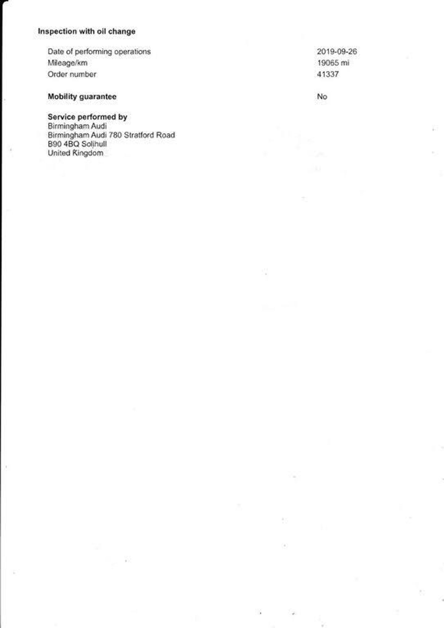 - Mileage