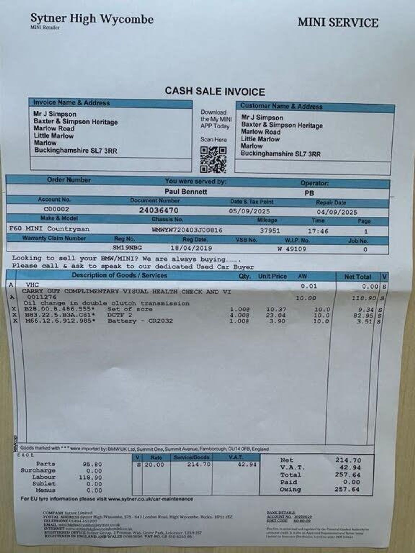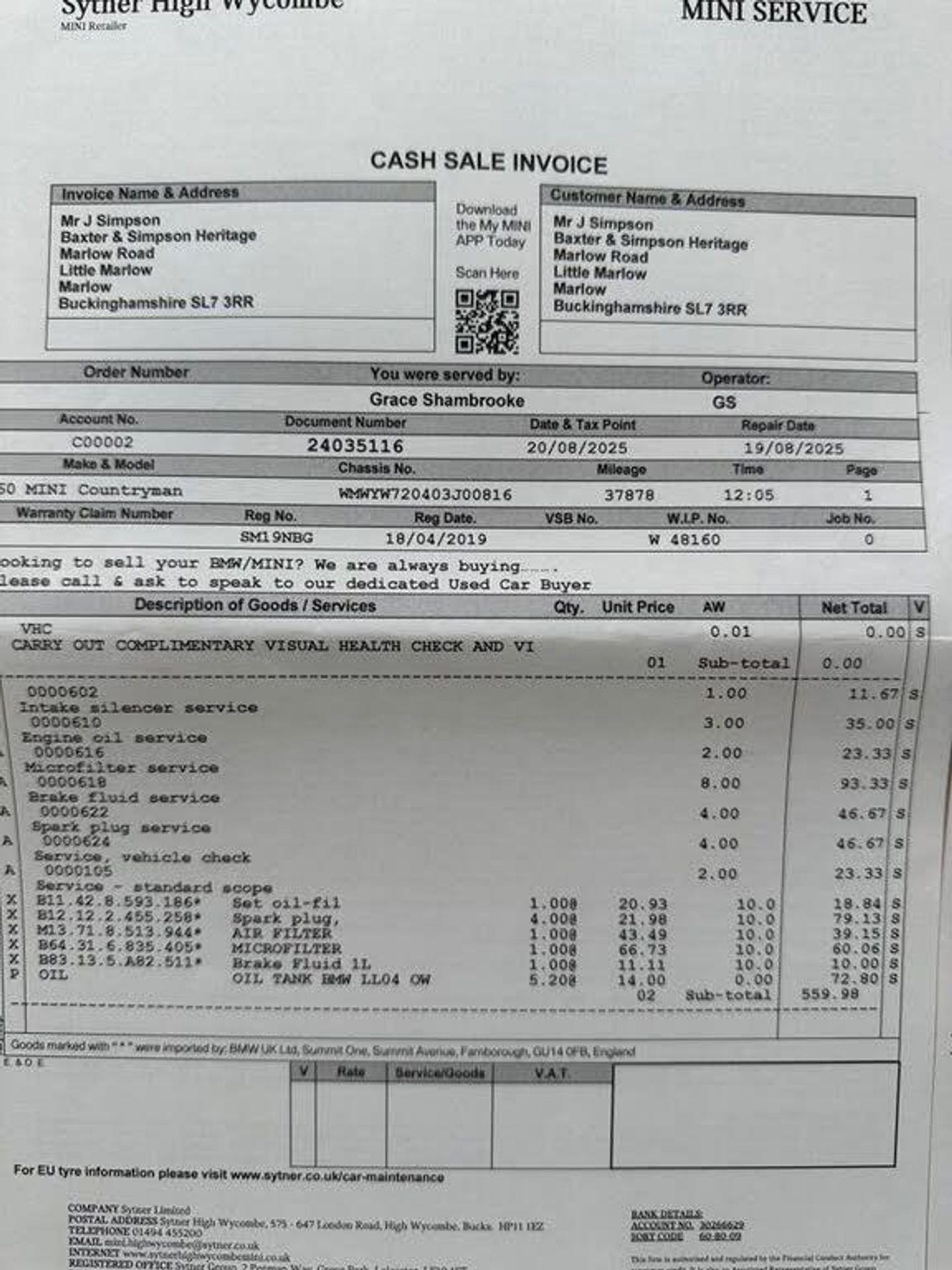 CHECK OUT OVER 400 5 STAR AUTO TRADER REVIEWS FROM OUR CUSTOMERS-LOW DEPOSIT FINANCE AVAILABLE-INCLUDES 6 MONTHS PARTS AND LABOUR WARRANTY We have for sale an excellent condition ULEZ COMPLIANT EURO 6 2019 Mini Countryman 2.0 Cooper S Sport 5dr Automatic 192ps in Spa Grey Metallic with Mini main dealer service history In excellent condition throughout the interior and exterior paint and bodywork. Drives perfect excellent performance combined with excellent fuel consumption Huge specification including with sports seats, air conditioning, Bluetooth phone connection and voice control plus HDD sat nav and music streaming,park assist,19" alloy wheels,darkened rear glass,white roof and door Supplied fully serviced at Sytner Mini including a gearbox oil change and new brakes front and rear plus MOT until May 2026 Supplied with 6 months parts and labour warranty plus roadside recovery any independent inspection welcome all vehicles taken in part exchange DELIVERY AVAILABLE ALL UK MAINLAND AND ISLANDS Check out our 5 star reviews on Autotrader which show you can buy with complete confidence. All vehicles under 10 years old with less than 100,000 miles have 6 months comprehensive parts and labour warranty, (3 months warranty over 10yr/100k) Flexible competitive finance plans 9.9% APR subject to status £Nil deposit available, same day decision. All debit cards accepted Top prices paid for part exchange. With over 60 years experience in the franchise dealer network, Baxter and Simpson know the importance of providing a first class service. All vehicles are prepared to a high standard, mechanically inspected and if needed, serviced prior to delivery. Minimum 6 months MOT. Independent inspection welcome. Full HPI Experian Check supplied. Test drives available. VIEWING IS STRICTLY BY APPOINTMENT ONLY, we are located on the A1455 just 2 minutes from the Marlow bypass 10 minutes from the M40 High Wycombe junction and 15 minutes from junction 8/9 on the M4