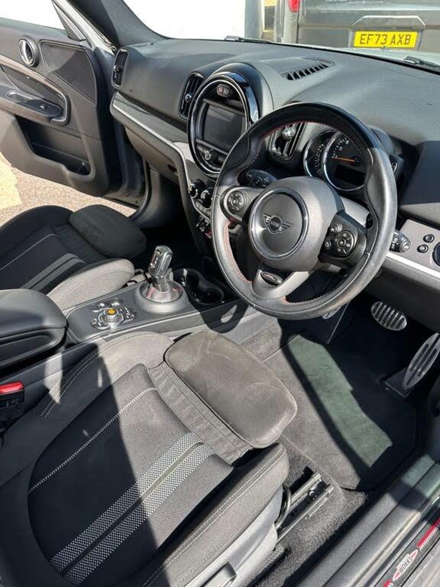 12V Socket in Centre Console, 18in Alloy Wheels - John Cooper Works Thrill Spoke, 3 Point Seatbelts on all Seats, 4 Lashing Eyes in Luggage Compartment, 6 Speakers System, Active Guard - Automatic Emergency Braking, Air Conditioning - Manual, Airbags, Alarm System, Anthracite Headlining, Anti-Lock Braking System - ABS, Auto Drive Away Locking, Bluetooth for Compatible Mobile Phone - with Audio Streaming, Bonnet Scoop, Chrome Highlights, Colour Line - Carbon Black, Cruise Control with Brake Function, Cupholders, Daytime Driving Lights, Dead-Locking Function, Door Sill Strips - Metal with Cooper S, Door Storage Compartments, Dynamic Brake Lights, Dynamic Stability Control - DSC, Electric Windows, Electro-Mechanical Steering with Speed Dependant Steering Assistance, Electronic Handbrake, Electronic Vehicle Immobiliser, Exhaust Tailpipe - Left with Chrome Finisher, FM Tuner and DAB Digital Radio, Folding Rear Seats 40-20-40, Fuel Filler Cap in Chrome, Gearshift Paddles, Glove Compartment, Headliner, Heated Rear Window, Heated Windscreen Washer Jets, Instrument Cluster, Interior Lighting, Interior Lighting - Including Reading Lights, Interior Surfaces - Grey Chequered, John Cooper Works Aerodynamic Kit, John Cooper Works Leather Steering Wheel, John Cooper Works Roof Spoiler, LED Reading Lights - Vanity Mirror Lights - Front Footwell Lights - Spotlights on Front Seats, Leatherette Gearshift Lever and Handbrake Gaiters, MINI E-Call, MINI Excitement Pack, MINI TeleServices, Comfort Pack, Mechanical Seat Adjustment, Dinamica-Cloth - Carbon Black, Model Logo, Multifunction Controls for Steering Wheel, Navigation Pack, Moonwalk Grey, On-Board Computer, Passenger Seat Height Adjustable, Roof and Mirror Caps - White, Performance Control, Radiator Grille - Chrome Border with Honeycomb Structure - including S Badge, Rain Sensor and Automatic Headlight Activation, Rear Fog Light, Rear ISOFIX, Rear Parking Distance Control, Rear Window Wiper, Roof Rails - Silver, Roof and Mirror Caps - Body-Colour, Security Locking Wheel Bolts, Side Scuttle Panels with Integrated Indicators, Start-Stop Toggle including Keyless Go, Steering Column Height and Length Adjustment, Sun Visor with Vanity Mirrors, Sun-Heat Protection Glass, Tool Kit in Luggage Compartment, Twin Exhaust Tailpipes, Two-Tone Horn, Tyre Pressure Monitoring System, White Direction Indicators Lights