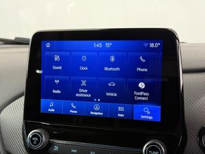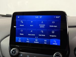 19in Alloy Wheels - 5-Spoke - Magnetite Machined Finish, 6-Way Manual Driver Seat with Lumbar Adjustment, 6-Way Manual Passenger Seat with Lumbar Adjustment, ABS - Anti-lock Braking System, Acoustic Laminated Windscreen, Active Grille Shutter, Alloy Sports Pedals, Automatic Dimming Rear View Mirror, Automatic Headlights with Rain-Sensing Wipers and Auto High Beam, B&O Premium Audio System and Ford SYNC 3 Navigation, Black Contrast Roof, Carbon-Look Interior Deco Spears, Centre Console - Premium with Openable Stowage Area with USB Connectivity - 2 Cupholders and 12v Power Point, Chrome Dual Exhaust Pipe, Courtesy Lights - Ambient LED Courtesy Lighting - Single Colour, Cruise Control with Intelligent Speed Assist, ESC - Electronic Stability Control and Hill Start Assist, Electric Windows - Front and Rear, Electronic Air Temperature Control - EATC, Emergency Brake Warning - Automatic Hazard Warning Lights, Engine Sound Enhancer, First Aid Kit Strap, Fixed LED Signature Headlamps, Ford KeyFree System, Ford MegaBox Extended Bootspace, Ford Power Starter Button, Front Bumper - Unique ST Design - Body Colour, Front Fog Lights with Cornering lights and LED Rear Lamps, Front Parking Sensors, Full Digital 12.3in Instrument Cluster, Gearshift Knob - Soft Feel with Metal Grey Stitching, Handbrake - Black Sensico Trimmed with Stitching, Headliner - Deluxe, Instrument Panel - High Level, Intelligent Speed Assistance, Lane Keeping Aid with Lane Departure Warning, Large Rear Spoiler - Body Colour with Centre High Mounted Stop Light, Locking Wheel Nuts, Lower Bodyside Moulding - Painted Accents - Painted Door Spears in High Gloss Black, Post Collision Braking, Power Steering, Power-Foldable Heated Door Mirrors with Puddle Lamps and Puma Logo Projection, Pre-Collision Assist with Autonomous Emergency Braking and Pedestrian-Cyclist Detection, Privacy Glass, Puma Badge, Quickclear Heated Windscreen, Rear Bumper - ST Unique, Rear Parking Sensors, Rear Seats - 2-Way Head Restraint Up-Down, Rear Seats - Second Row 60-40 Folding Seats, Red Brake Calipers, Remote Central-Double Locking, Restrain Device Pack, ST Badge, ST Flat Bottom Steering Wheel with Metal Grey Stitching, ST Front and Rear Mats, ST Logo Projection - From Door Mirrors, ST Suspension, Selectable Driver Modes - Normal - Eco - Sport - Track, Soft-feel Gearshift Boot with Silver Stitching, Speed Limiter, Tailgate - Manual, Thatcham Alarm, Traction Control and Emergency Braking Assistance, Trip-Fuel Computer, Tyre Inflation Kit, Tyre Pressure Monitoring System - TPMS, Unique ST Elements to Front and Rear Body Styling Kit, Unique ST Gear Shift Knob, Unique ST Scuff Plates, Winter Pack, Wireless Charging Pad with Electronic Air Temperature Control EATC, Partial Sensico - Ebony with Metal Grey Stitching