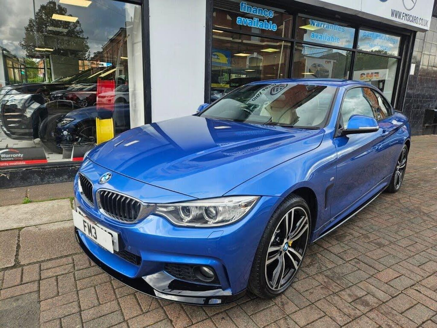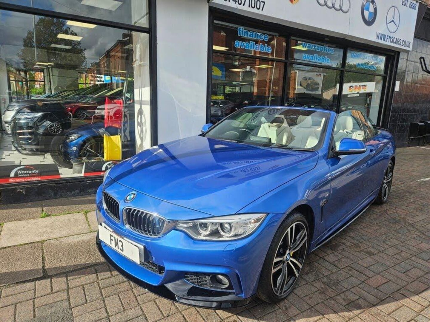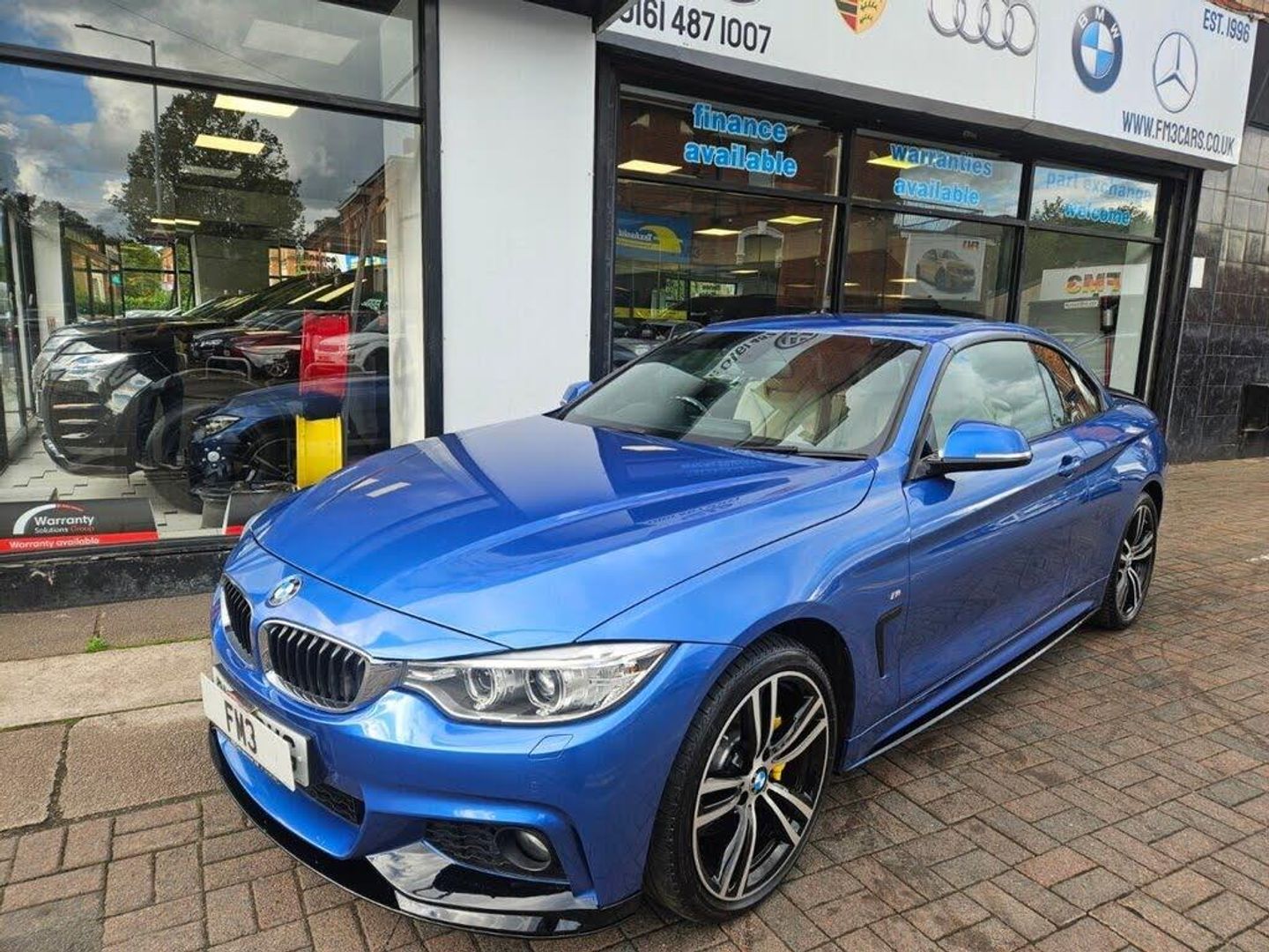 WE AT FM3 CARS WOULD LIKE TO OFFER YOU ANOTHER GREAT EXAMPLE BMW 4 SERIES 3.0 435D XDRIVE M SPORT CONVERTIBLE 2 Door, 313 BHP, Finished in Metallic Blue with Full Cream Leather Interior, M Sport Interior, Heated Front Seats, 19" Alloys, SAT NAV, Radio/USB/CD/DAB, HARMAN/KARDON Sound System, I-Drive, 2 Keys, Service History, Front and Rear Parking Sensors, Cruise Control, Dual Zone Climate Control, Electric Heated Mirrors. UK Main Land Delivery and Warranty Options Available, Reserve this car today with only £199 deposit. All of our cars come provided with a service and MOT. HPI reports are available for all vehicles. Warranties available, subject to suit each individual vehicle. We partner with a wide variety of finance companies, decisions can be made within 60 seconds. Drive your dream car away within 1hour. 5 day drive away insurance available at an additional cost. All part exchanges welcome. Tel; 0161 487 1007. We do take great care in describing the vehicle, its features and history, but errors can be made. Please feel free to ask the sales staff for any particular feature or detail you are not sure about before purchase, as this can not be rectified after purchase.