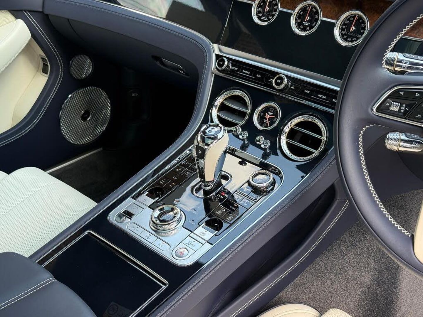 12V Power Socket in Boot, 22in Alloy Wheels - Ten Spoke - Black Painted and Bright Machined, 4G LTE Telephone Module, 60 GB Solid-State Drive - 10GB Available User Space, Acoustic Heat-Insulating Front Screen, Acoustic Side Glass, Adaptive Brake Lights, Air Ionizer, Airbag - Driver, Airbag - Passenger, Airbags - Front Side, Alarm and Immobiliser, Apple Carplay, Azure Exterior Fender Badges, Azure Seat Emblems, Azure Treadplates, Azure Unique Fascia Badge, BENTLEY Lettering on Boot, Battery Charger, Bentley Analogue Clock with Plain Bezel, Bentley Dynamic Ride System, Bentley GPS Tracking System Provision, Bentley Signature Audio, Black - Chrome Bonnet and Boot Bentley Wing Badges, Black Gloss Matrix Grille with Chrome Surround and Vertical Vanes, Black Seat Belt Buckles, Blind Spot Warning, Bluetooth and Wi-Fi Audio Streaming, Boot Carpet in Beluga, Boot Lid Down Lighters, Brake Pad Wear Indicator, Bright Boot Finisher, Bright Chrome Matrix Style Grille to Lower Bumper Apertures, Bright Wing Vent with Black Ribbed Matrix, City Specification, Collision Prevention Assist, Colour Specification, Contrast Stitching, Deep Pile Carpets - Matched to Main or Secondary Hide, Deep Pile Overmats - Front, Dinamica Headlining, Drive Dynamics Mode, Dynamic Ride-Height Control -Auto Adjust at Speed and Ground Clearance Function, ESP - Electronic Stability Programme, Electric Tilt and Reach Adjustment Steering Column with Memory and Easy Entry Functions, Electric Windows - Front, Electrically Adjustable Door Mirrors with Heating - Power Fold - Memory and Dip on Reverse Functions, Exit Warning, Exterior Illuminated Treadplate with BENTLEY Lettering, Exterior Mirror Housings - Body Coloured, Footwell Illumination and Ambient Lighting, Front Screen Infotainment System with 12.3in High Resolution Capacitive Touchscreen Display, Front Seat Comfort Specification, Front Seats - Electric 24-Way Adjustment with Heating - Ventilation - Massage - Adjustable Bolster Function and Two Memory Positions, Front and Rear Park Distance Control, Full LED Matrix Headlamps with High Beam Assist, Full LED Supplementary Lamps and Tail Lamps, Harmony Diamond Quilt Specification, Harmony Diamond Quilt to Seats - Door Castings and Rear Quarter Panels, Heated Rear Screen, Hidden Antenna, Inductive Phone Charger, Jewel Fuel and Oil Filler Caps, Key Box - Matched to Colour Split, Keyless Entry and Engine Start Button, Leather-Trimmed Gear Lever, Lockable Glovebox, Metal Bulls-Eye Vents with Chrome Organ Stops, Mood Lighting Specification, Multi-Collision Brake, Multi-zone Automatic Climate Control System, Online Real Time Traffic Information, POI - Search, Panoramic Glass Roof, Park Assist, Polished Brightware to Side Windows, Power Latches to the Doors and Boot, Pre-Crash - Rear, Pre-Sense Braking System - Bentley Safeguard, Quad Oval Exhaust Finishers, Rain Sensing Windscreen Wipers, Reversing Camera with Graphic Screen Representation, Satellite Navigation, Single Front Armrest - Fore-Aft Slide - with Stowage Inc 12V Sockets and Two USB Charging Points, Speed Sensitive Power Steering, Sport Pedals, Standard Brakes with Black Calipers, Steering Wheel - 3 Spoke Single Tone Hide Trimmed - Heated, Steering Wheel Mounted Gearshift Paddles, Stowage to Front Doors - Centre Console and Under Centre Armrest, Sun Visors with Illuminated Vanity Mirrors, TPMS - Electronic Tyre Pressure Monitoring System, Three Chamber Air Suspension with Continuous Damping Control - CDC, Torque Vectoring by Brake, Touring Specification, Treadplate - Illuminated, Two Cup Holders to Rear Console, Two Rear Seats with Centre Stowage inc 12V Socket and Two USB Charging Points, Veneer - Open Pore Crown Cut Walnut, Welcome Lighting, 22in Alloy Wheels - Five Open Spoke - Black with Polished Edge, Diamond Knurling Specification, LED Welcome Lamps, Moroccan Blue, Naim for Bentley, Veneer - Dual Finish - Burr Walnut over Grand Black, Bentley Rotating Display, Contrast Binding to Carpet Overmats