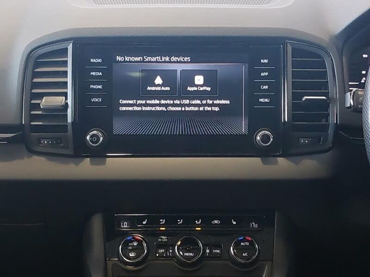 Light Pack - Karoq, LED Interior lighting pack with Skoda welcome logo - Karoq, SmartLink wireless for Apple and wired for Android, Virtual Cockpit - 10.25" digital display, Wireless smartphone charging, 8" Digital display, USB C Port x 2 in front centre console, DAB radio with Bluetooth, USB connection, Panoramic sliding sunroof, Privacy glass, LED daytime running lights, 12V socket in boot, 12v socket in front centre armrest with storage compartment and rear air vents, Tyre pressure monitor, Keyless entry and start/stop, 19" Sagittarius anthracite alloy wheels