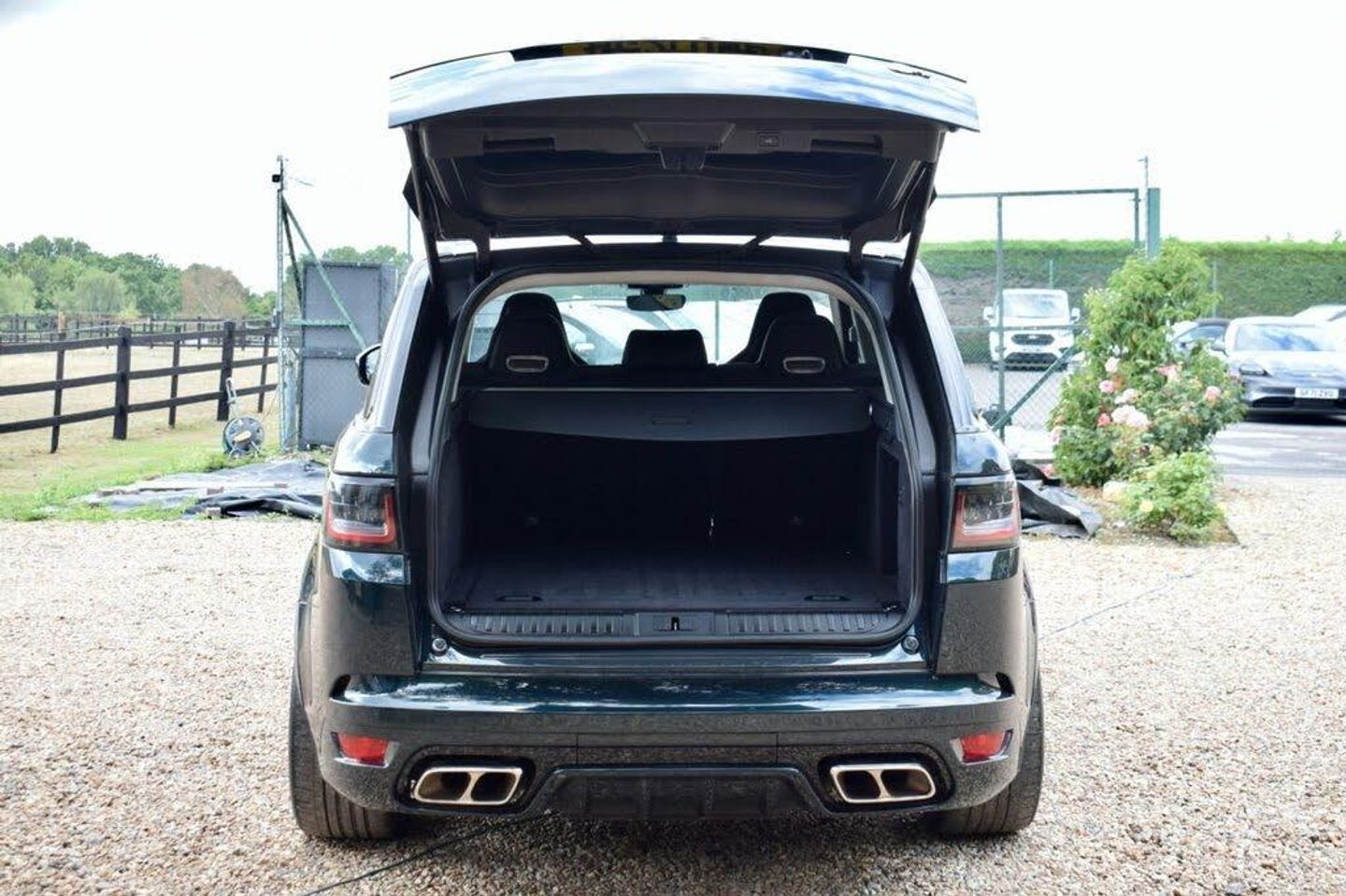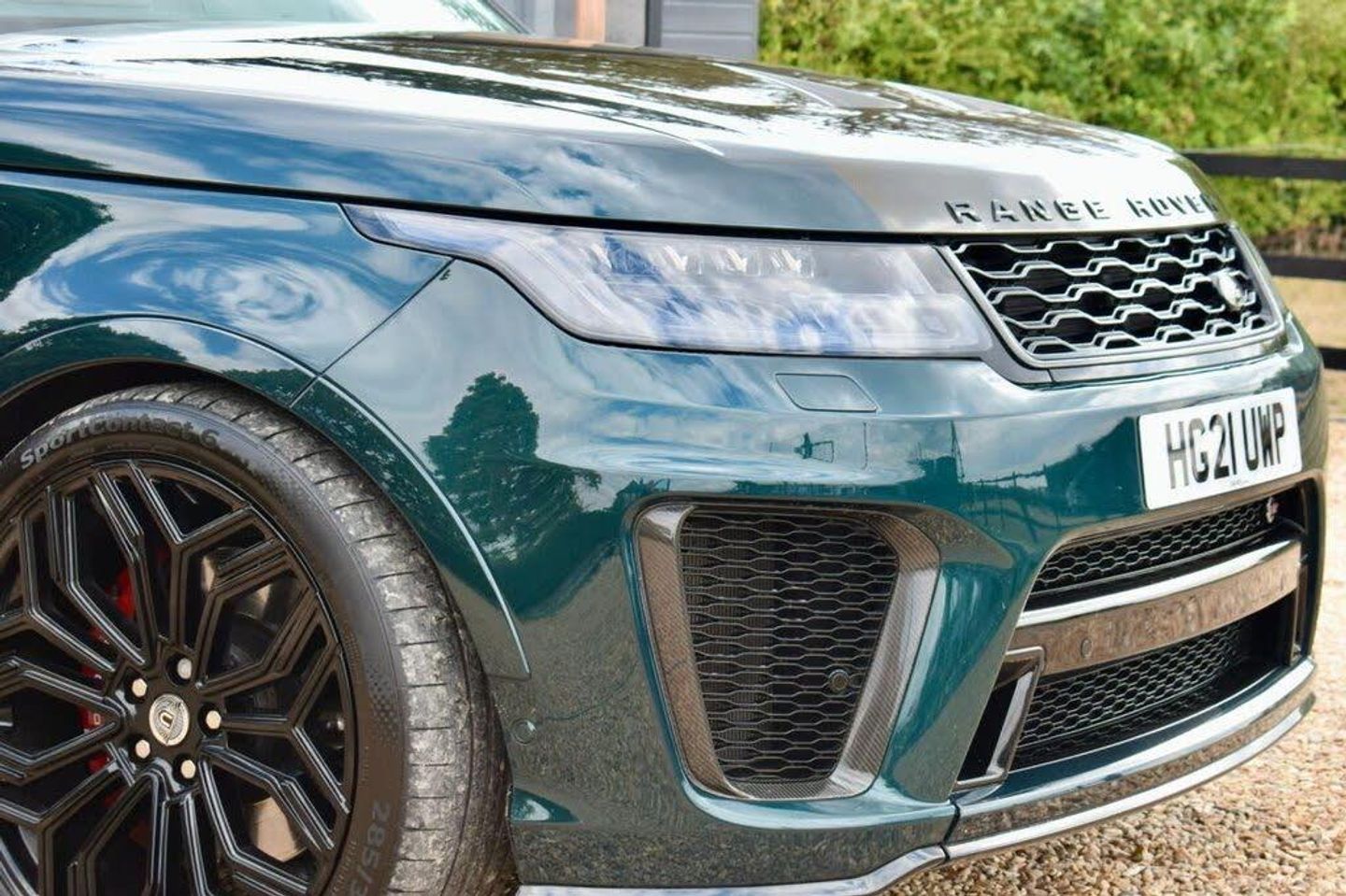 12V Power Socket, 21in Alloy Wheels - 5 Split Spoke Style 5091 with Satin Polish Finish, 22in Alloy Wheels Urban with Gloss Black Finish, 360 Degree Parking Aid, 60-40 Folding Rear Seats, ABS - Anti Lock Braking System, Active Exhaust Control, Adaptive Cruise Control with Stop and Go, Adaptive Dynamics, All Terrain lnfo Centre, Aluminium Bonnet, Aluminium Gearshift Paddles, Android Auto, Apple CarPlay, ATPC - All Terrain Progress Control, Auto-Dimming Interior Mirror, Auto-Dimming Power Fold - Heated Door Mirrors with Memory and Approach Lights, Automatic Headlights, Blind Spot Monitor, Bluetooth Connectivity, Body Coloured Side Sills and Bumper Corners, Bonnet - Exposed Carbon Fibre, Brake Pre-fill, Bright Metal Pedals, British Racing Green 5, CBC - Cornering Brake Control, Centre Console with Armrest, Clear Exit Monitor, Configurable Dynamics, Configurable Interior Mood Lighting, Contrast Painted Roof - Narvik Black, Customer Configurable Autolock, Customer Configurable Single Point Entry, DAB - Digital Audio Broadcast, Driver and Passenger Airbags, Driver Condition Monitor, DSC - Dynamic Stability Control, EBA - Emergency Brake Assist, EBD - Electronic Brake-Force Distribution, Electric Windows with One-Touch Open-Close and Anti-Trap, Electrically Adjustable Steering Column, Electronic Active Differential with Torque Vectoring by Braking, Emergency Braking, EPAS - Electronic Power Assisted Steering, EPB - Electronic Park Brake, ETC - Electronic Traction Control, Extended Leather Upgrade, Extended Satin Brushed Aluminium Trim Finisher, Follow Me Home Lighting, Front and Rear Cupholders, Front and Rear Grab Handles, Front and Rear Recovery Eyes, Front Door Storage Space, Glovebox - Lockable, Gradient Acceleration Control - GAC, Gradient Release Control, HDC - Hill Descent Control, Heated Front and Rear Seats, Heated Rear Window, Heated Steering Wheel, Heated Windscreen with Heated Washer Jets, High Speed Emergency Braking, Hill Launch Assist, Illuminated Metal Treadplates with Brand-Name Script, InControl Apps, InControl Protect, Interactive Driver Display, Intrusion Sensor, ISOFIX Child Seat Anchor Points, Keyless Entry, Laminated Acoustic Front and Toughened Rear Side Glass, Lane Departure Warning, Lightweight Exhaust System, Loadspace Compartment Light, Loadspace Cover, Loadspace Mounting Provisions, Locking Wheel Nuts, Low Traction Launch, Meridian Surround Sound System 825W, Navigation Pro, Non Smokers Pack, Pixel LED Headlights with Signature DRL, Power Operated Child Locks, Powered Tailgate, Premium Carpet Mats, Pro Services and Wi-Fi Hotspot, Push Button Start, Rain Sensing Windscreen Wipers, Rear Bumper with Integrated Quad Exhaust Finishers, Rear Centre Armrest, Rear Fog Lights, Rear Traffic Monitor, Rear View Camera, Red SV Painted Brake Calipers, Remote Premium, RSC - Roll Stability Control, Seat Belt Pre-Tensioners, Secure Tracker Pro - 12 Month Subscription, Side Repeater Indicators in Mirror, Sliding Panoramic Roof, Smartphone Pack, Sports Suspension with Dynamic Response, Standard Roof, Sunvisors with Vanity Mirrors, SVR Badge, SVR Engine Cover, SVR Exterior Styling, SVR Leather Steering Wheel, SVR Performance Seats, Switchable Sports Exhaust, Terrain Response 2 with Dynamic Program, Three-Zone Climate Control, Touch Pro Duo, TPMS - Tyre Pressure Monitoring System, Traffic Sign Recognition and Adaptive Speed Limiter, TSA - Trailer Stability Assist, Twin Speed Transfer Box - High-Low Range, Tyre Repair System