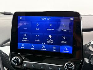 17in Alloy Wheels - 10-Spoke - Absolute Black Machined Finished, 4.2in Colour TFT Analogue Instrument Cluster, ABS - Anti-lock Braking System, Acoustic Laminated Windscreen, Active Grille Shutter, Automatic Dimming Rear View Mirror, Automatic Headlights with Rain-Sensing Wipers and Auto High Beam, Brighter Upper Door Frame Mouldings, Centre Console - Premium with Openable Stowage Area with USB Connectivity - 2 Cupholders and 12v Power Point, Courtesy Lights - Ambient LED Courtesy Lighting - Single Colour, Cruise Control - Lane Keeping Aid and Lane Departure Warning, Driver Assistance Pack 1, Drivers Manual 4-Way Seat Adjustment with Manual Lumbar Adjust, ESC - Electronic Stability Control and Hill Start Assist, Ecoboost Hybrid Tailgate Badge, Electric Windows - Front and Rear, Electronic Air Temperature Control - EATC, Emergency Brake Warning - Automatic Hazard Warning Lights, First Aid Kit Strap, Ford MegaBox Extended Bootspace, Ford Power Starter Button, Ford SYNC 3 Navigation, Front Bumper - Base Facia Body Colour with Lower Part Black, Front Floor Mats, Front Fog Lights with Cornering lights and LED Rear Lamps, Front Seats - Sports Style, Gearshift Knob - Soft Feel, Handbrake - Black Sensico Trimmed with Stitching, Headliner - Deluxe, Instrument Panel - High Level, Intelligent Speed Assistance, Locking Wheel Nuts, Lower Bodyside Moulding with Chrome Insert, Passengers Seat - 2-Way, Post Collision Braking, Power Steering, Power-Foldable Heated Door Mirrors with Puddle Lamps, Pre-Collision Assist with Autonomous Emergency Braking and Pedestrian-Cyclist Detection, Projector Headlamps with LED Daytime Running Lights, Puma Badge, Quickclear Heated Windscreen, Rear Bumper - Plastic Dual Colour, Rear Parking Sensors, Rear Seats - 2-Way Head Restraint Up-Down, Rear Seats - Second Row 60-40 Folding Seats, Rear Spoiler - Body Colour with Centre High Mounted Stop Light, Remote Central-Double Locking, Restrain Device Pack, Selectable Driving Modes - Normal - Eco - Sport - Slippery and Trail, Sensico Steering Wheel - Handbrake and Gear Knob, Soft-feel Gearshift Boot, Speed Limiter, Standard Suspension, Tailgate - Manual, Thatcham Alarm, Traction Control and Emergency Braking Assistance, Trip-Fuel Computer, Tyre Inflation Kit, Tyre Pressure Monitoring System - TPMS, Cloth - Black