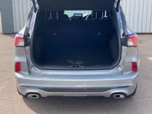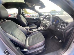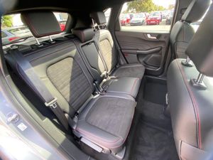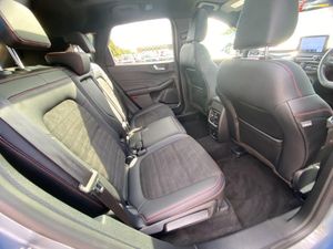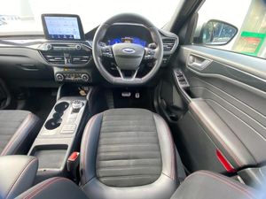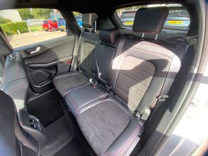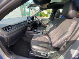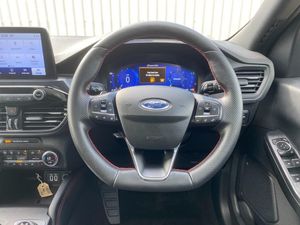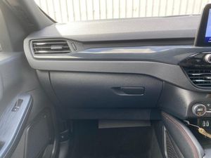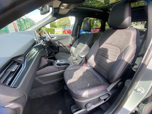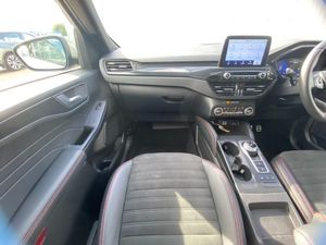 12.3" digital colour instrument cluster, Ford easy fuel, Ford SYNC 3 with 8" TFT LCD touchscreen, App Link, andriod auto/apple carPlay, emergency assistance and navigation with Ford pass connect, Front and rear parking sensors, Hands free power tailgate, Lane keeping aid with lane departure warning, Power assist steering, Rear view camera, Selectable drive modes, Service interval indicator, Sports suspension, Twist beam rear suspension, B&O premium audio system with 10 speakers and subwoofer, 2 USB ports, DAB radio/CD, Auto headlamps with high and low beam, Black roof rails, Day/night rear view mirror, Front LED fog lamps, Large rear spoiler, LED daytime running lights, LED rear lights, Power folding heated door mirrors with puddle lights, Power front/rear windows with global close, Power opening panoramic roof, Privacy glass, Quickclear heated windscreen, ST Line body styling kit with unique front and rear fascia and bumper, rear painted diffuser, front painted skid plates, dark mesh upper grille, ST Line front scuff plates, Third brake light, Twin exhausts, 10 way power adjustable drivers seat, 2nd row sliding seats with 60:40 split, 8 way manual passenger seat including lumbar support and height adjust, Alloy pedals, Centre console with electronic parking brake, Dark headlining and pillars, Dual electronic automatic temperature control, Flat bottomed leather steering wheel in sensico with red stitching, Front and rear head restraints, Heated passenger and driver seats, Heated rear seats, Heated steering wheel, Partial premium touch sensico leather upholstery with black cloth inserts and red stitching, Rear charging point, Sports seats, ST Line front and rear floor mats, Steering wheel mounted paddle shift, 3x3 point rear seatbelts, Airbags - front driver/passenger, front and rear curtain, Drivers knee airbag, Electronic stability control (ESC) and ABS, Ford MyKey Gen 2 safety system, Manual child proof rear door locks, Post collision braking, Pre collision assist with autonomous emergency braking, Rear seat Occupancy alert, Red brake calipers, Tyre pressure monitoring system, Engine immobiliser, Keyless entry and Ford power start button, Locking wheel nuts, Remote powered central double locking doors, Thatcham category 1 alarm
